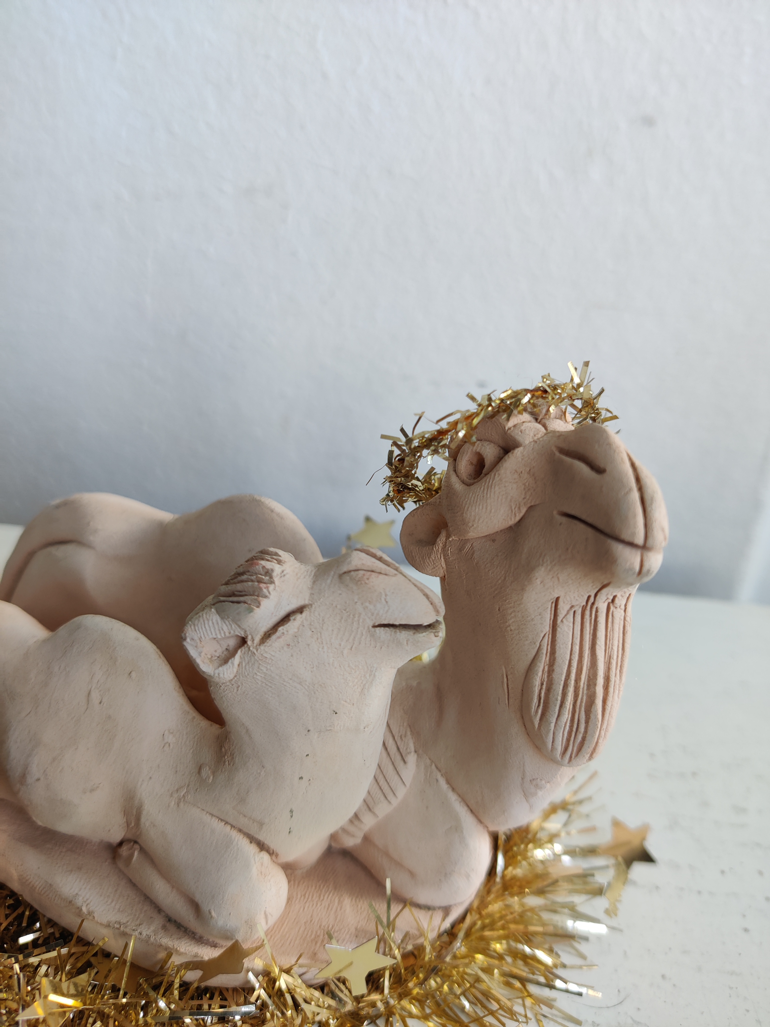 De gladeste kameler til dit hjemmelavede krybbespil. Hvem kan ikke bruge et par smilende typer som dem? Mål 12 x 9 cm. (glimmer medfølger ikke)