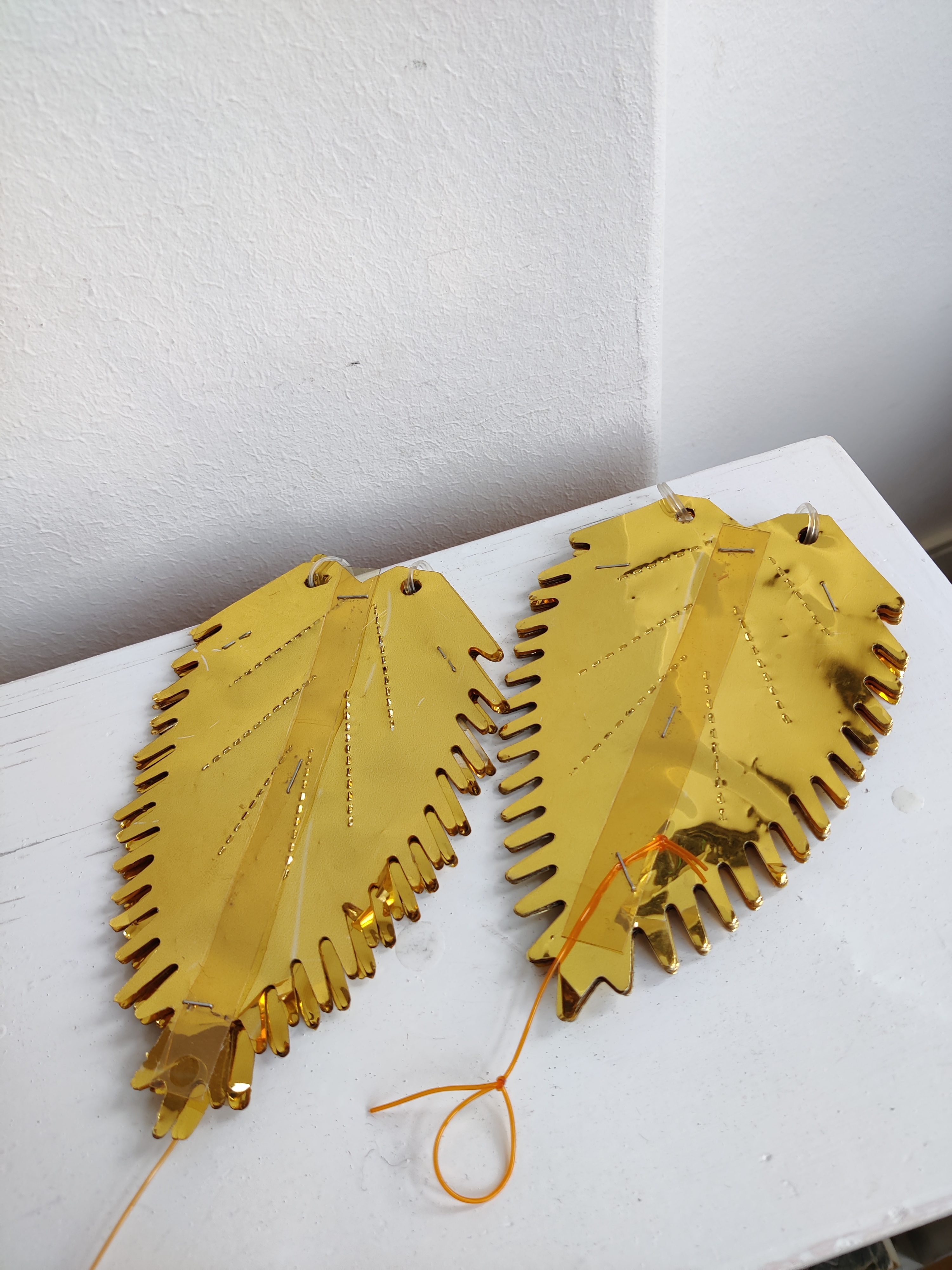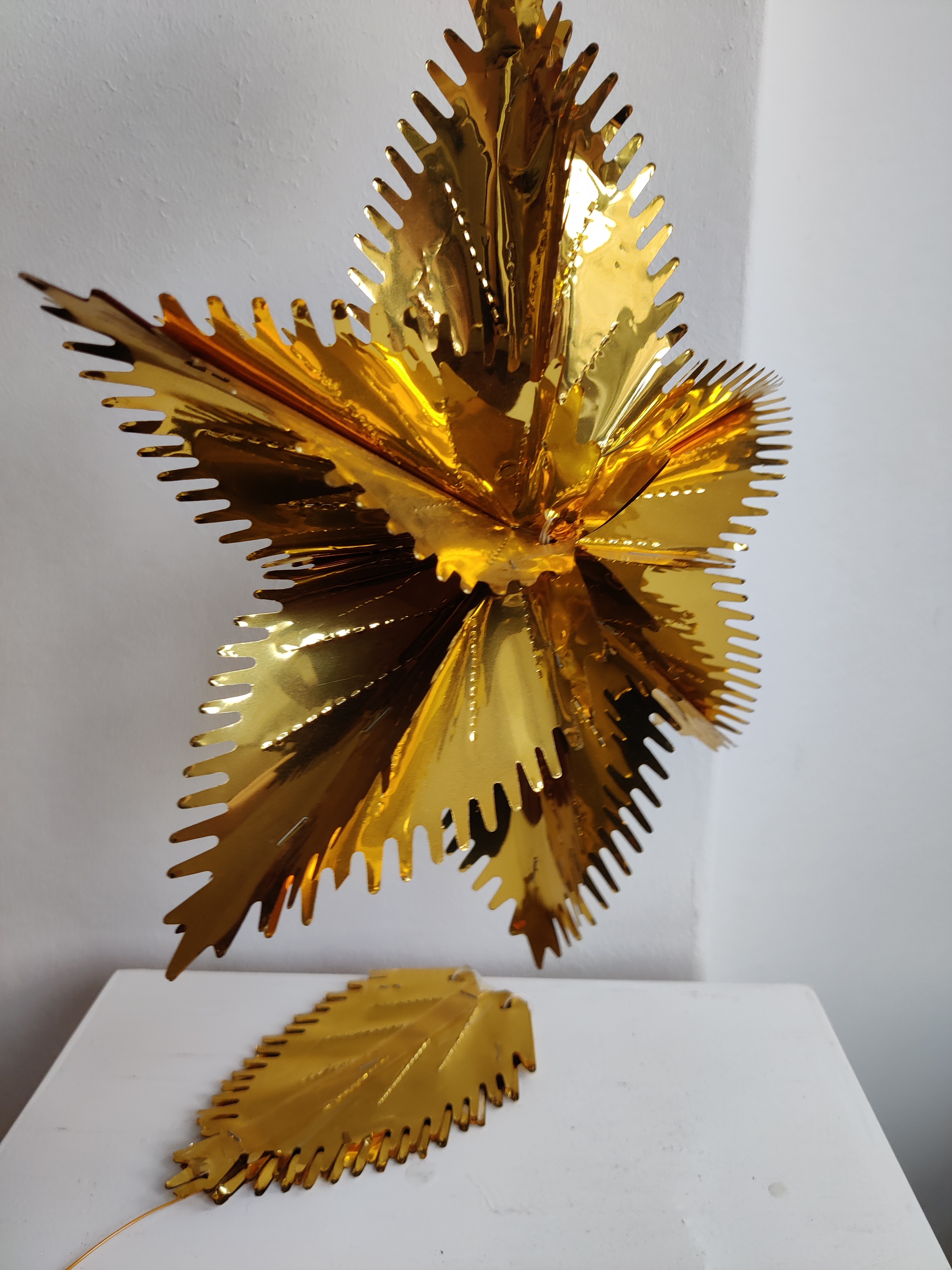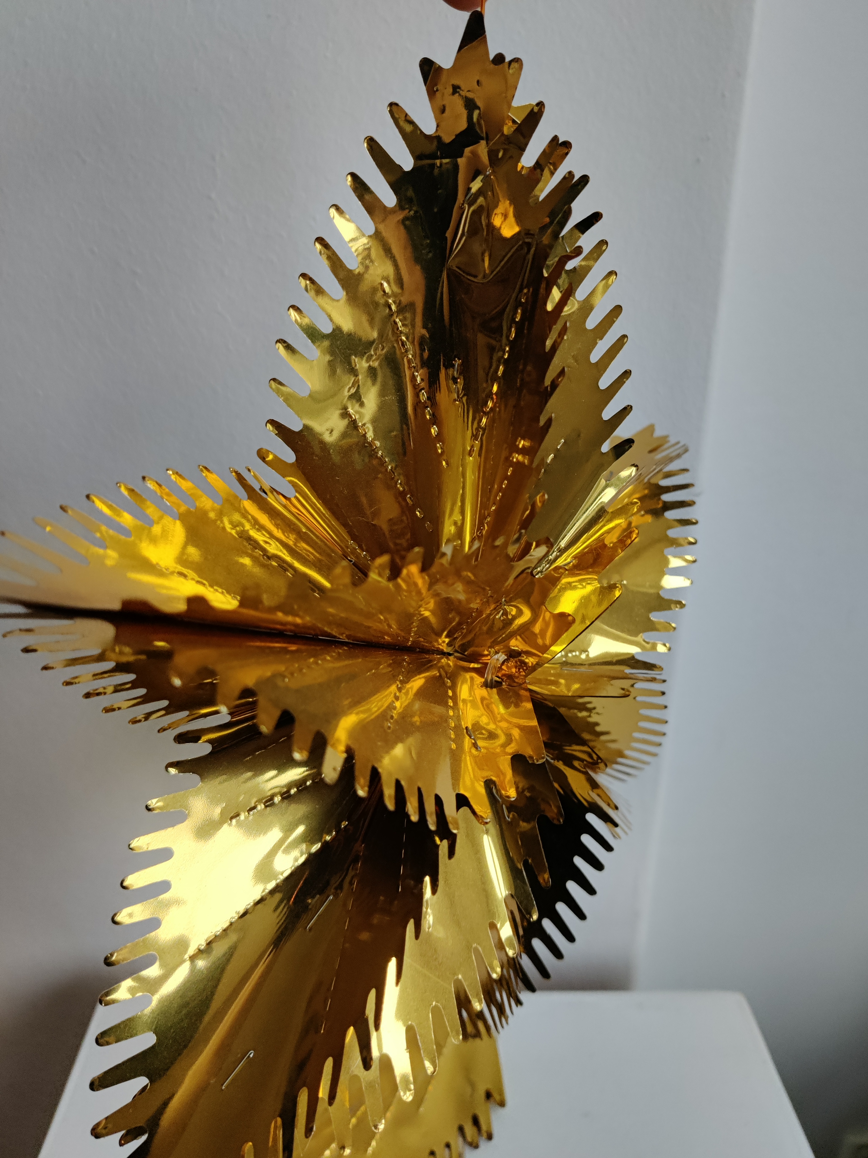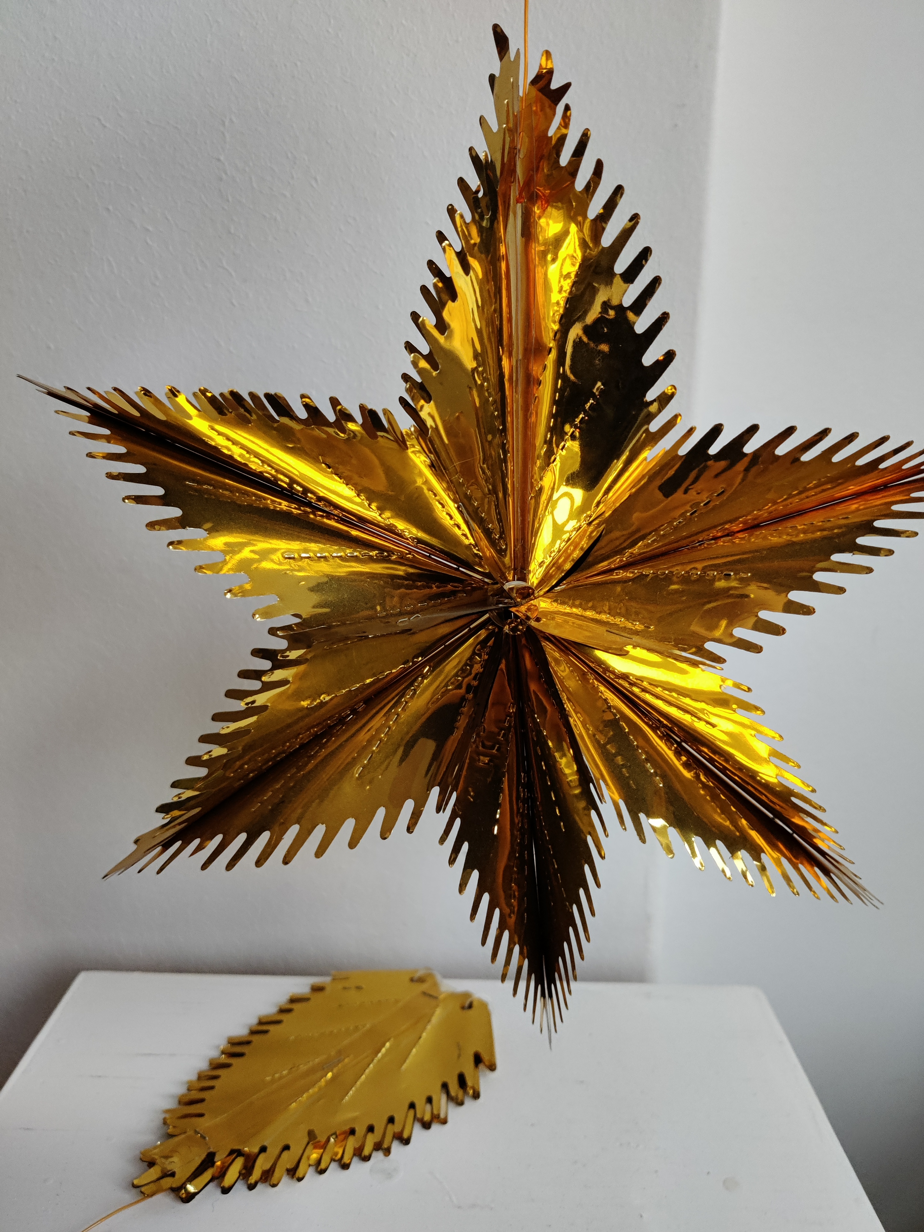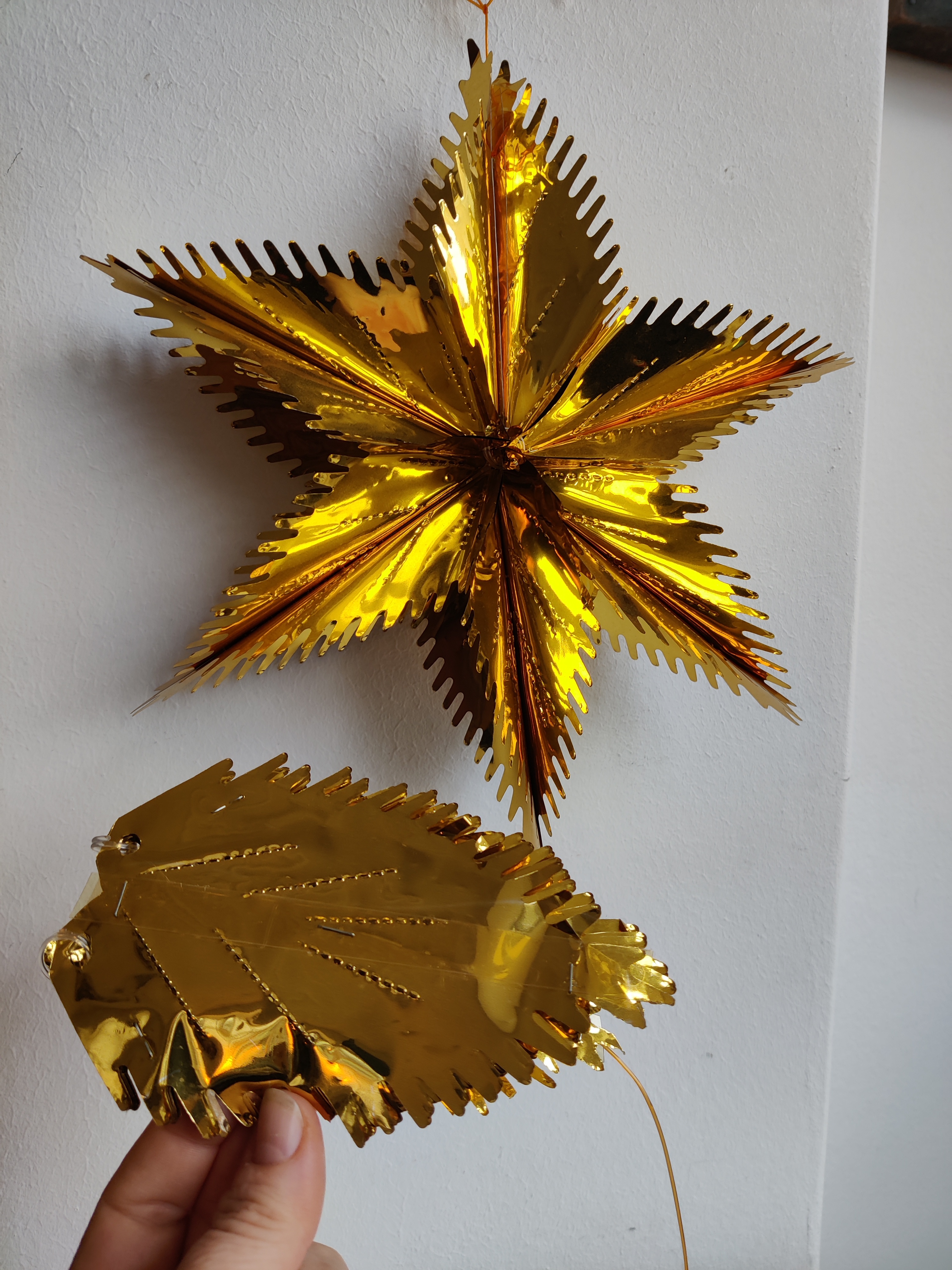 To velholdte guld folde-ud julestjerner til vinduet. Fra 1960'erne eller 1970'erne. De måler 30 cm, når de er foldet ud. Samlet pris.