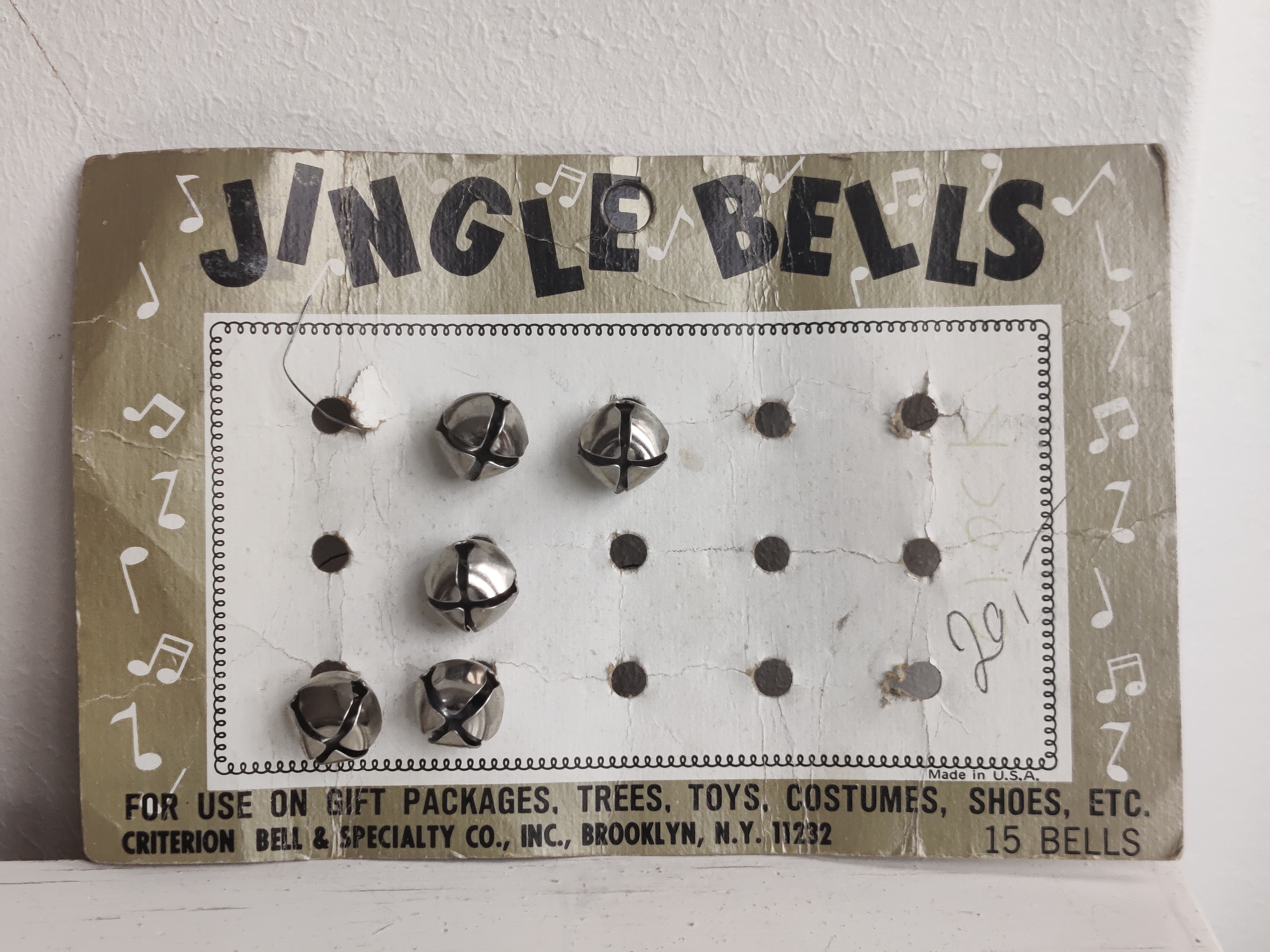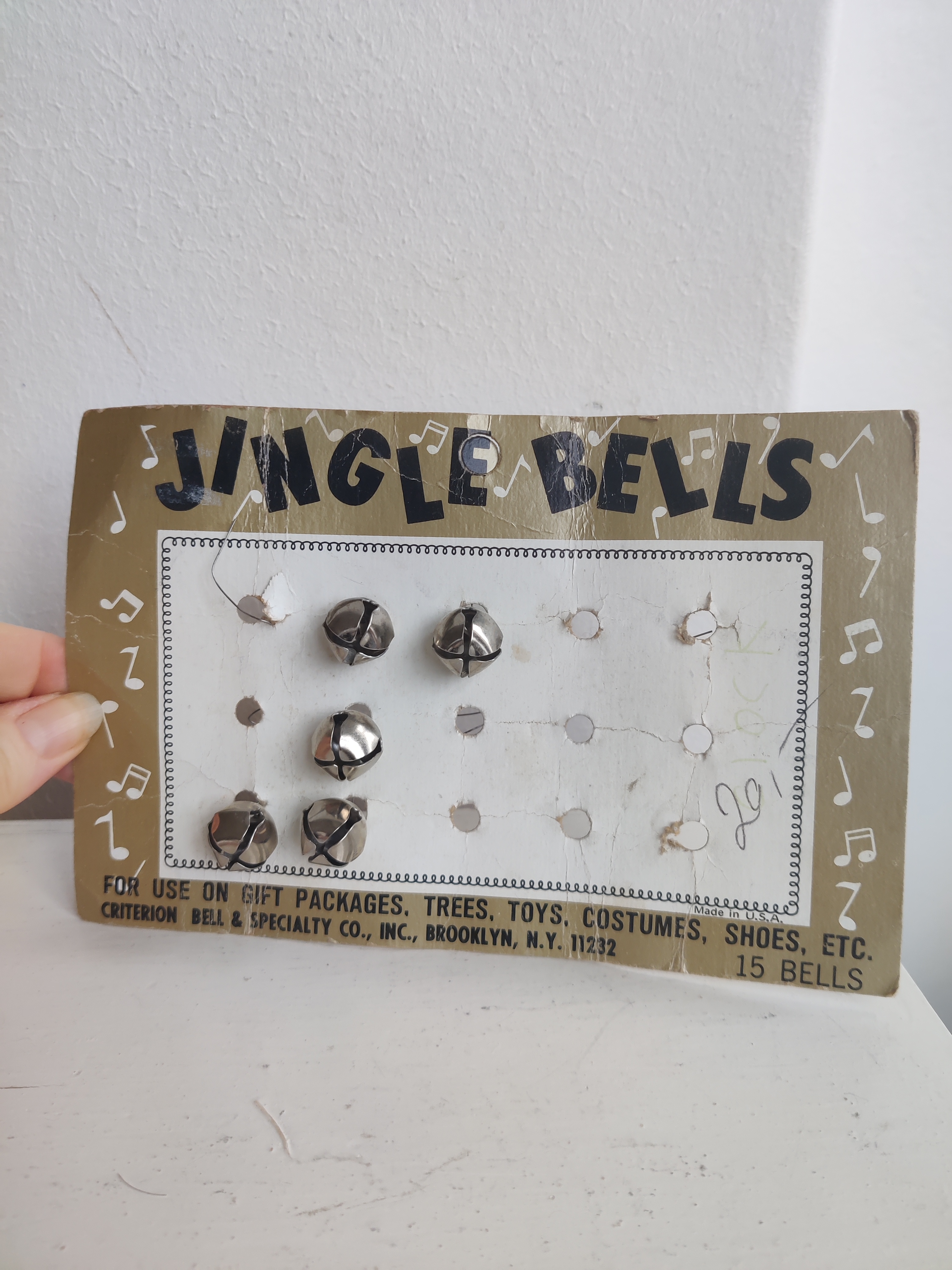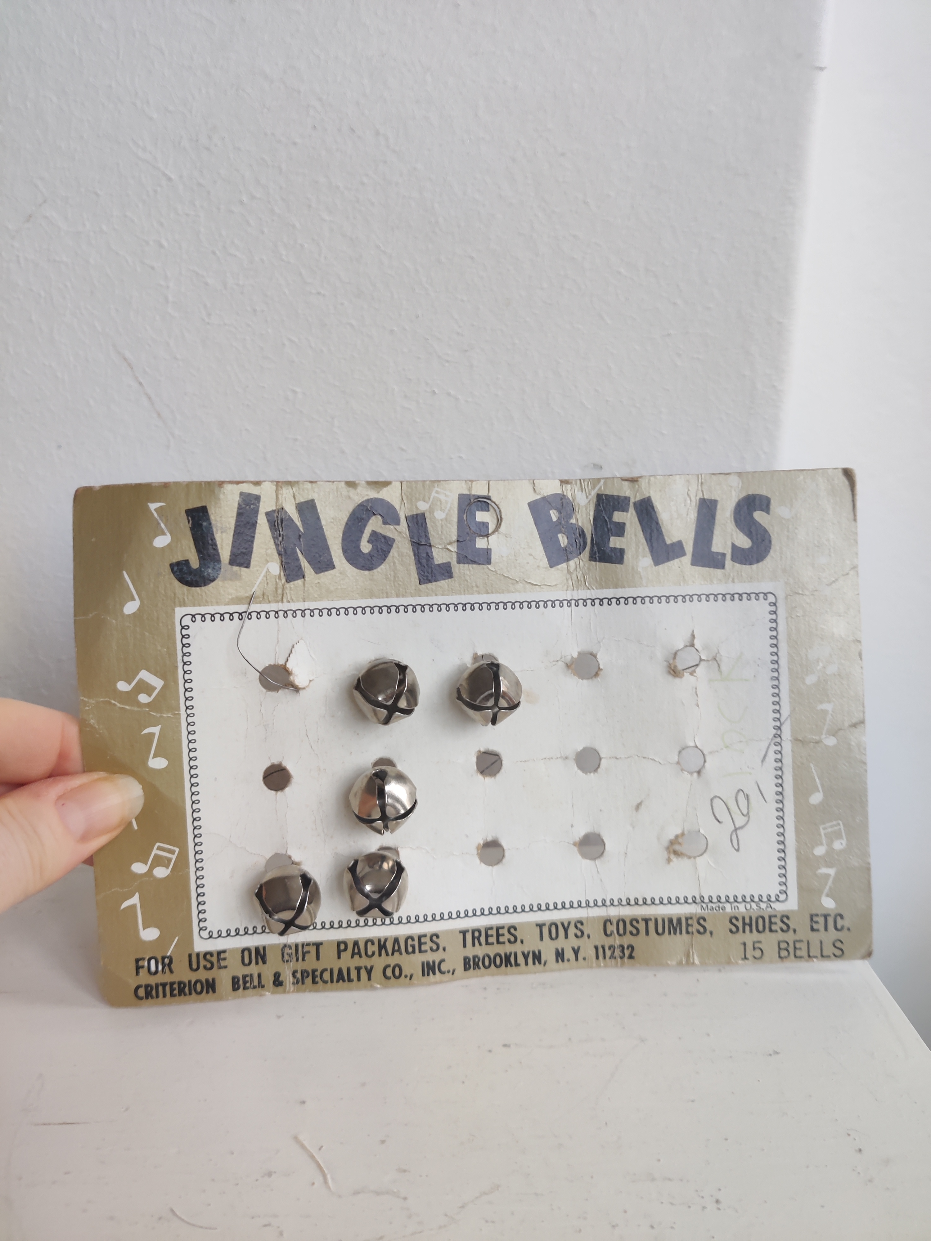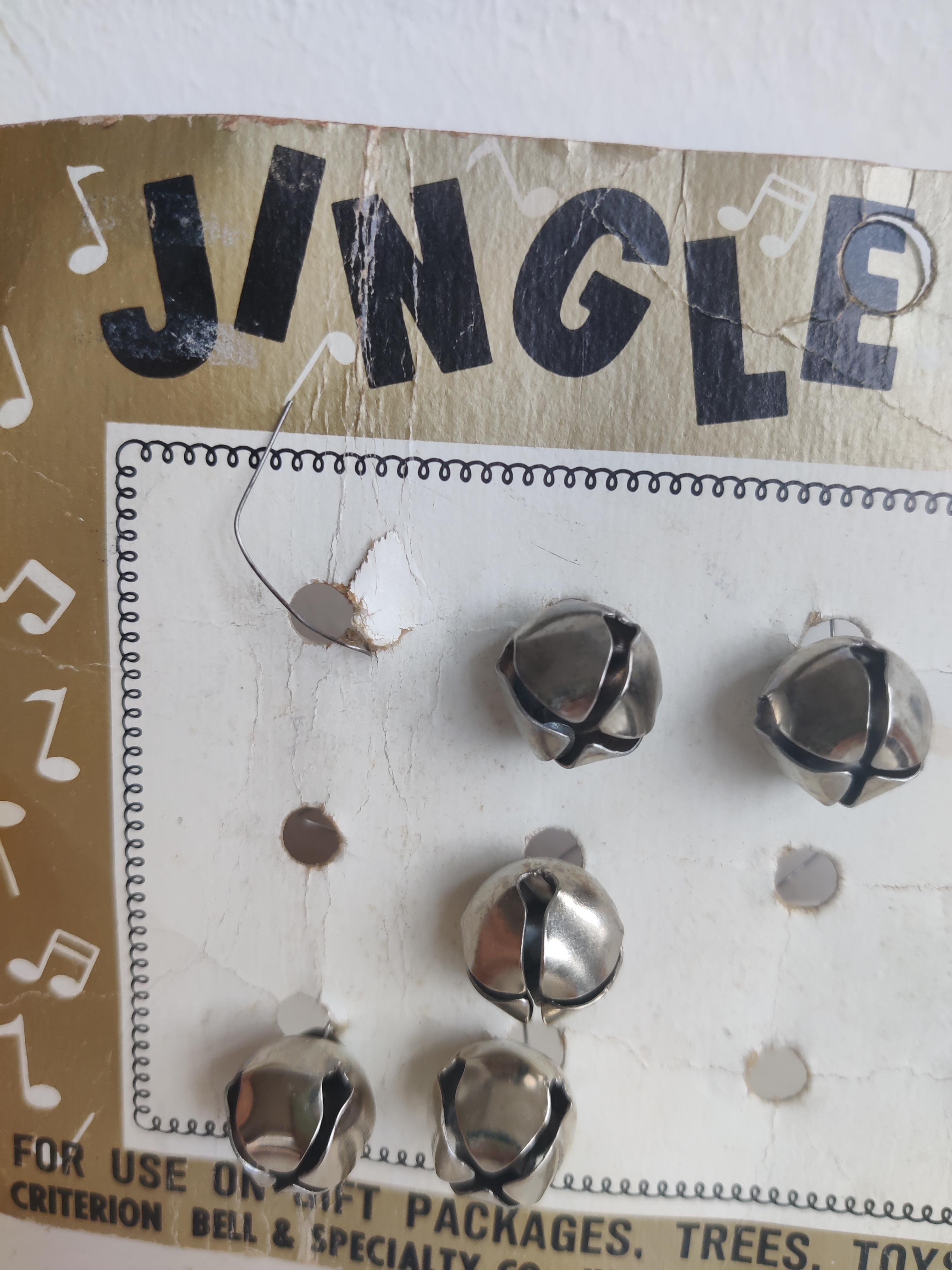 Sjovt gammelt display fra en butik, nok en stofbutik eller lignende, hvor man kunne købe bjælder enkeltvis. De siger den helt rigtige bjældeklang-lyd! Mål 19 x 12. Hvis ikke du skal bruge bjælderne, er displayet i sig selv det fineste julepynt - synes jeg.