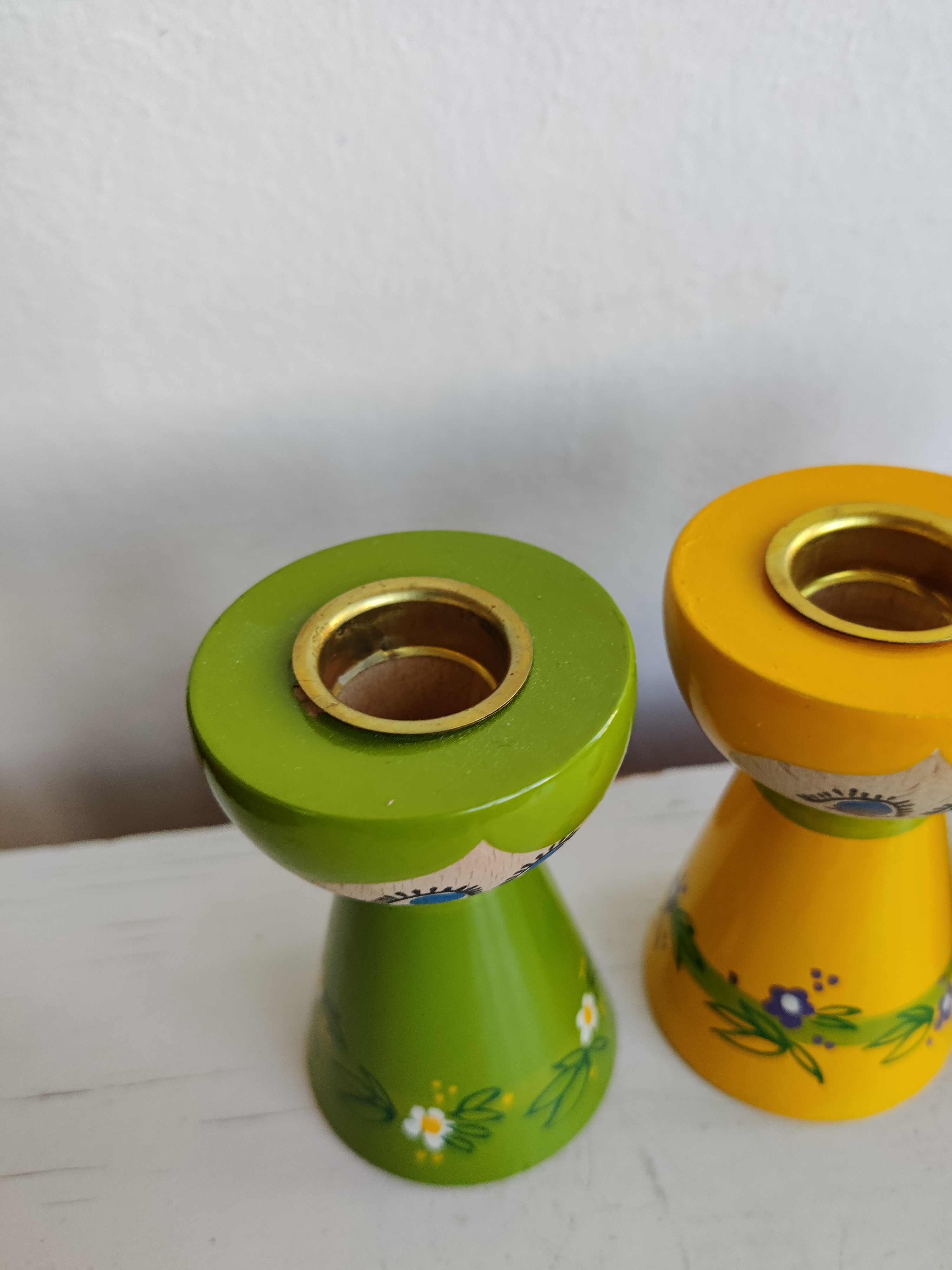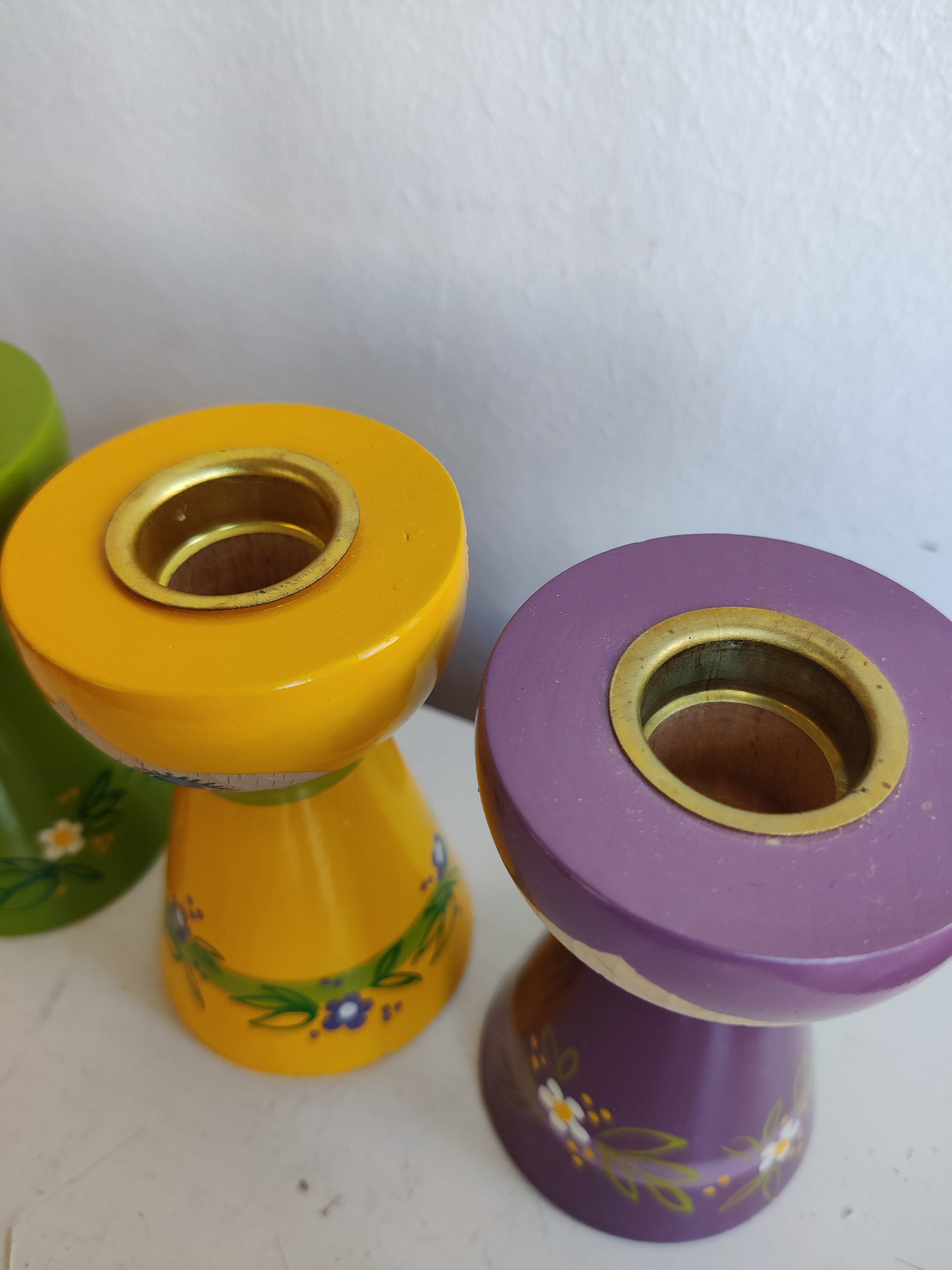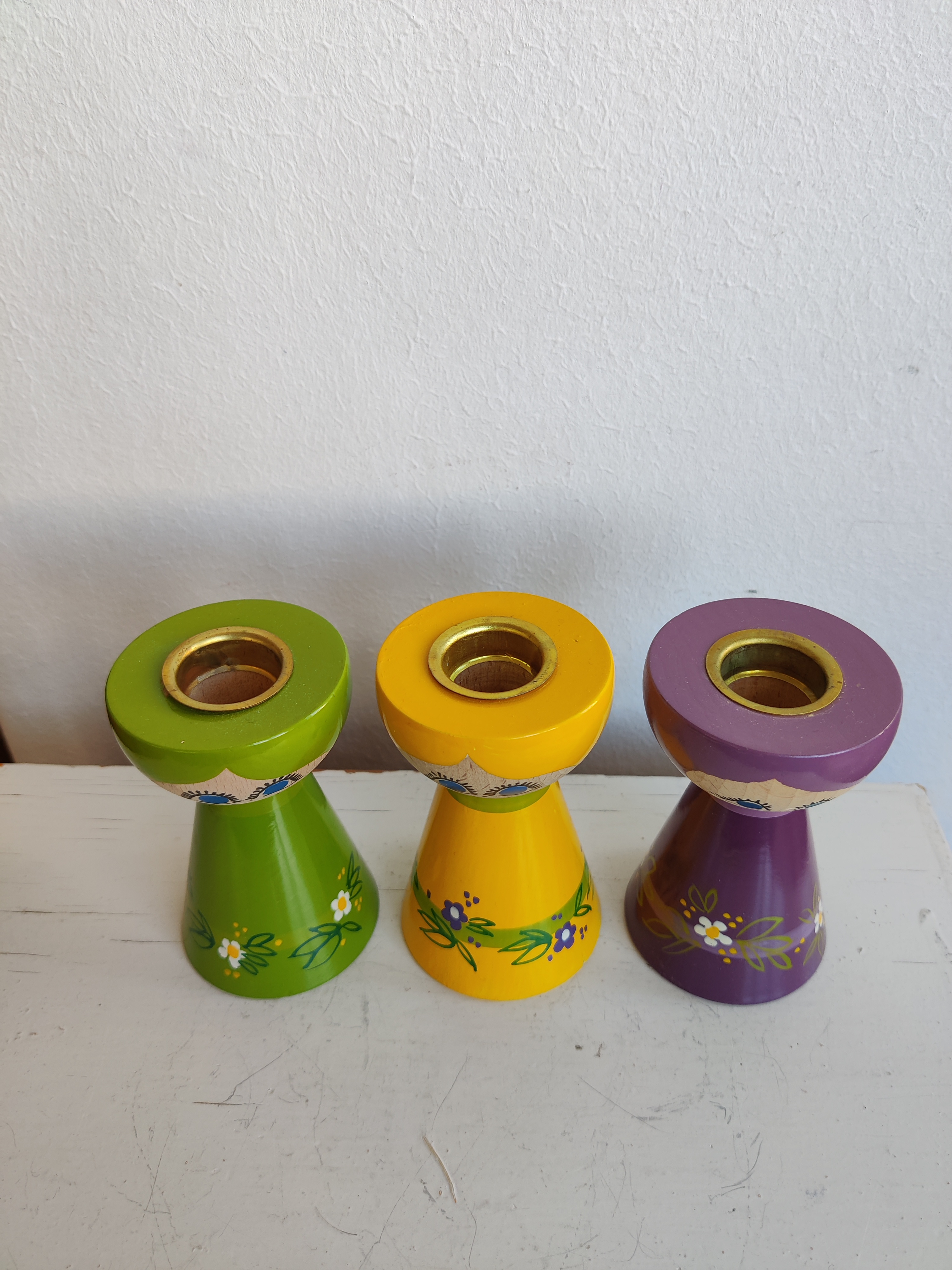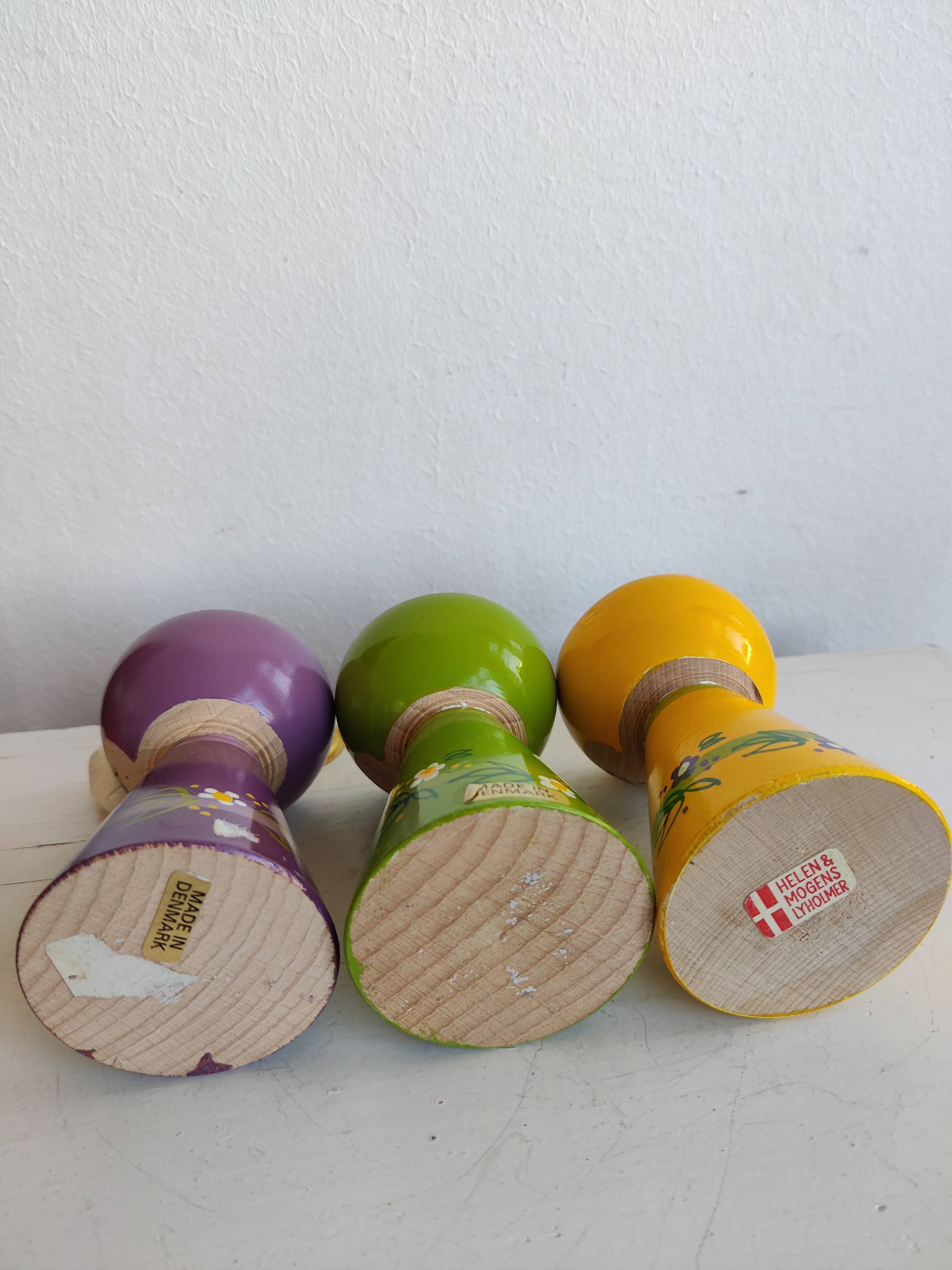 Lyholmer stager i virkelig flot vintage stand. Her er tre søde tanter i gul, grøn og lilla, og de måler 9 cm hver. Sælges samlet.