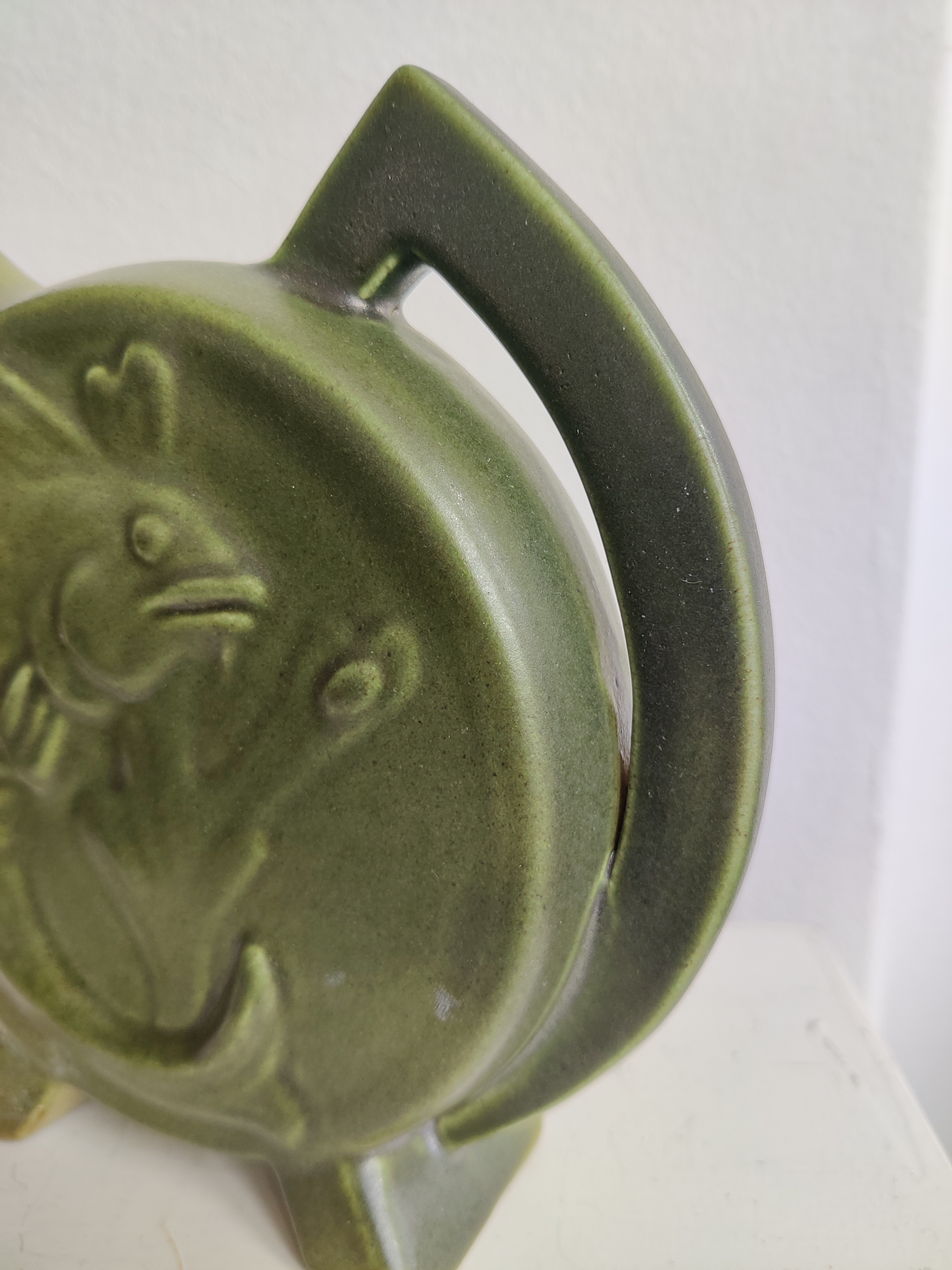 Fabelagtig rund kande fra Höganas i 1920-1930'erne, designet af den navnkundige svensker Åke Holm (1900-1980). Ingen nag eller skår. Mål ca 18 x 18 cm. Signeret Holm Höganas.