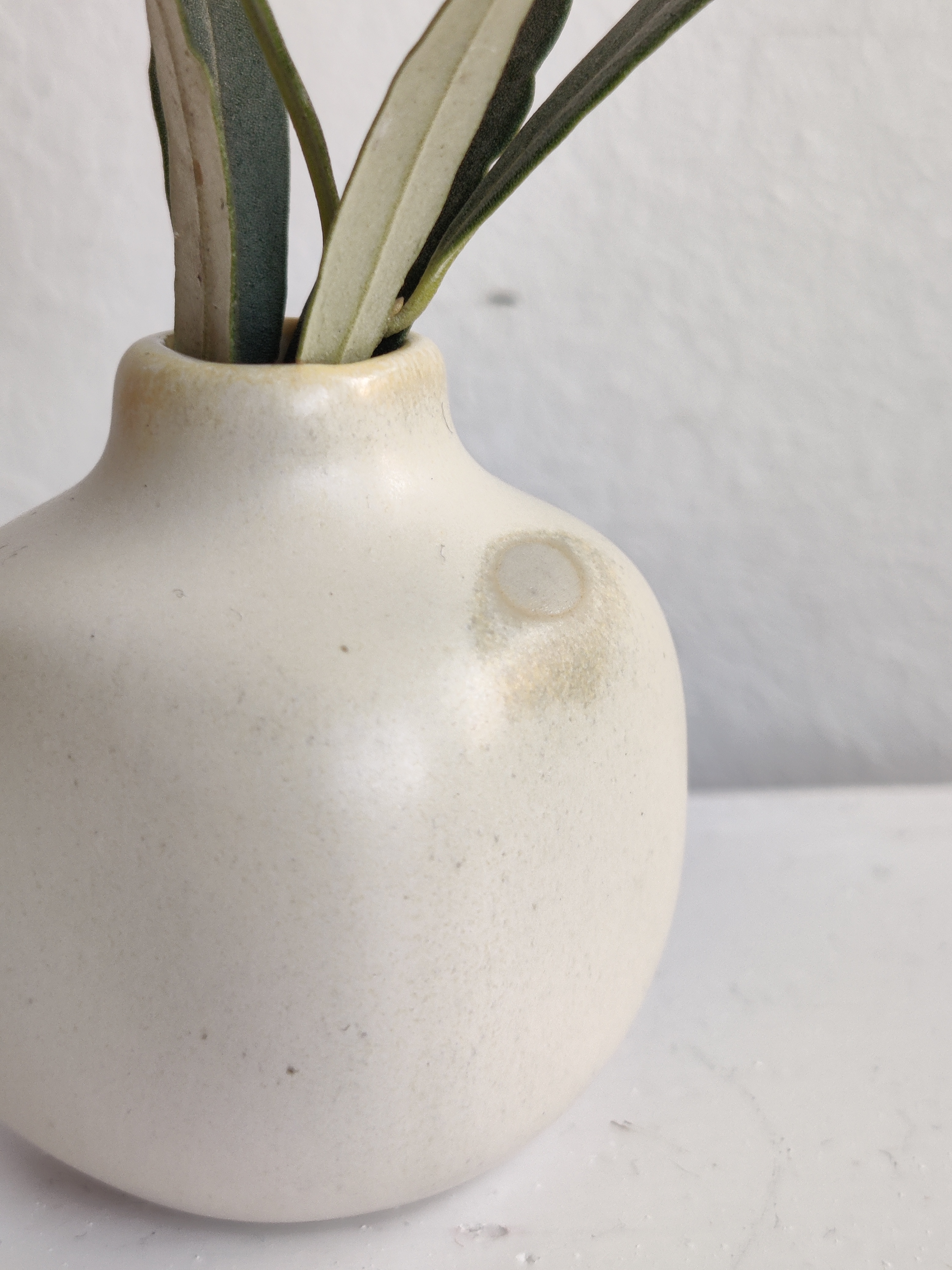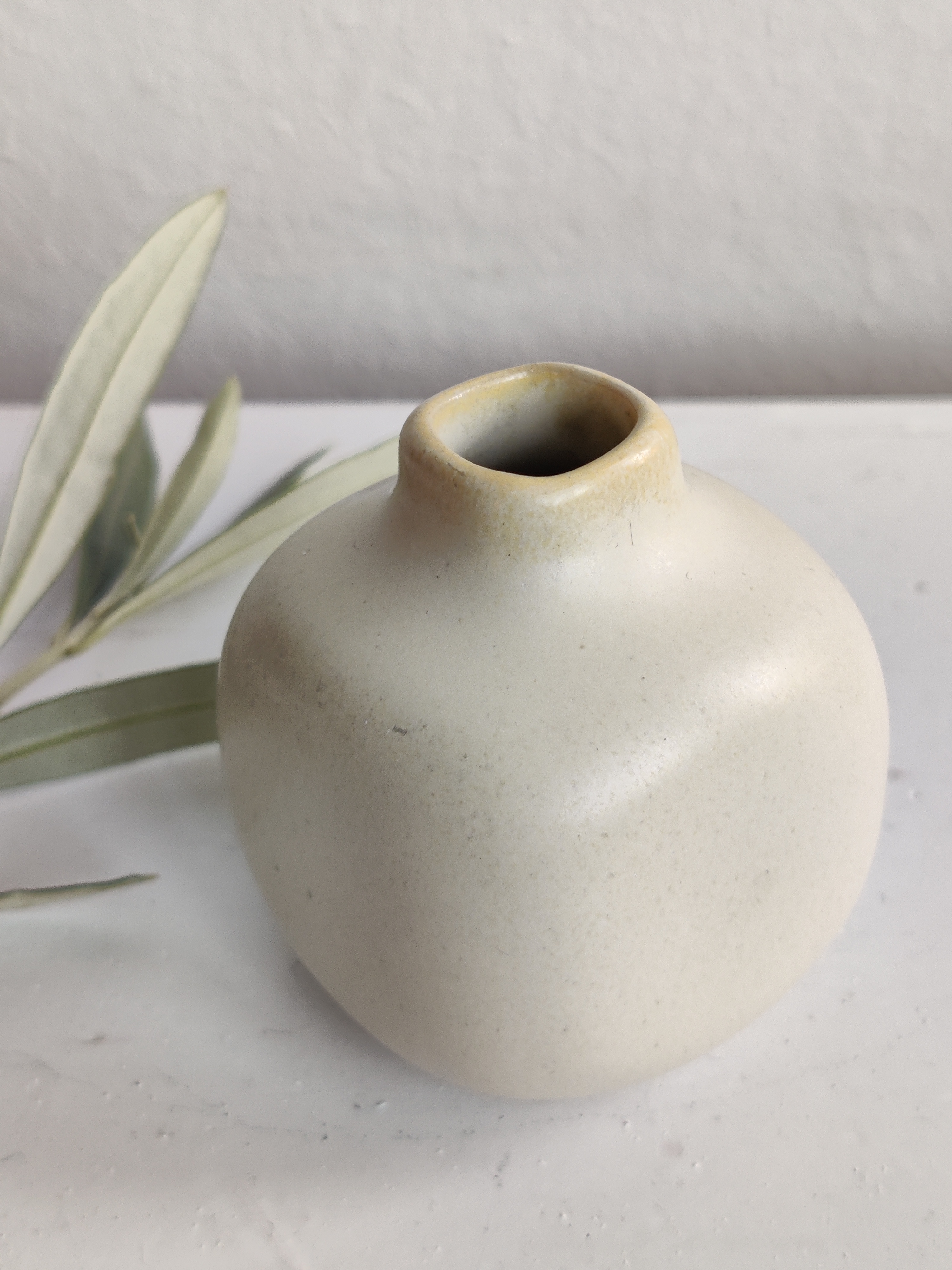 Miniaturevase fra Sverige, hvor de har tradition for keramik i miniudgaver. Denne er så lækker, men desværre uden afsender, deraf prisen. Minder om lignende fra Höganäs. Mål 5 x 4 cm.