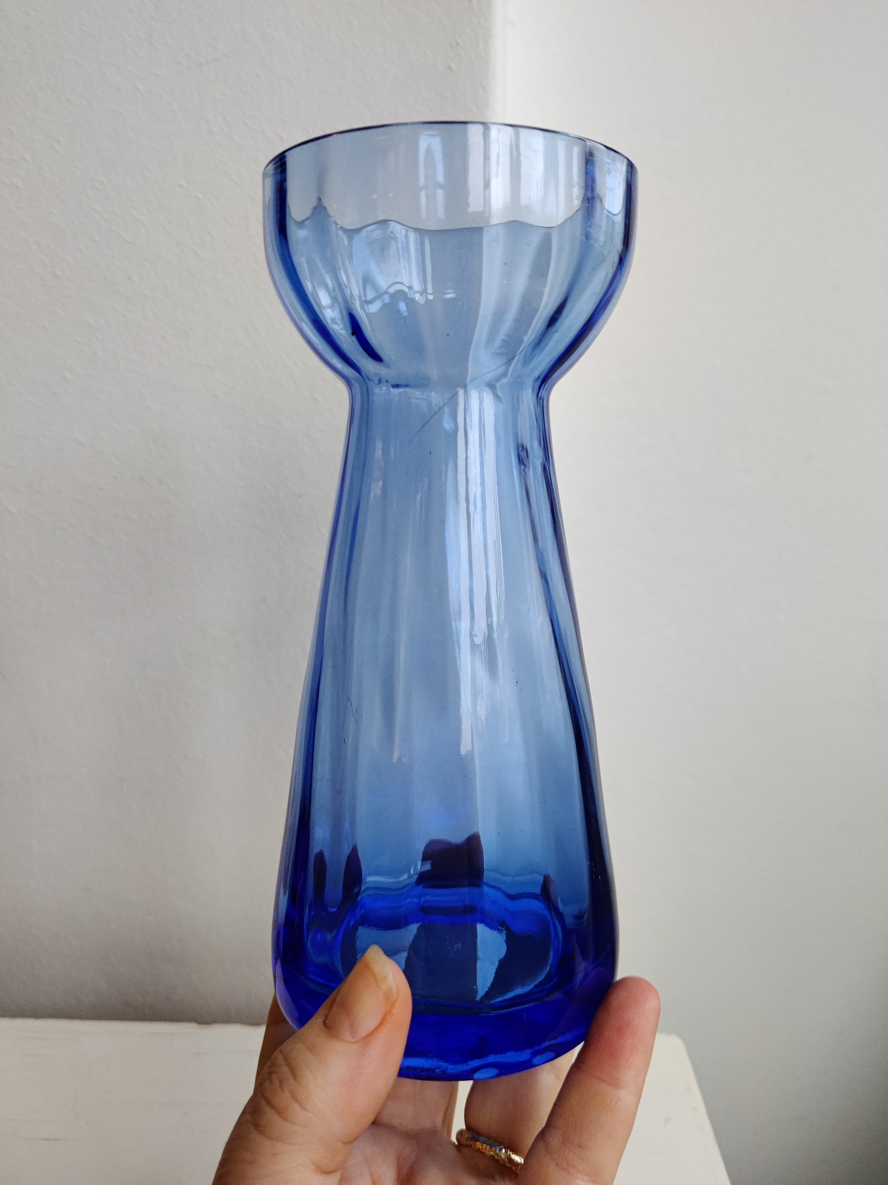 Smuk ældre hyacintvase med tung bund. Ingen hakker eller skår. Højde 18 cm, bredde 7,5 cm.