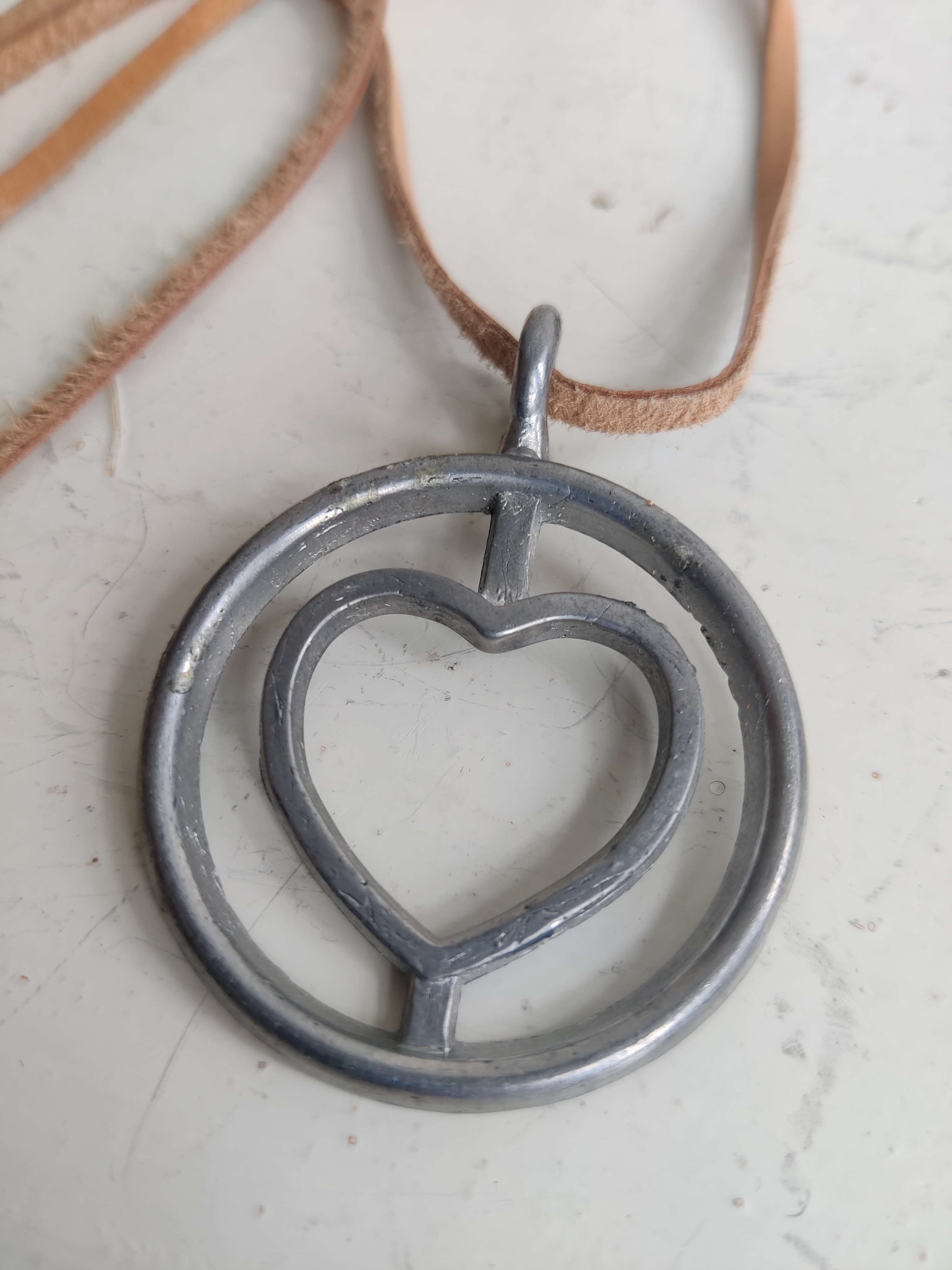 All you need is love i en snor om halsen. 4 x 4 cm.