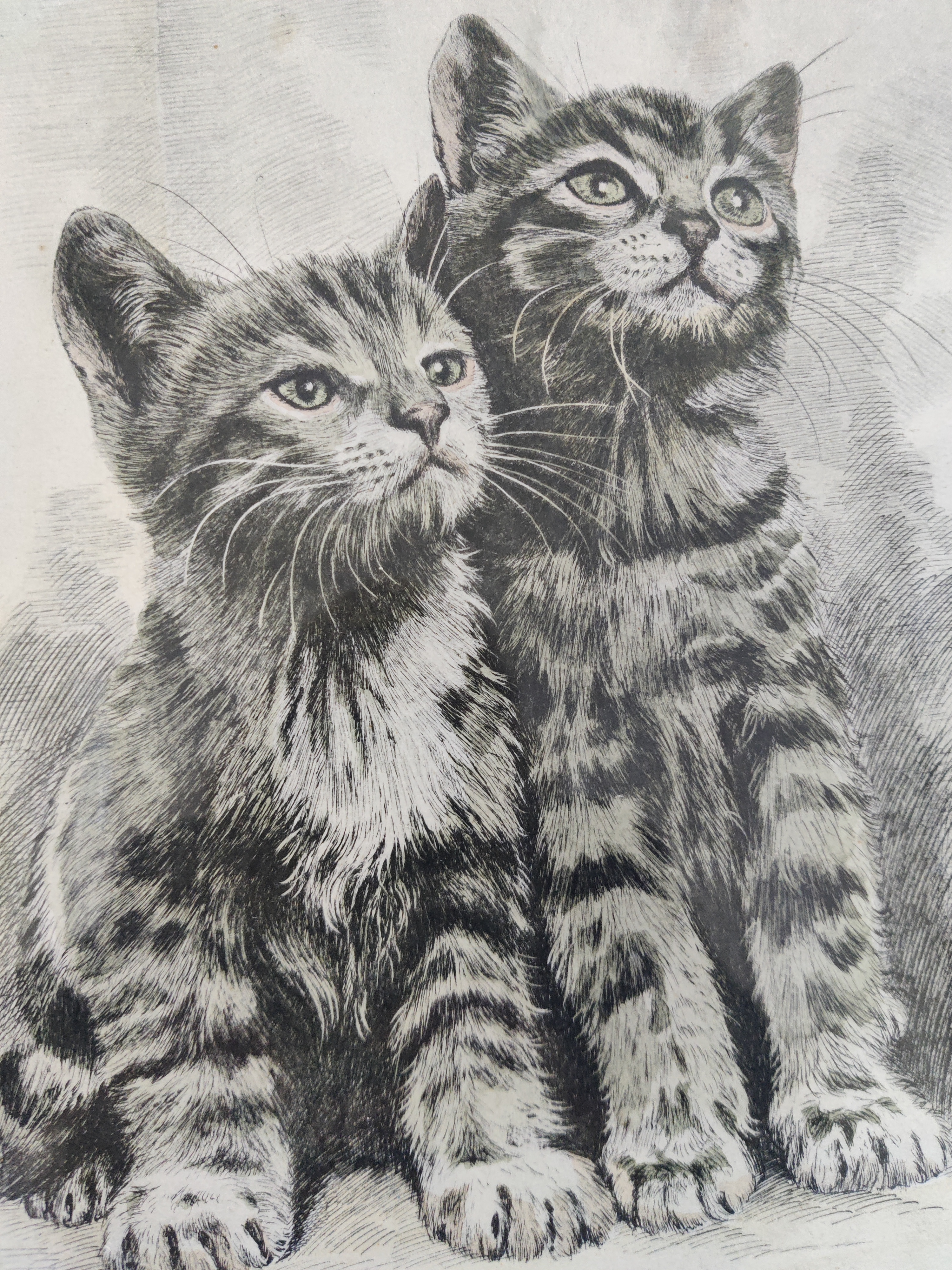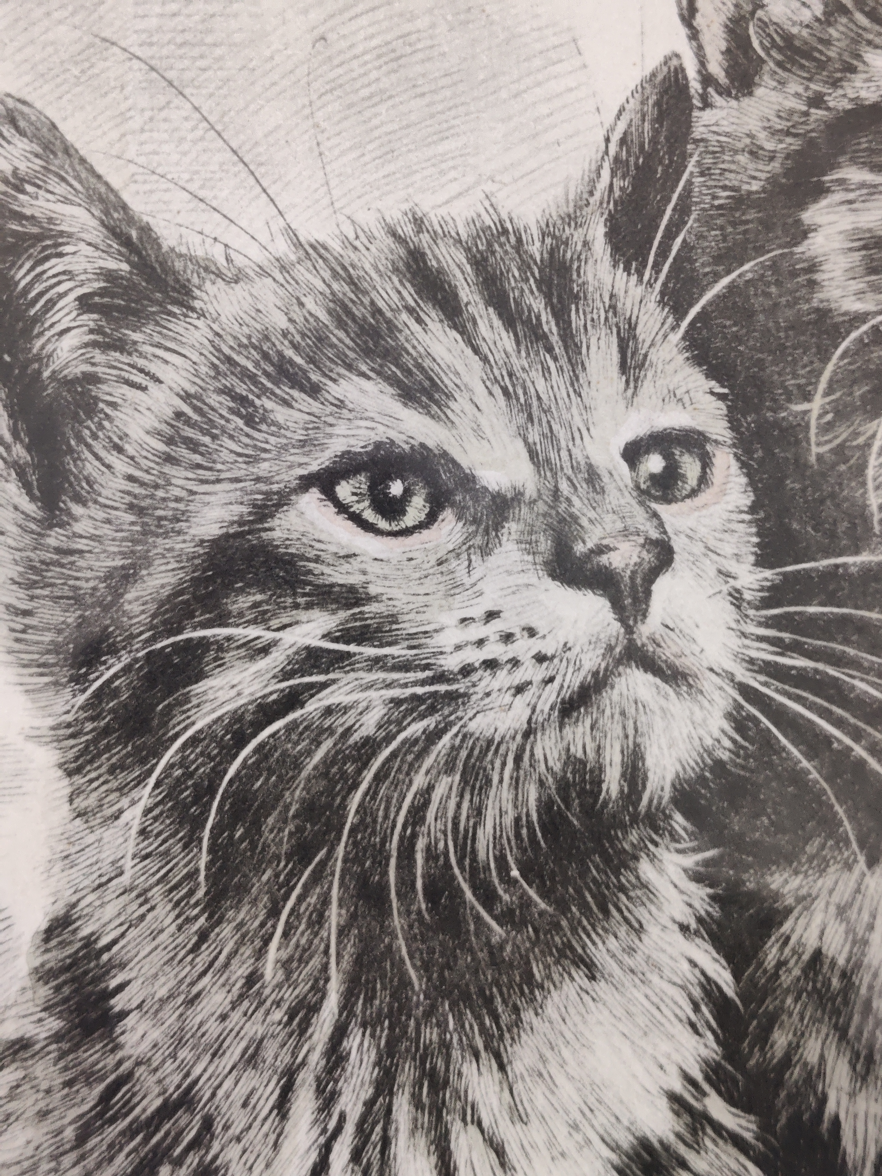 Der findes et hav af kattebilleder i denne verden, men dette er altså bare lige lidt ekstra godt. De har de bedste ansigtsudtryk: Den nuttede og den, der helt sikkert sætter kloen i dig. Godt stort format og smukt detaljeret print. Rammemål 35 x 32 cm.