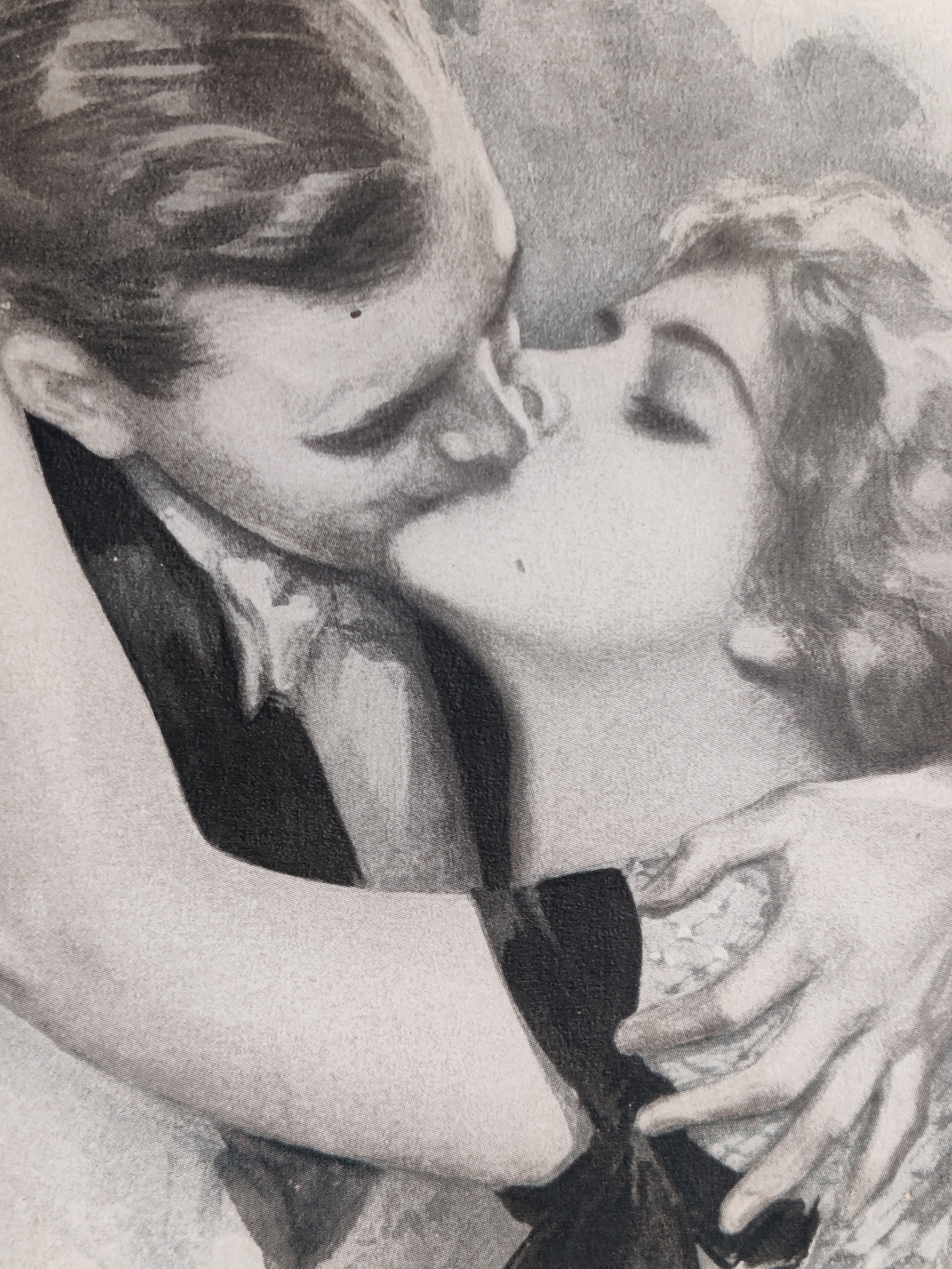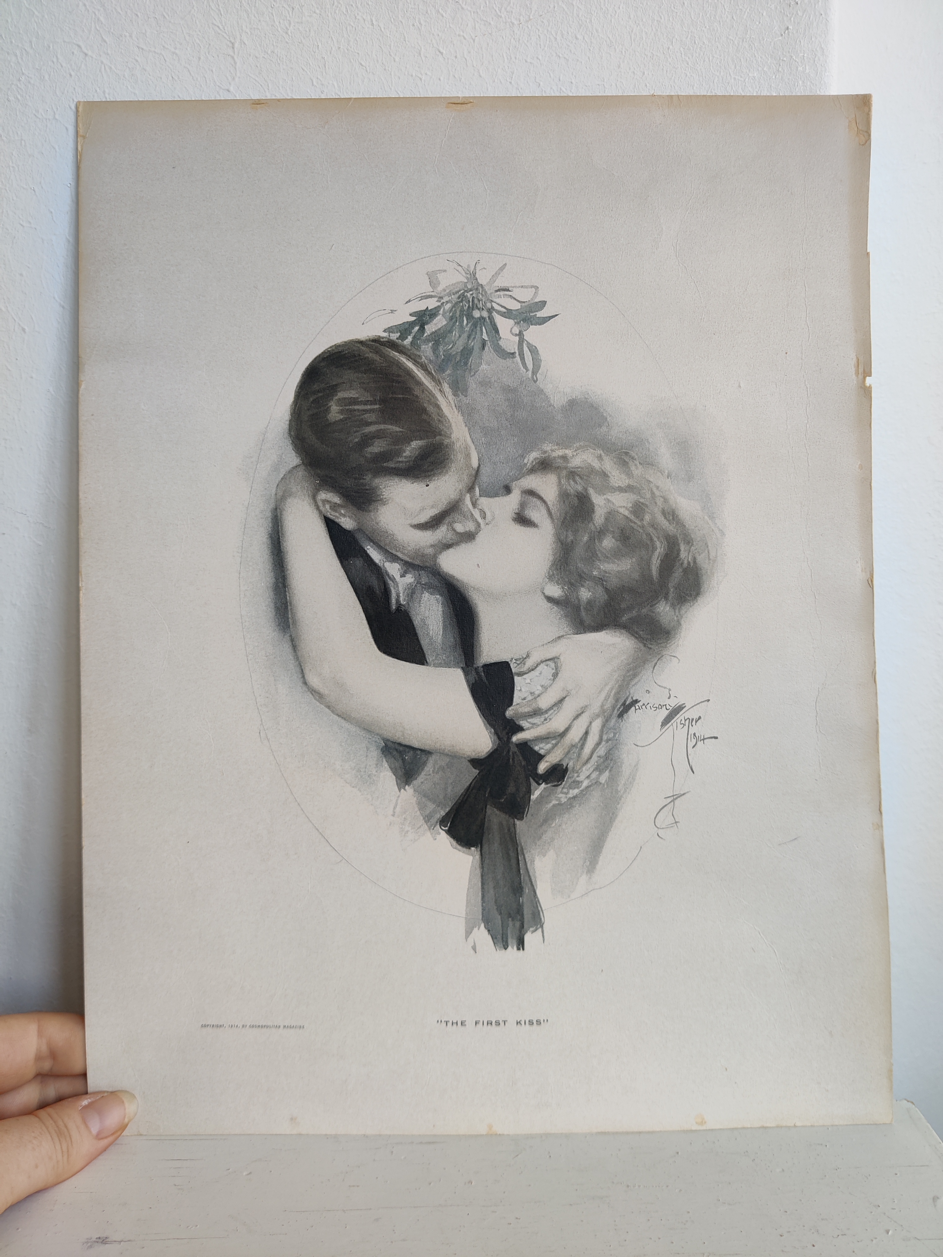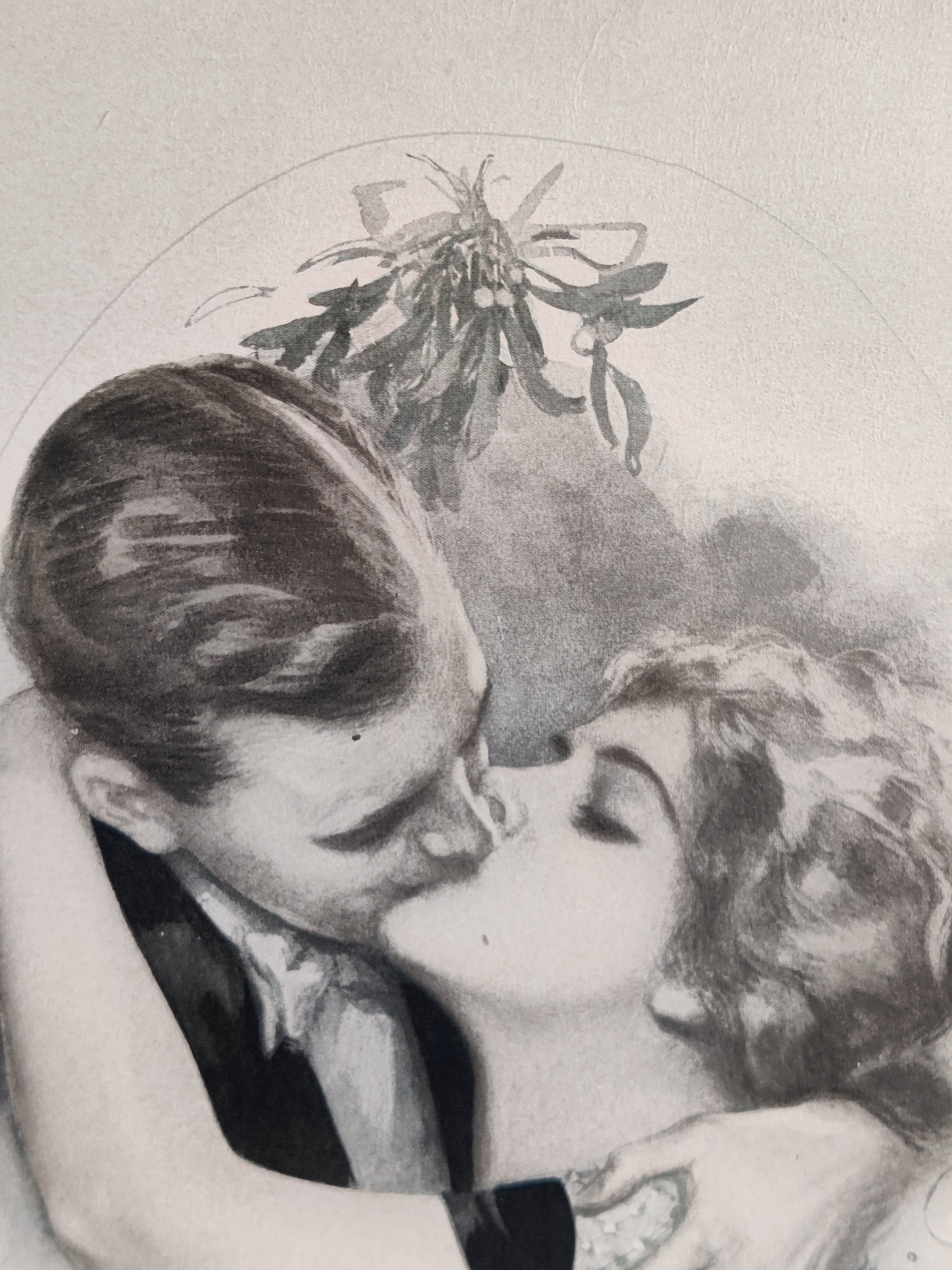The First Kiss, illustration fra Cosmopolitan 1914. Under misteltenen, ovenikøbet.