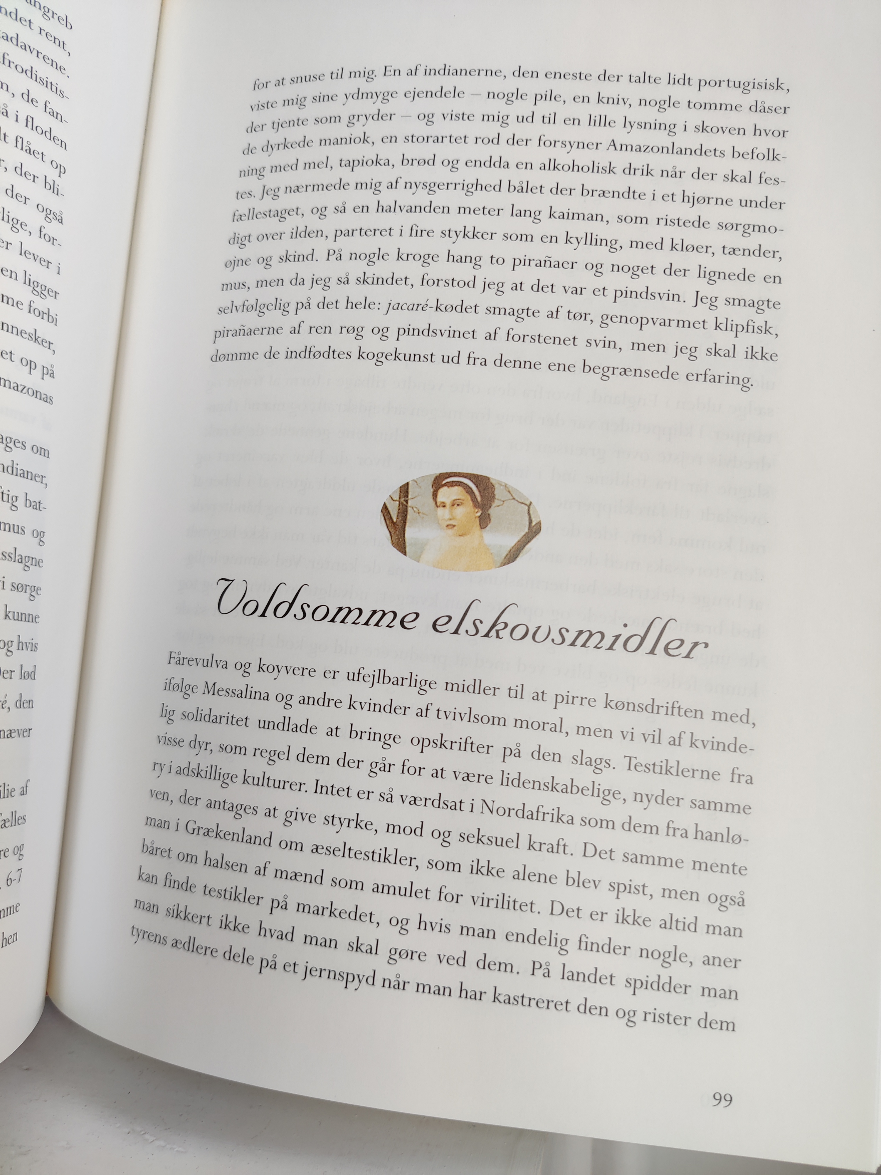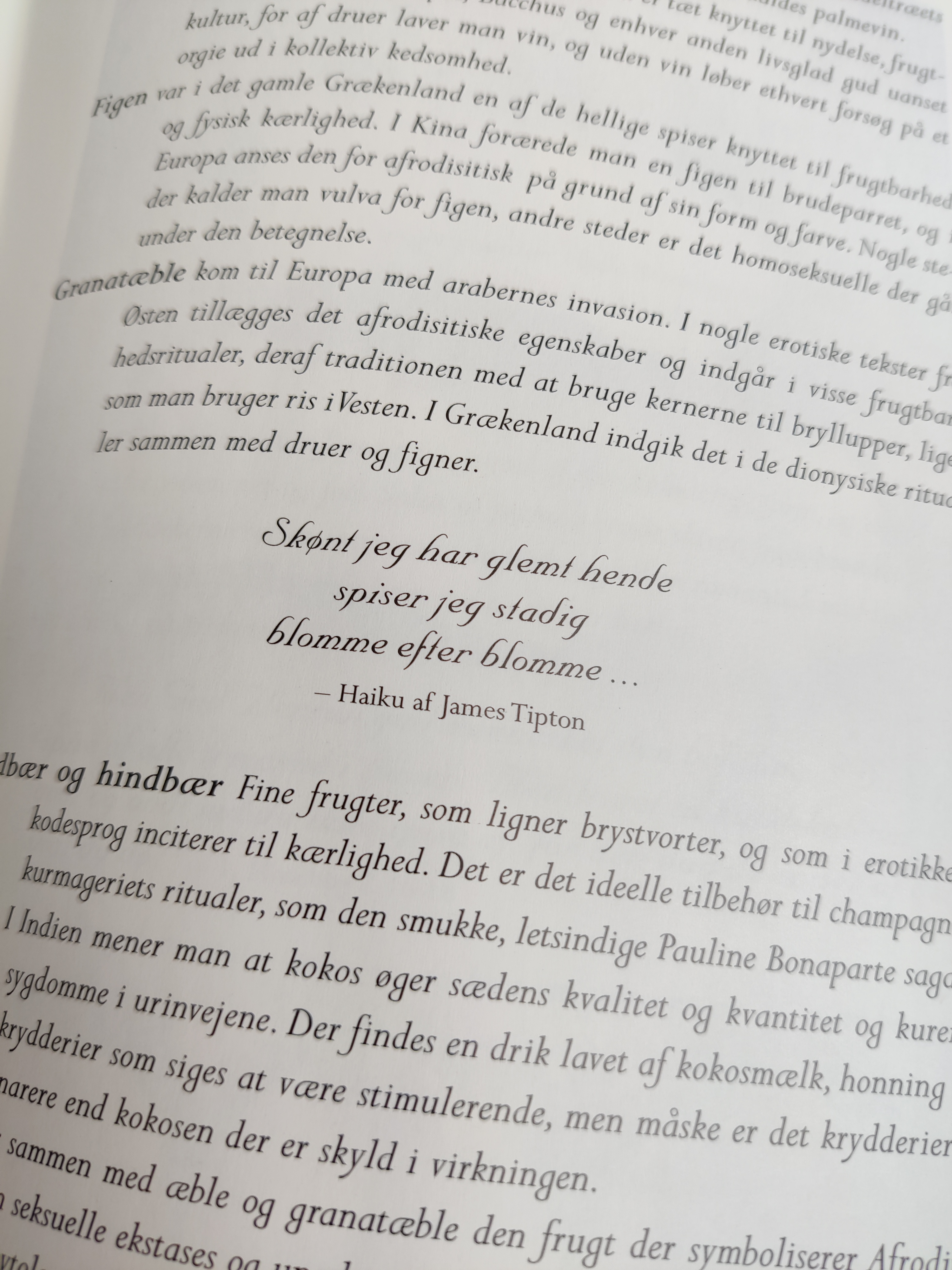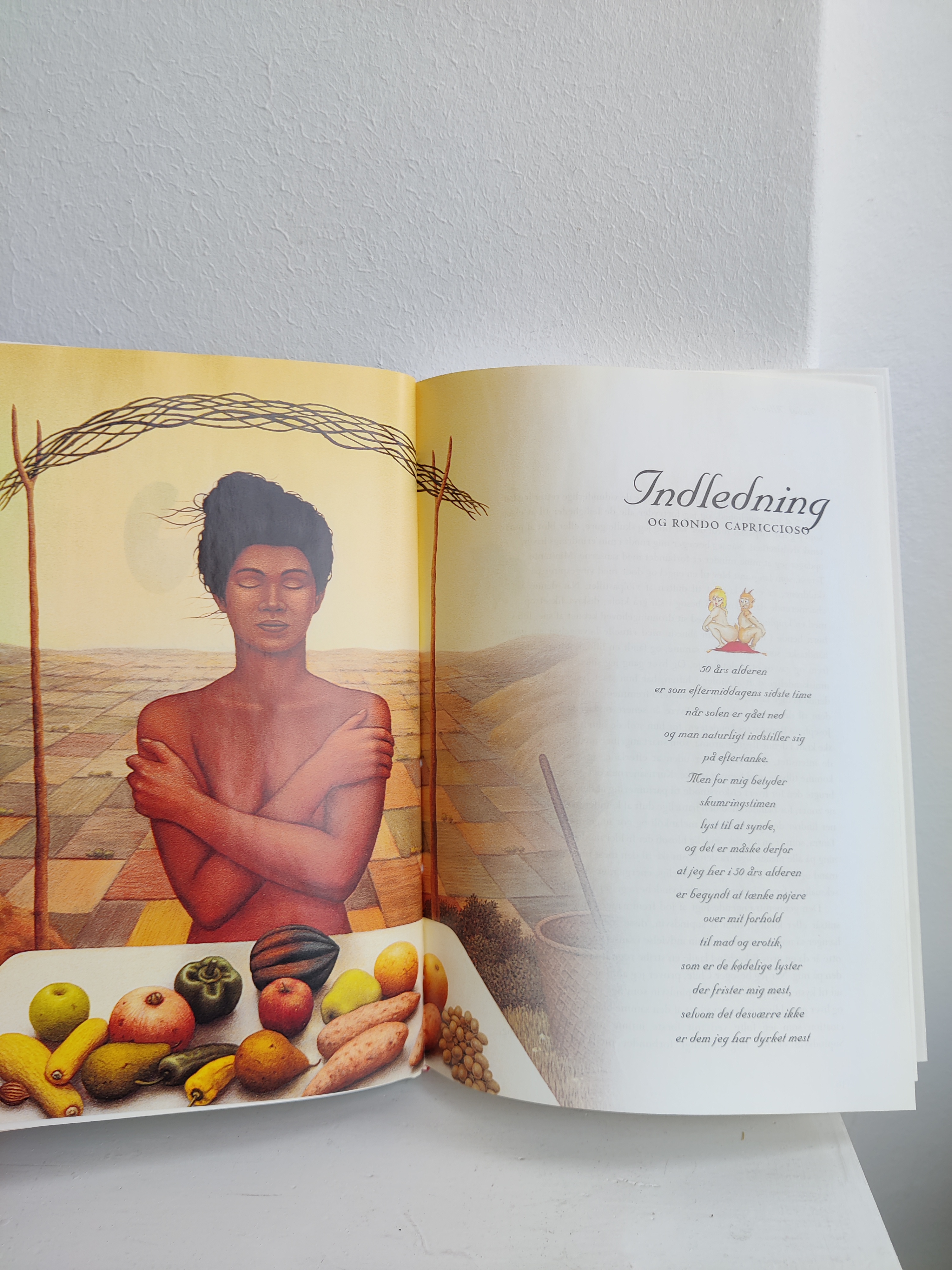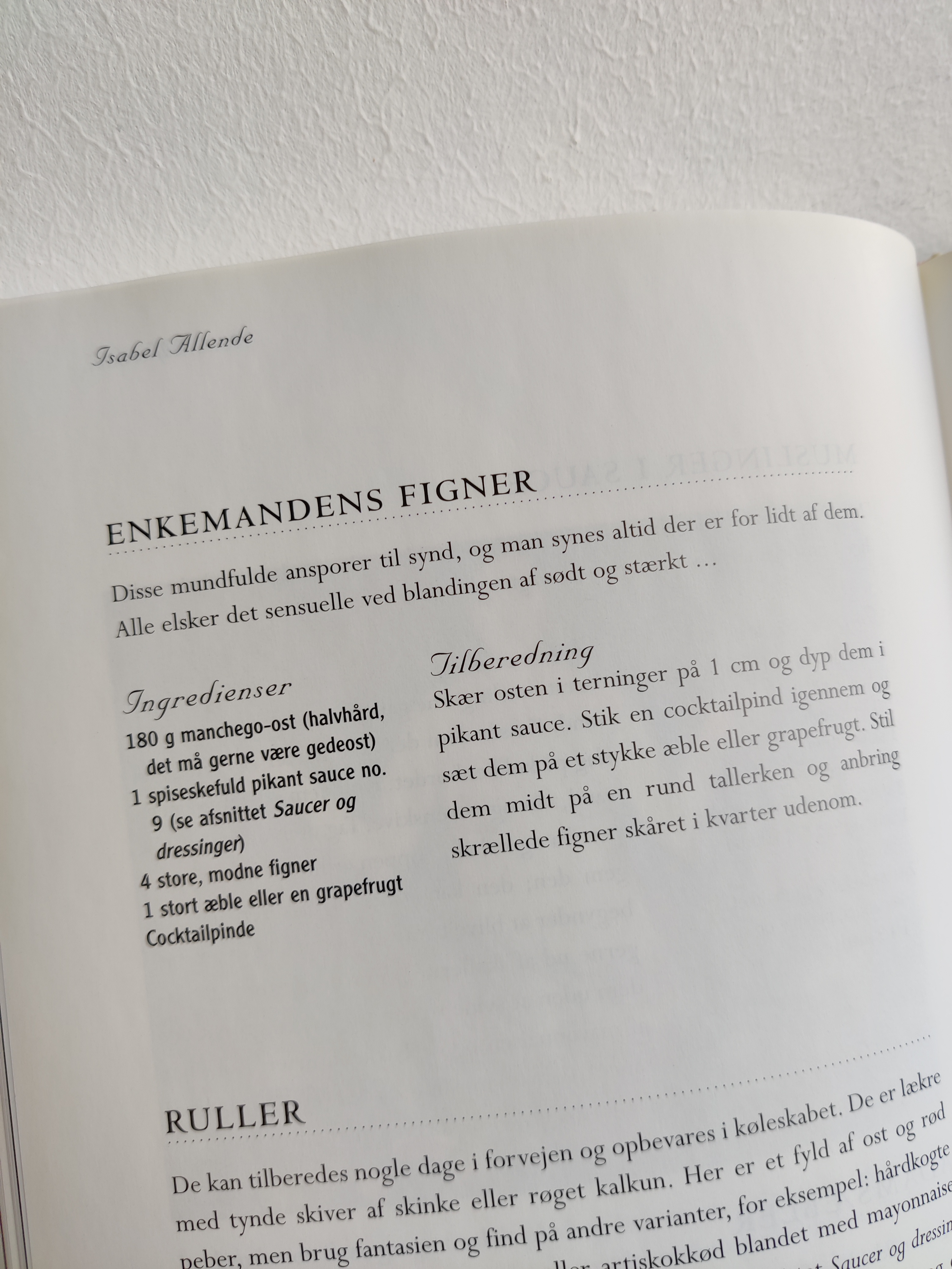 Afrodisiske ingrendienser kan være alt muligt ud over østers, og det sanselige køkken er the place to be, når man er fyldt 50, som der står i indledningen. Det er budskabet i Isabel Allendes kogebog fra 1998 med masser af fortællinger om erotikkens kulinariske historie, og konkrete opskrifter på retter som Sheikens Auberginer og Frivole Svesker. Format 25 x 18 cm.