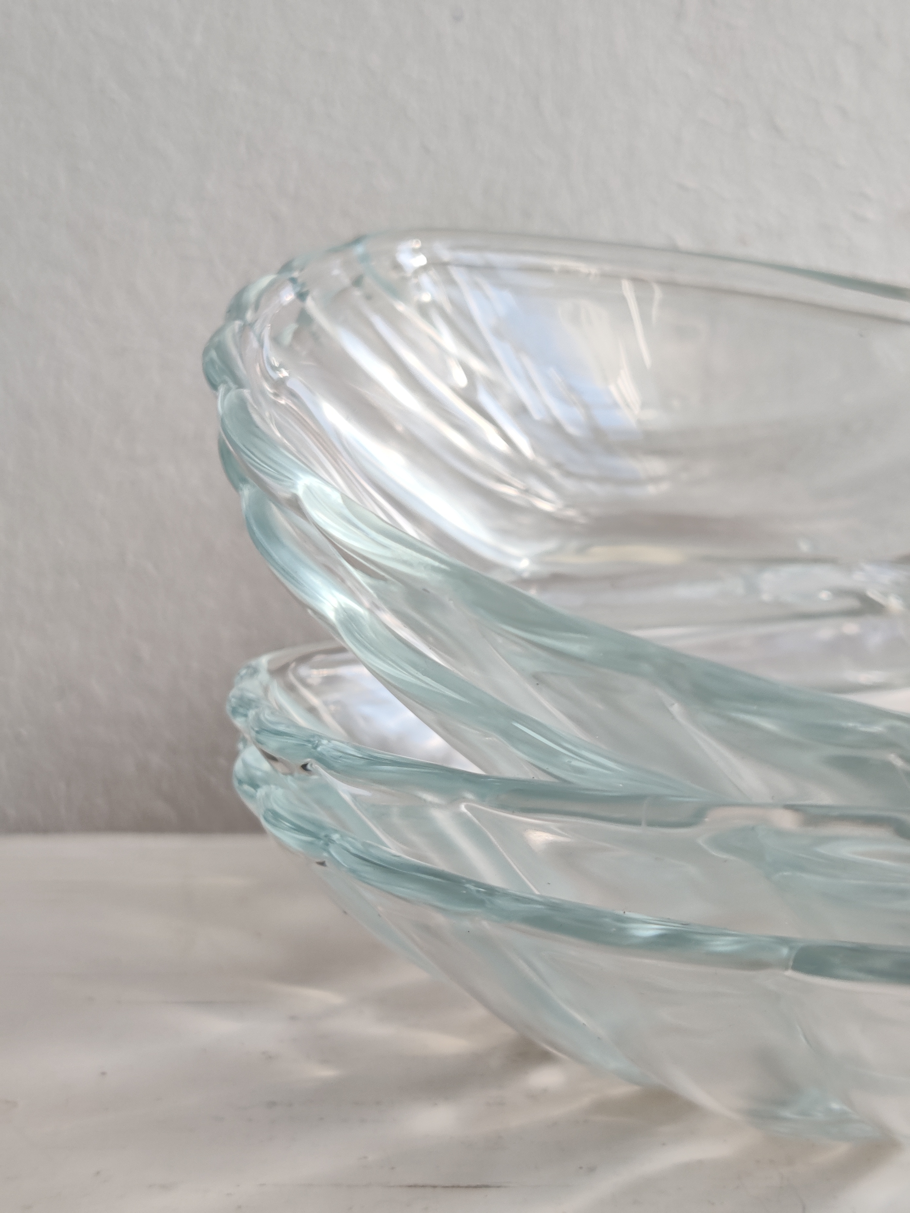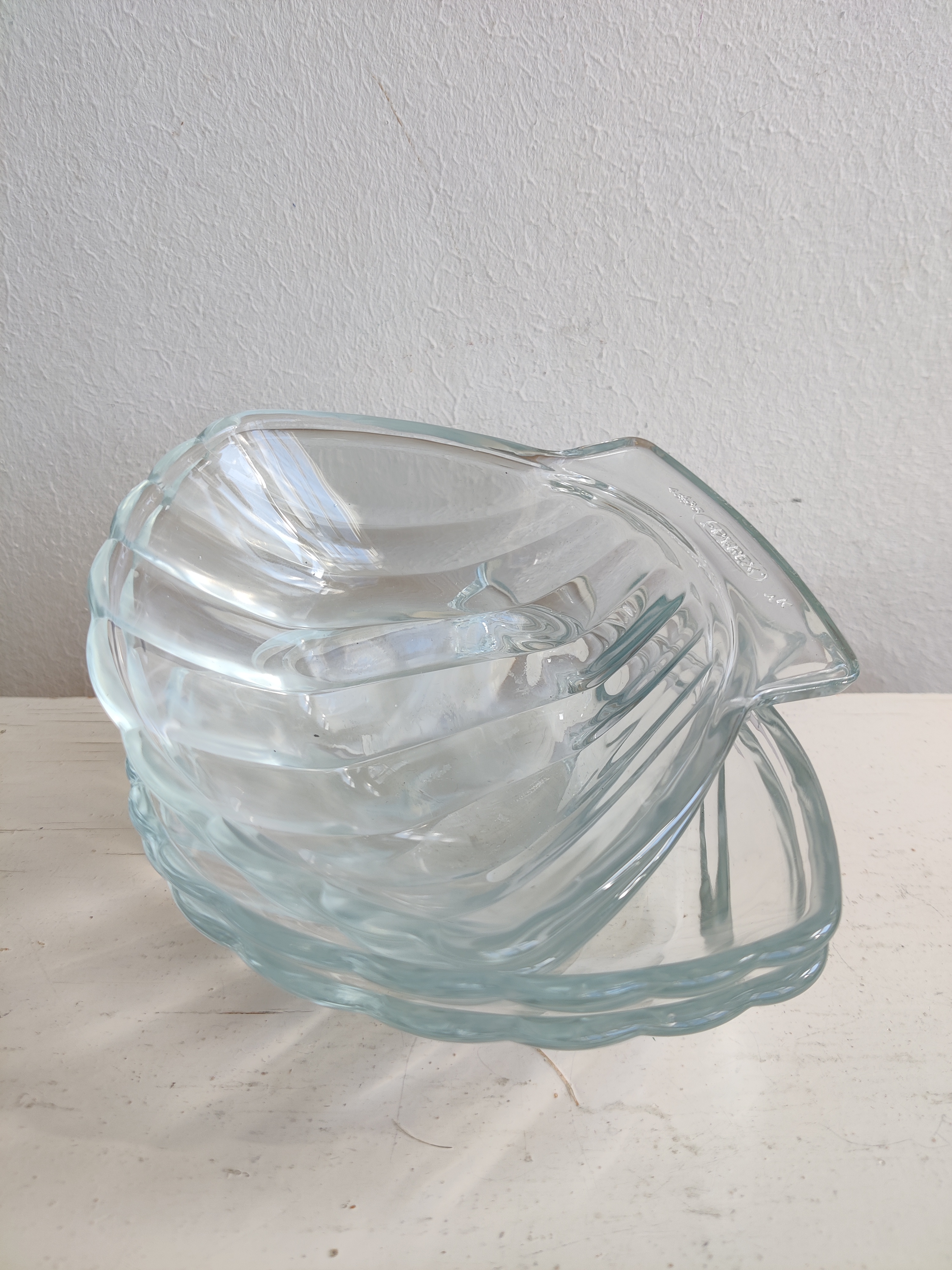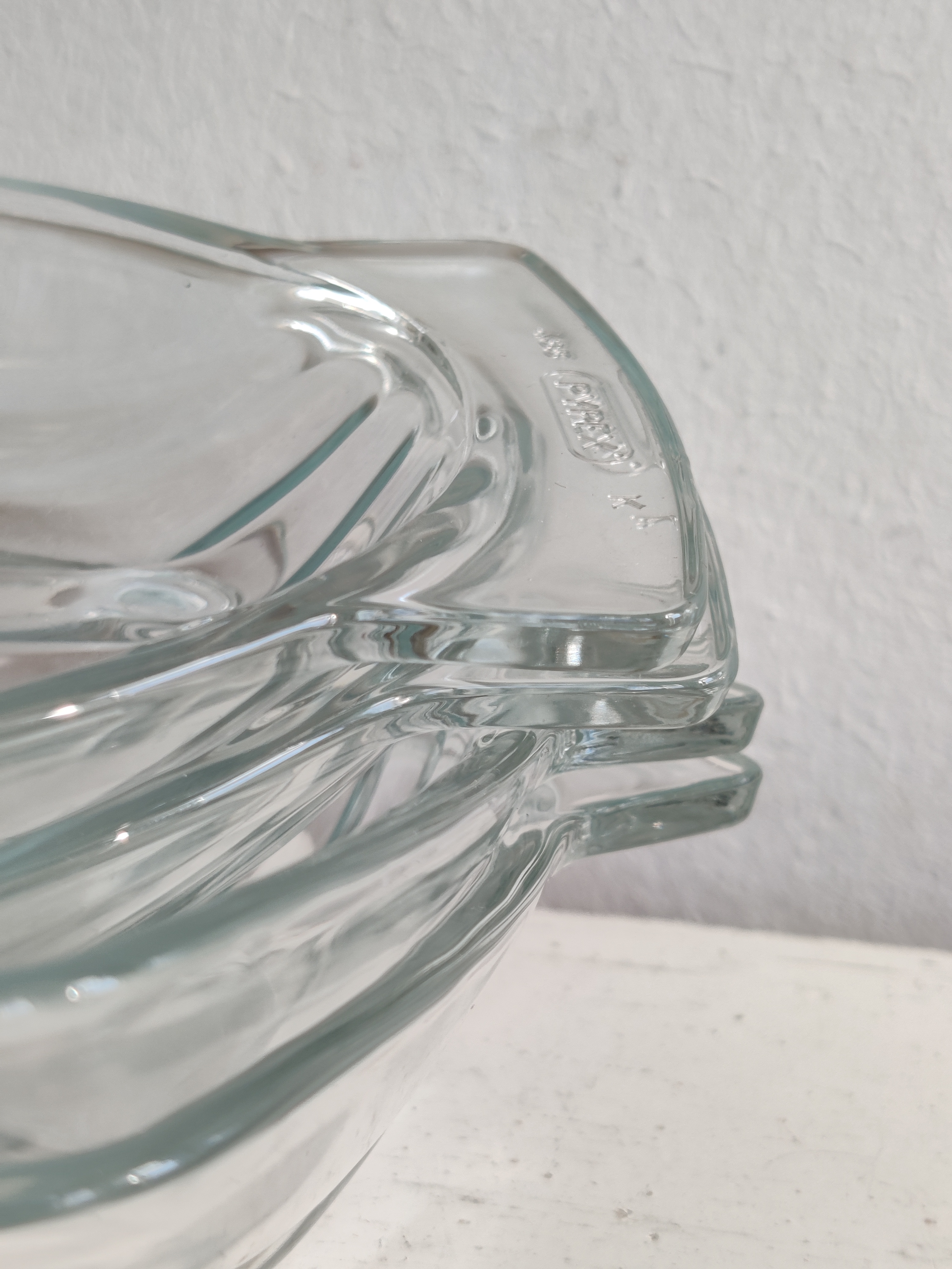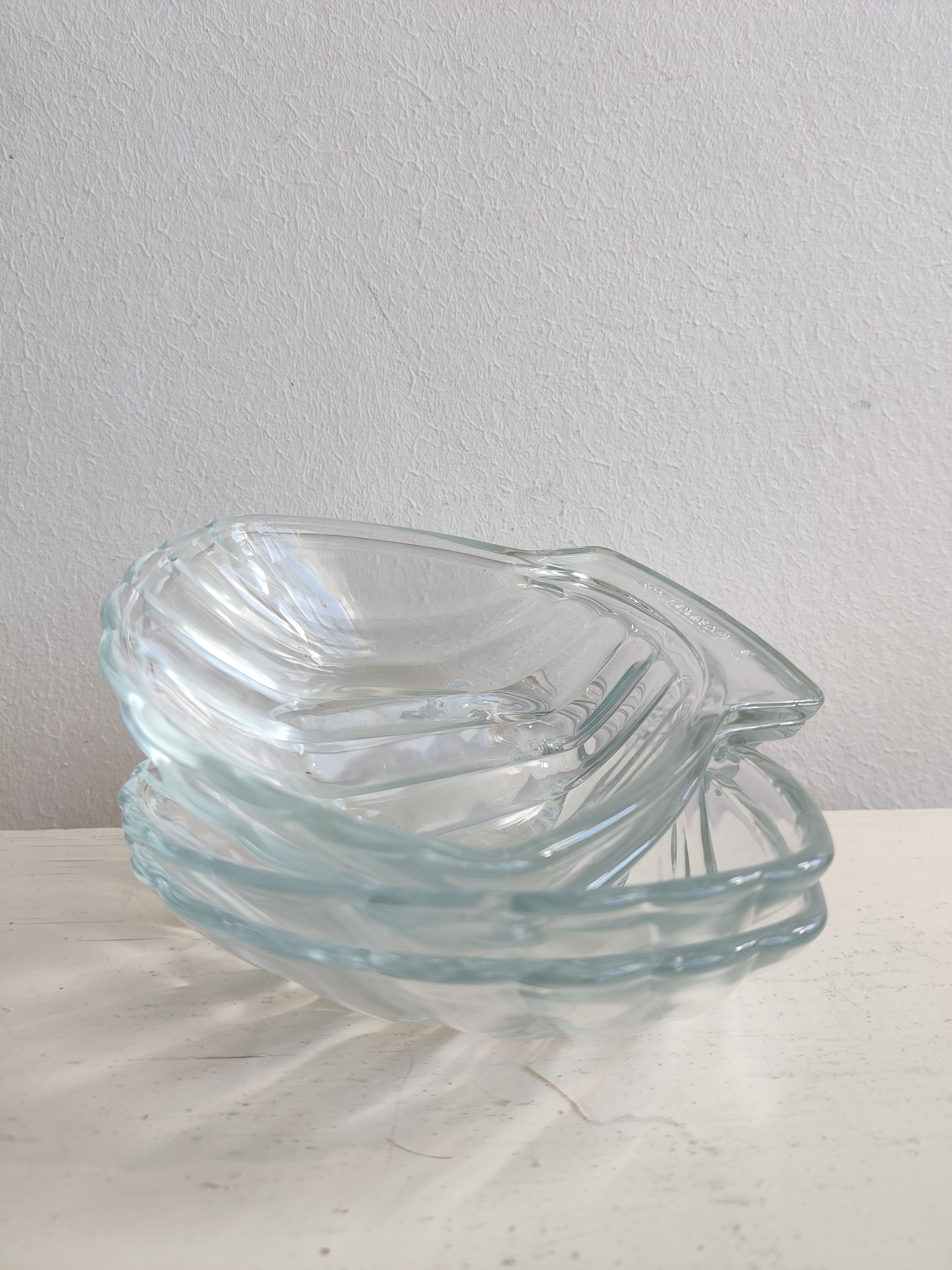 Fire flotte Pyrex muslingeskåle, der kan bruges både til pynt og madlavning - skal du lige gratinere en østers, servere en hjemmerørt aioli til rejerne, eller skal du arrangere dine smykker - så er du landet det rette sted. Mål 13 x 13 cm.