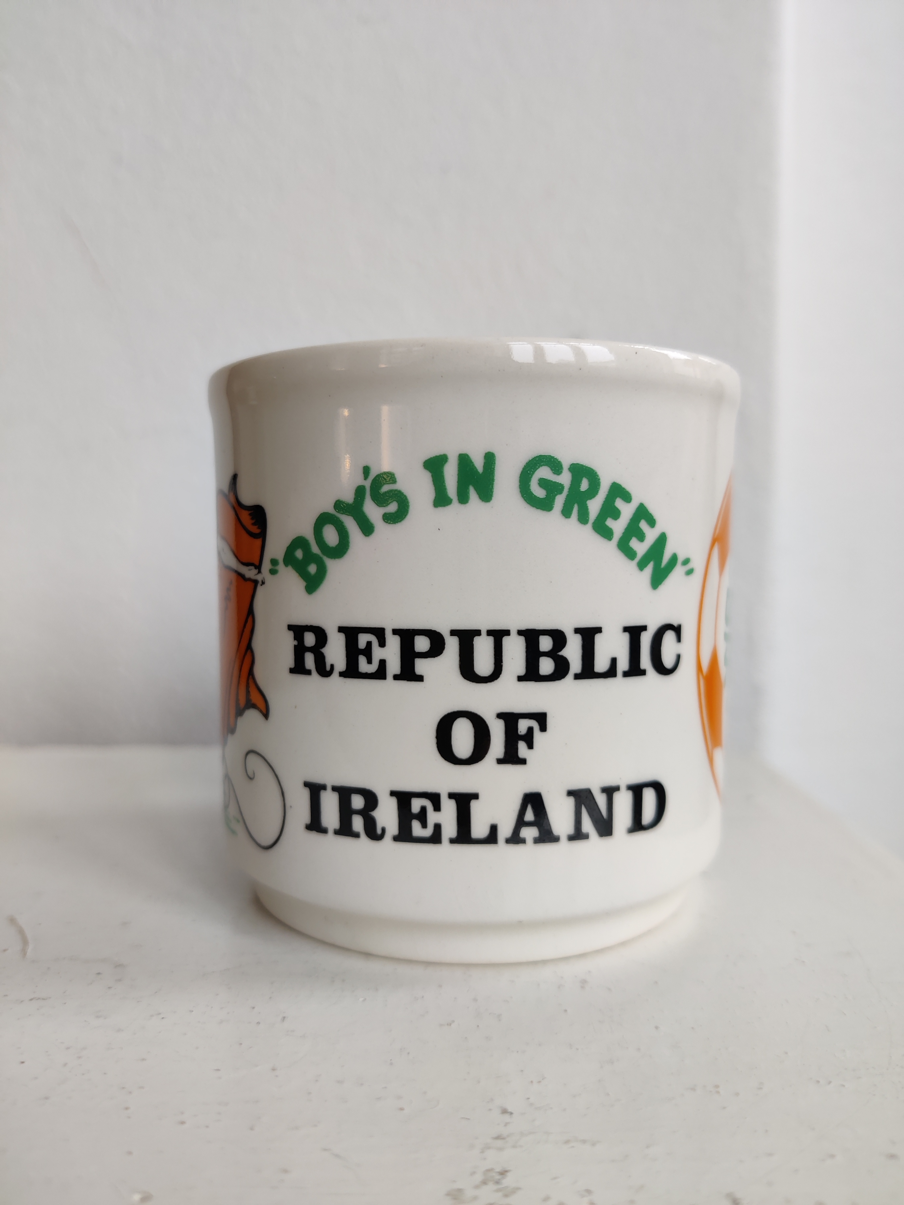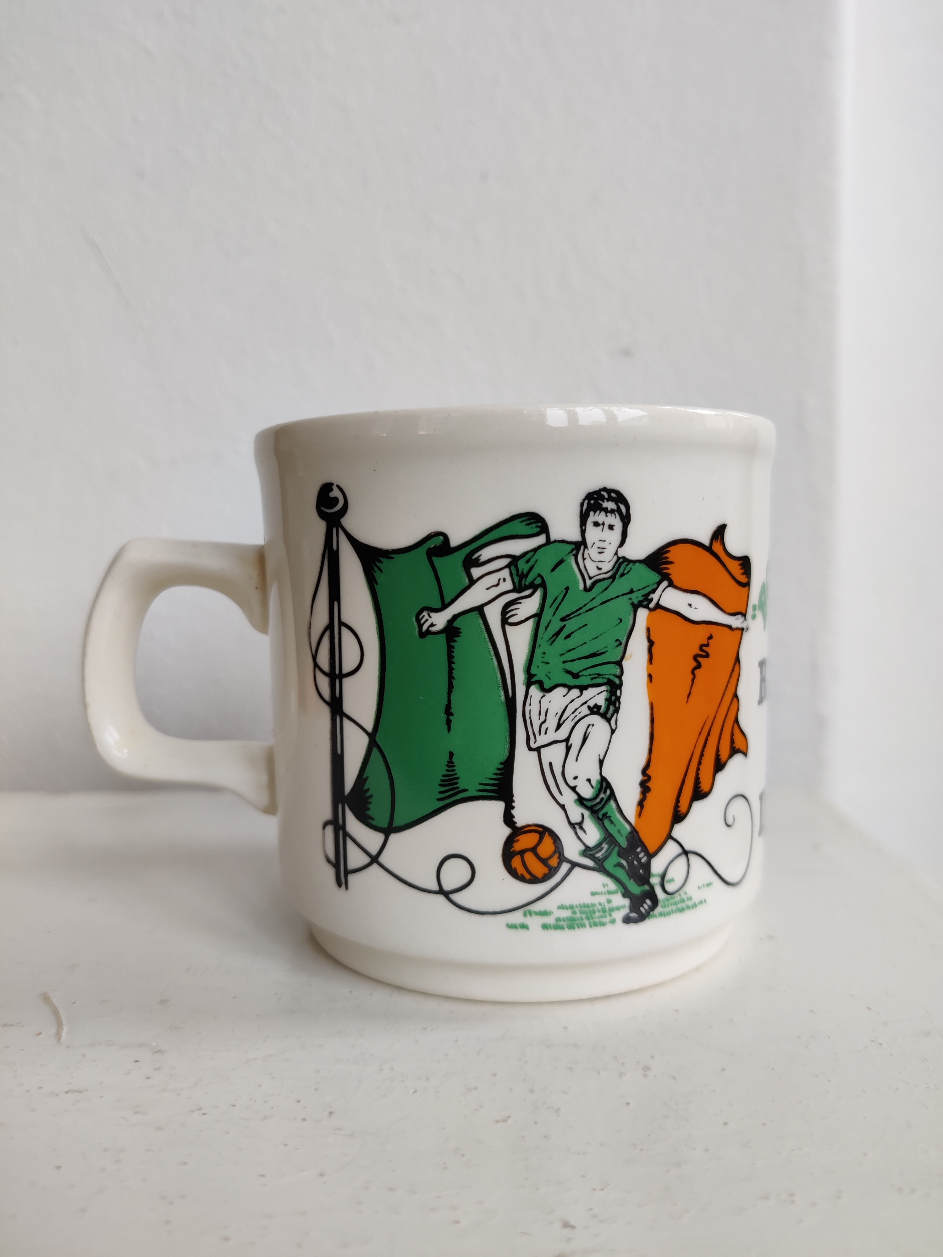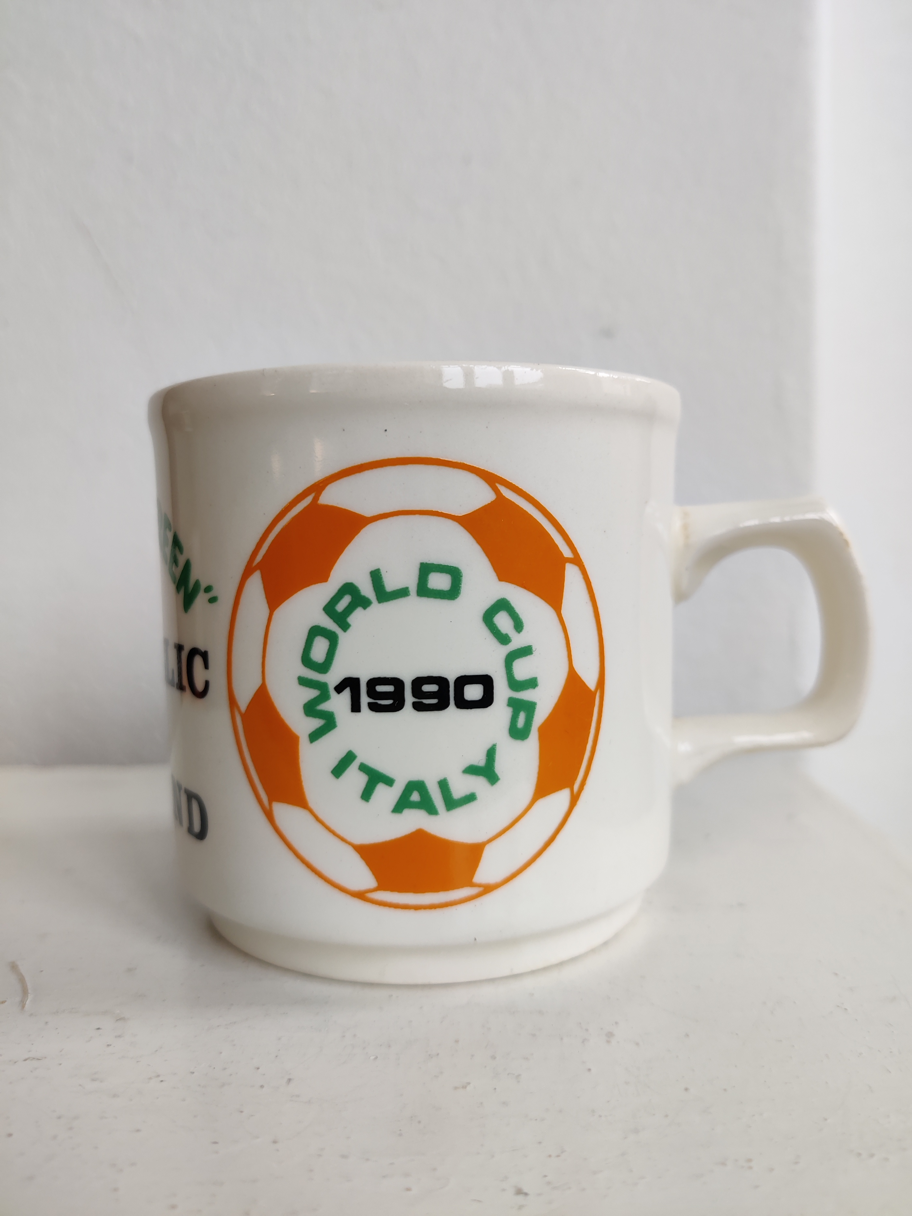 Lækkert kaffekrus fra Irland 1990 i anledning af World Cup i Italien. God gave til en fodboldfan eller irishman/woman i dit liv.