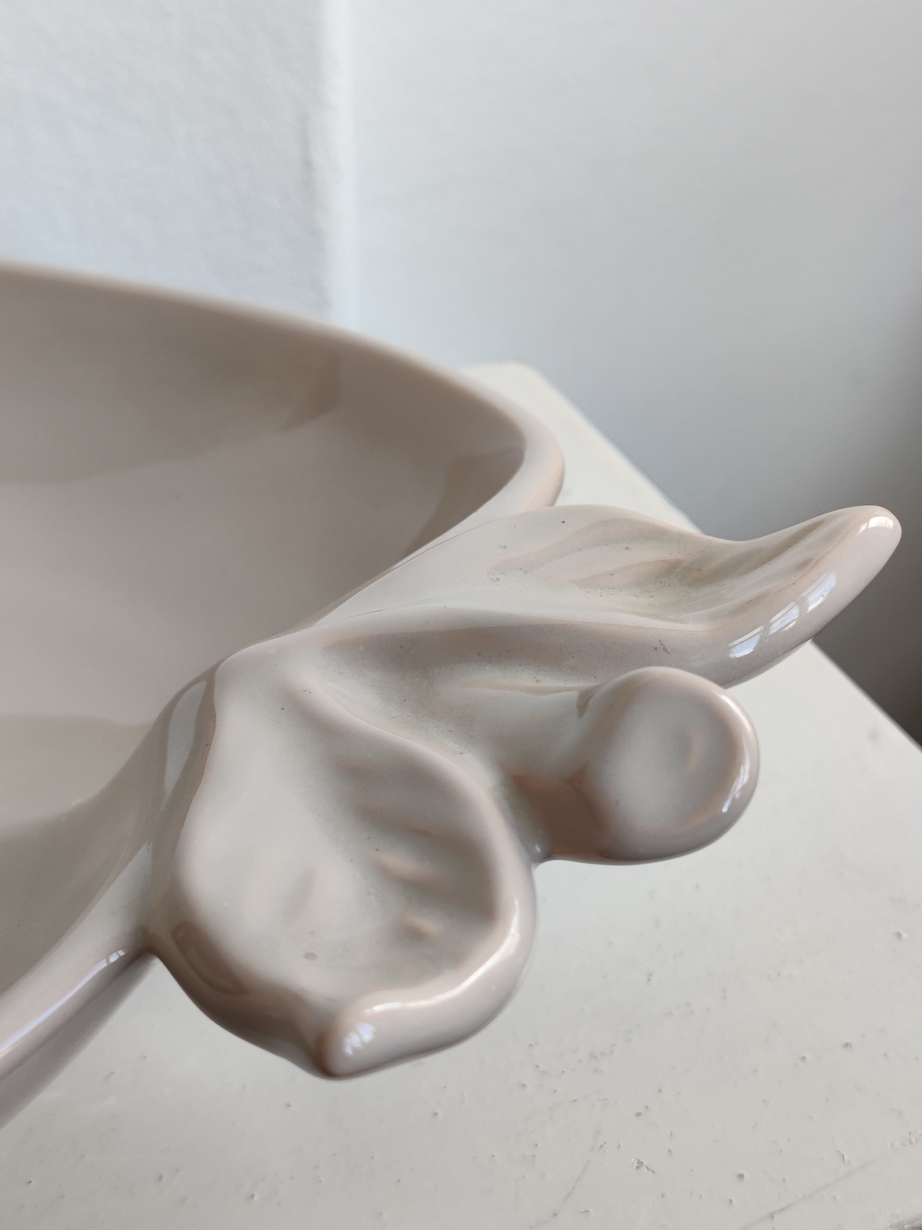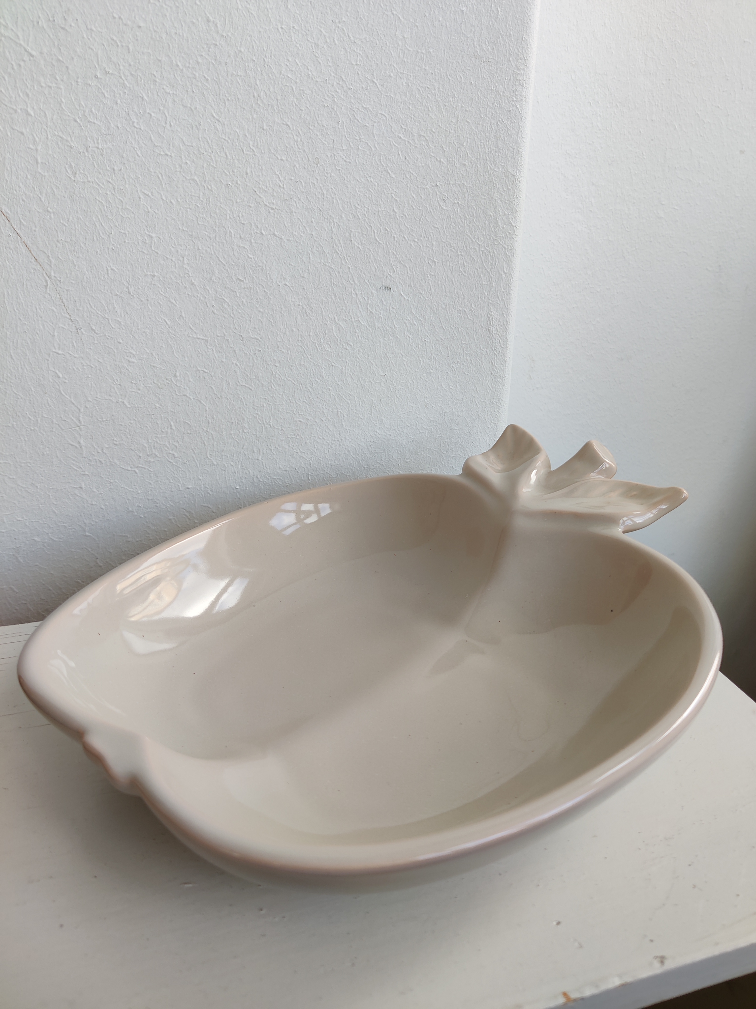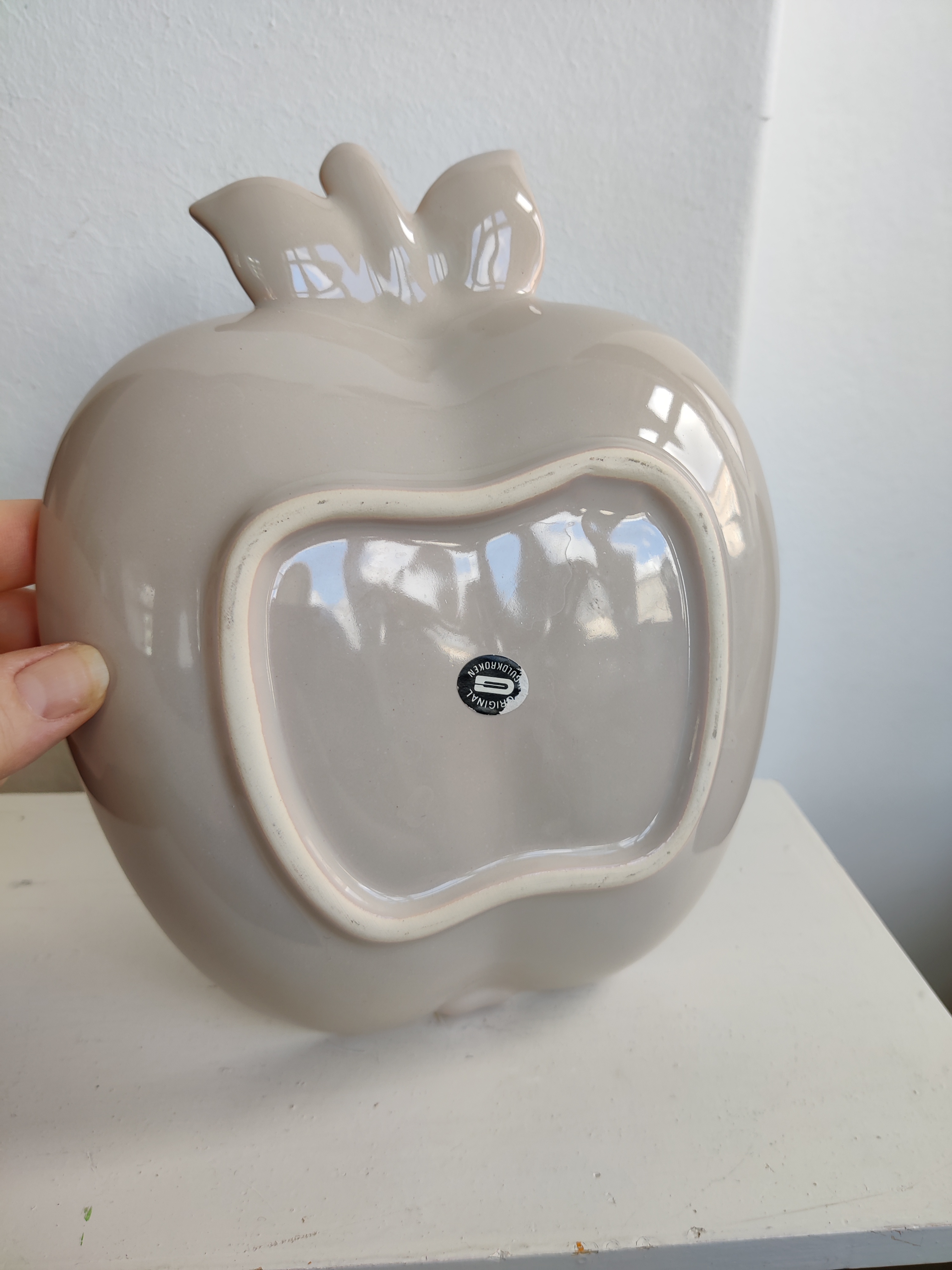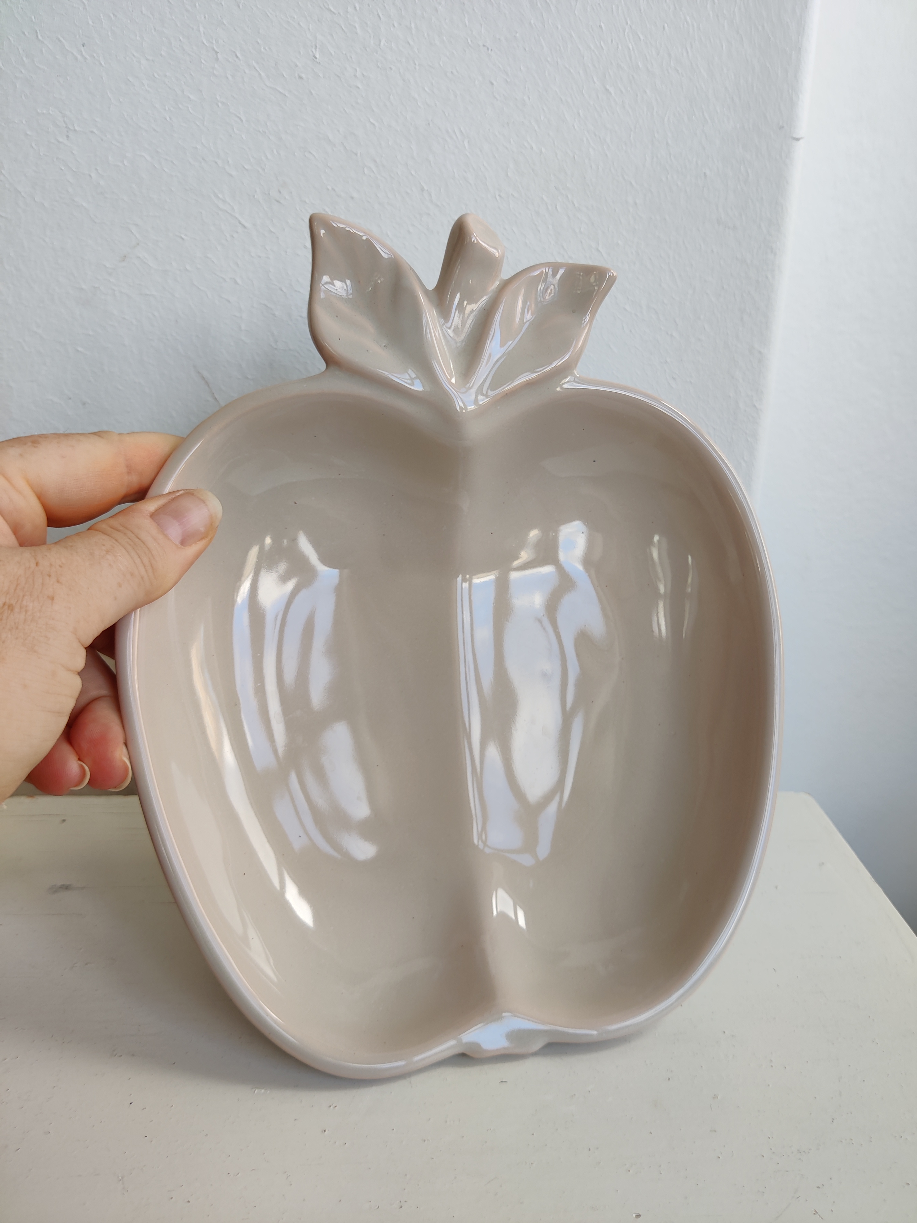 Svensk Guldkroken æblefad i smukt glaseret keramik - farven svinger mellem grå, grøn og rosa.
