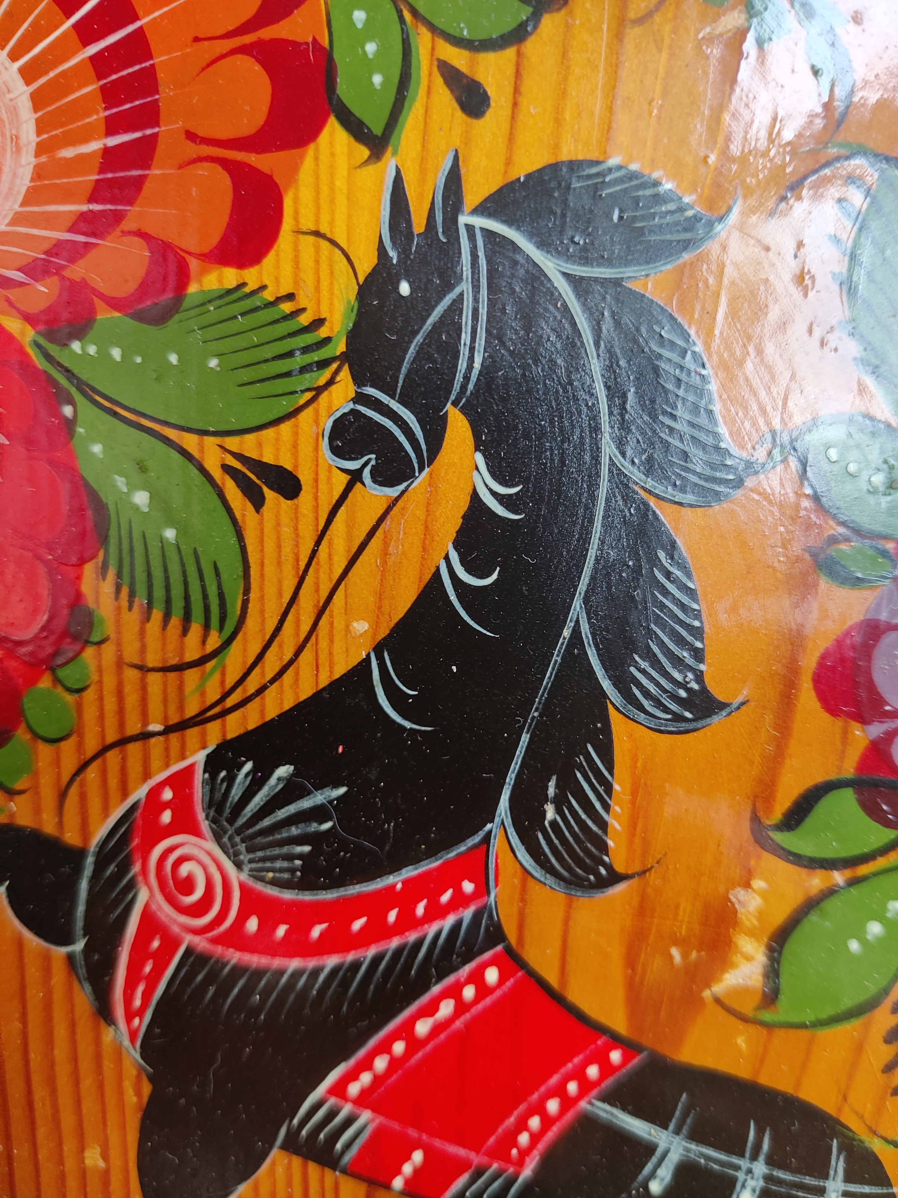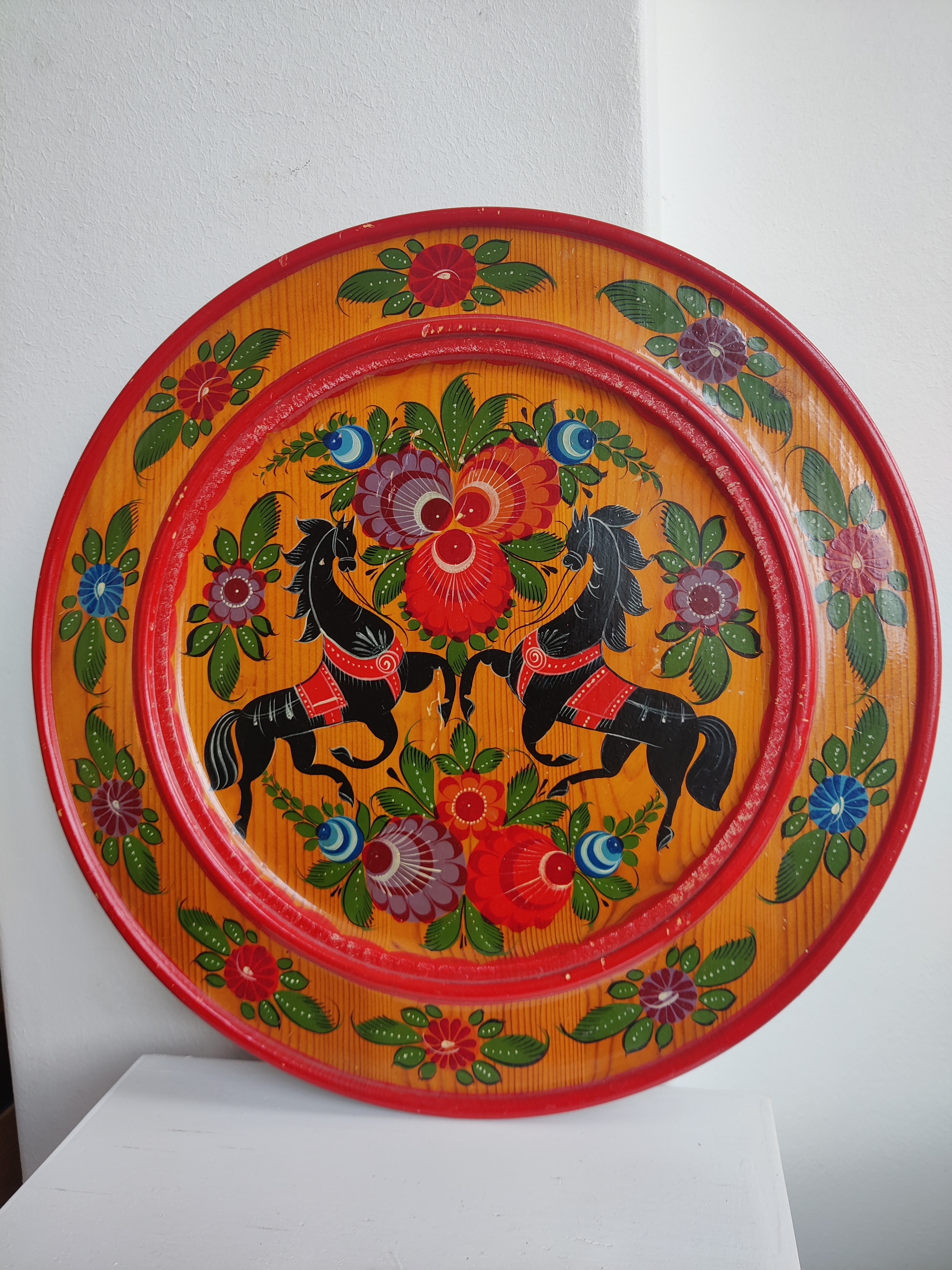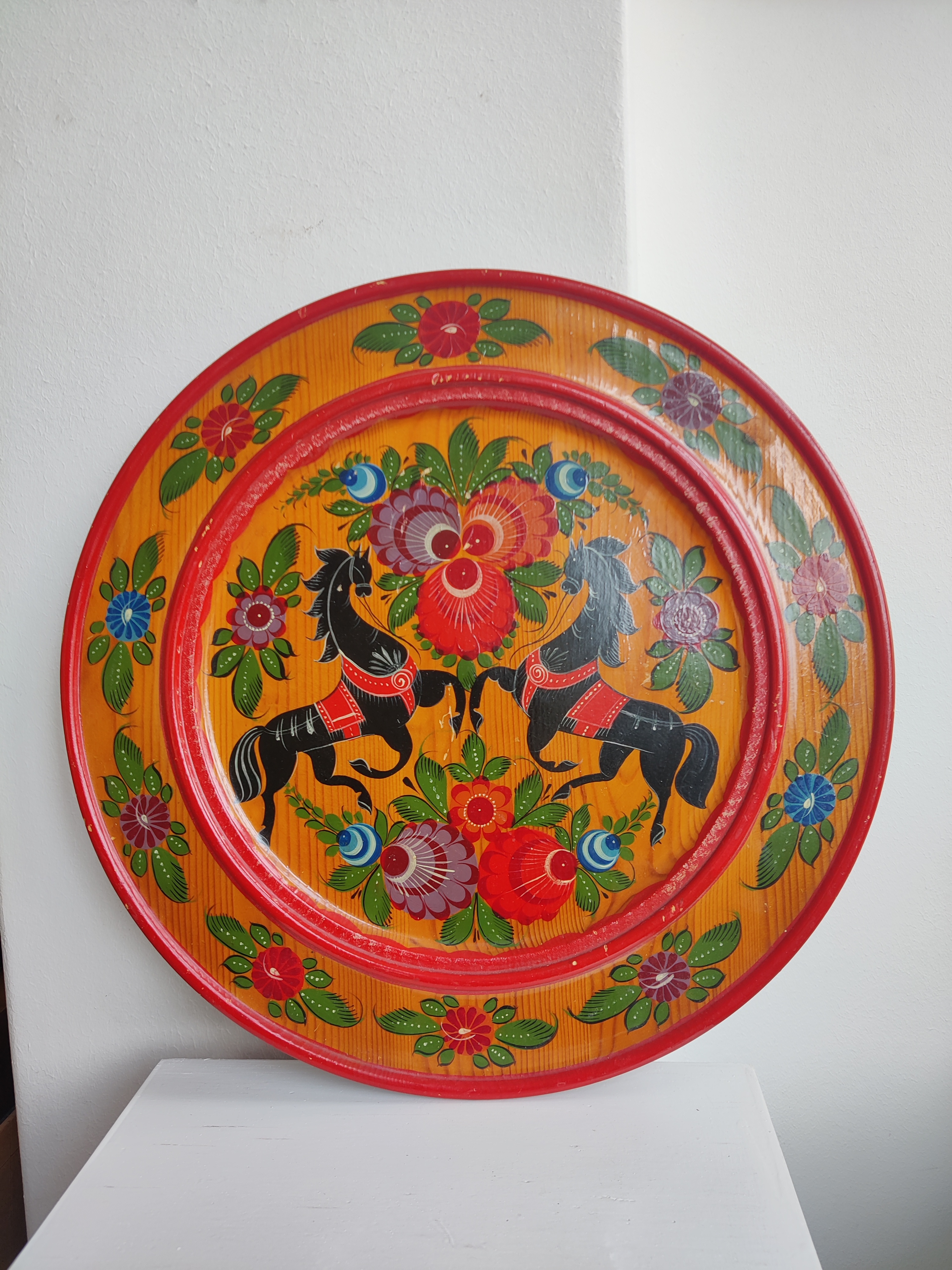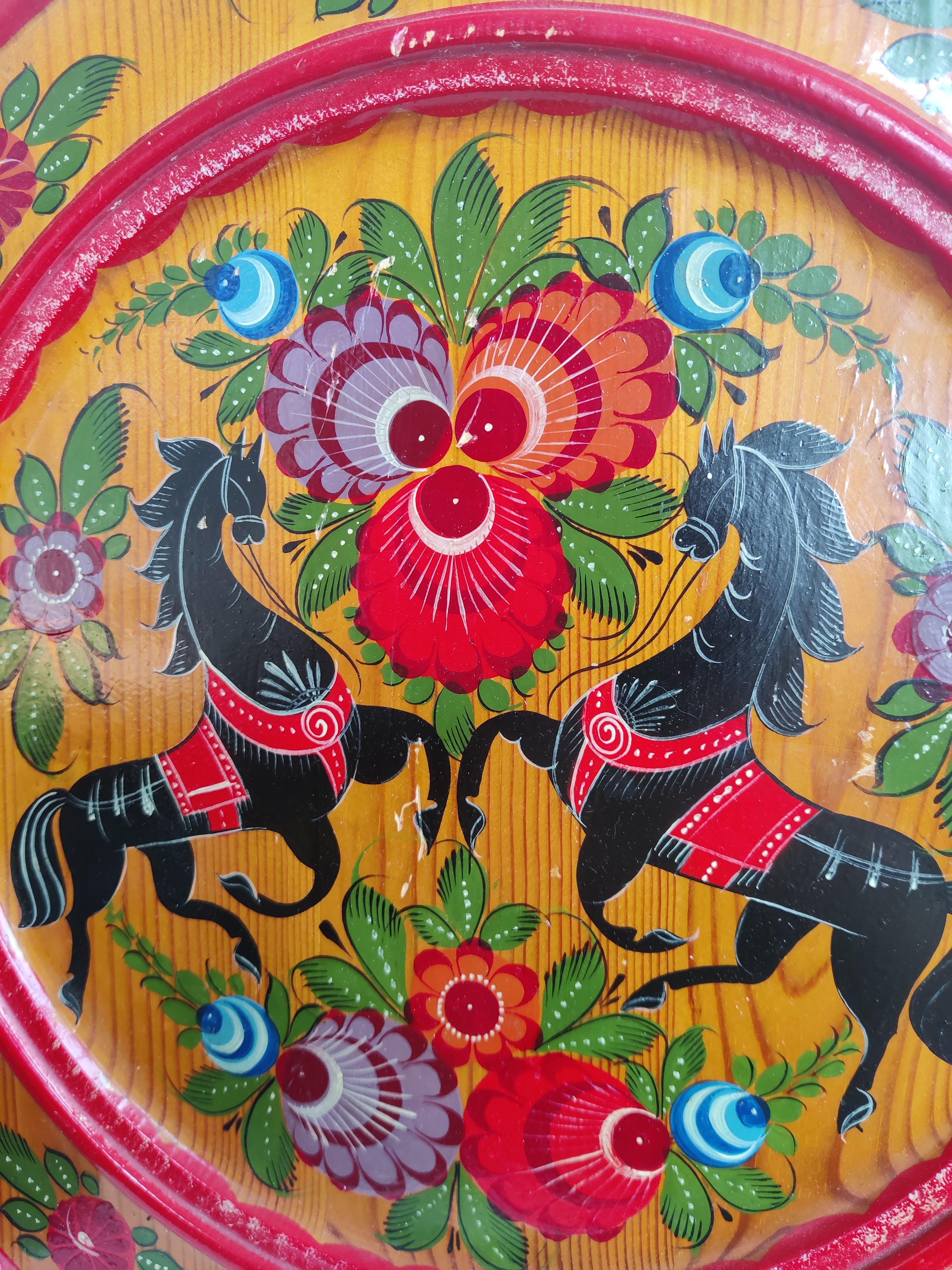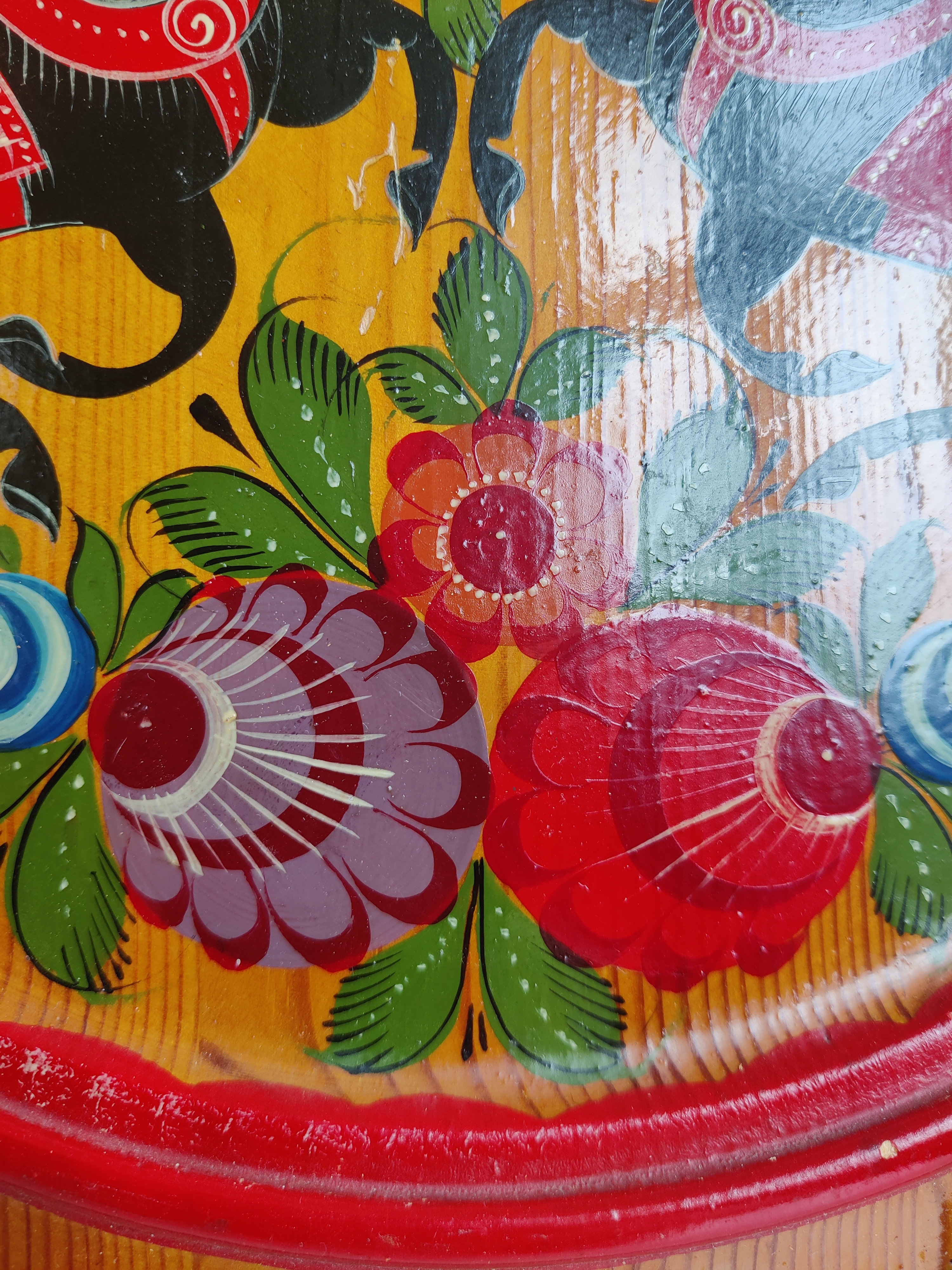 Stor håndmalet træbakke, russisk