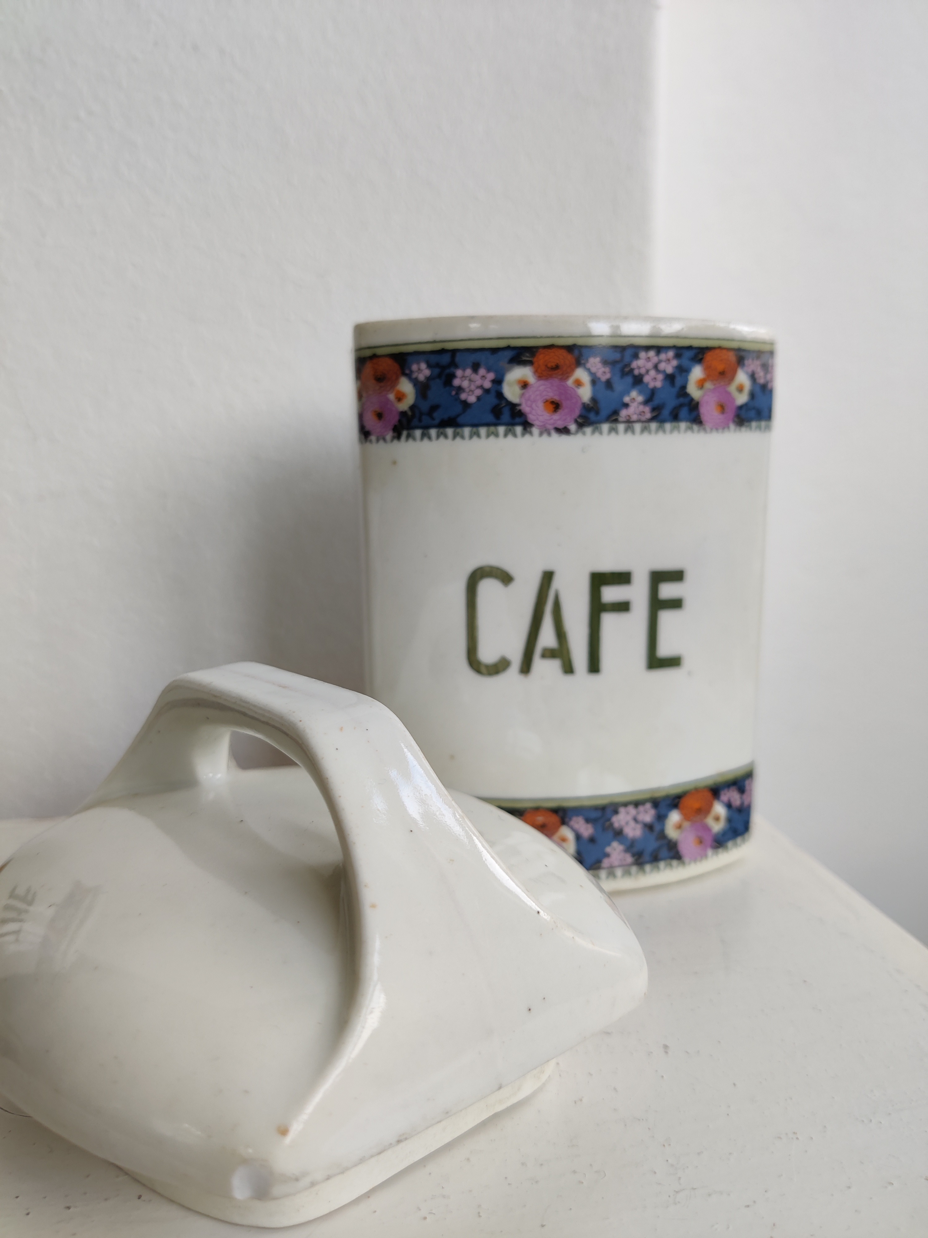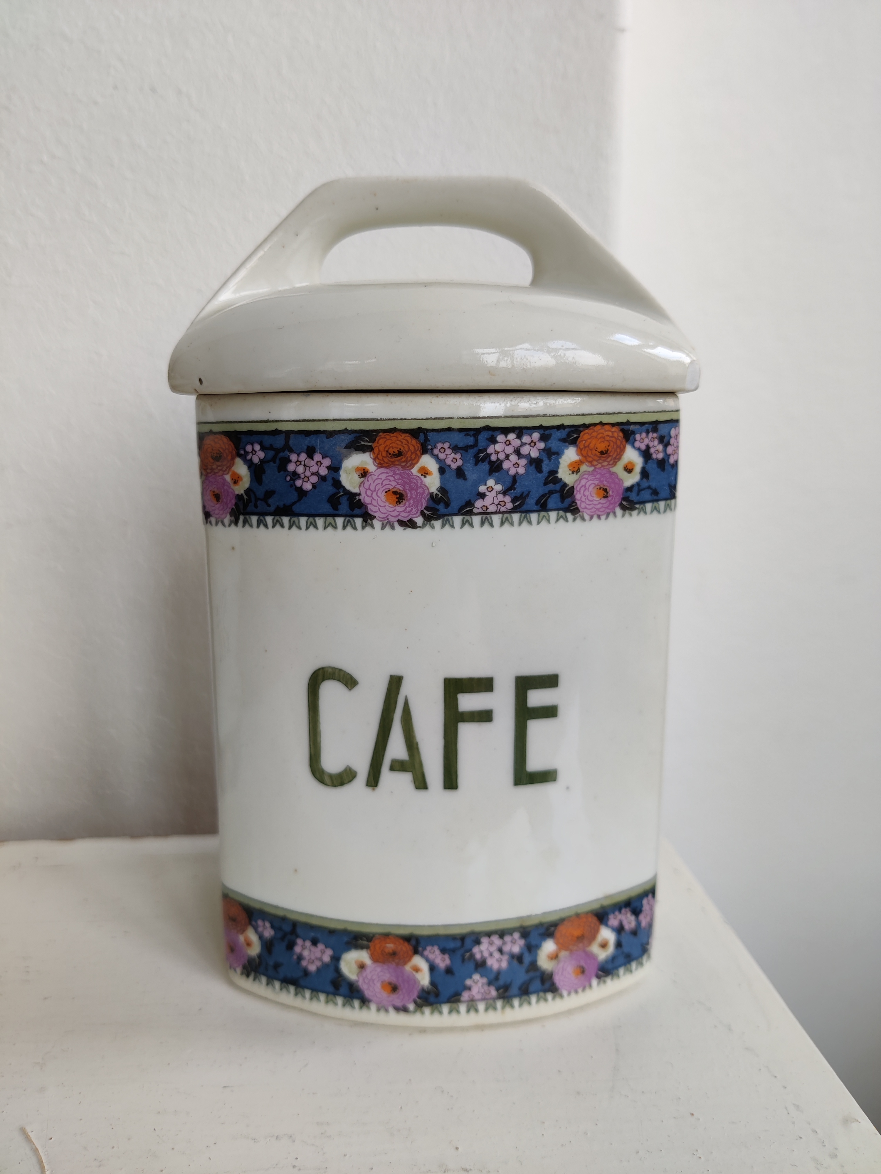 Smuk gammel fajancekrukke til kaffe. Fransk og med målene 17 x 8 x 9 cm.
