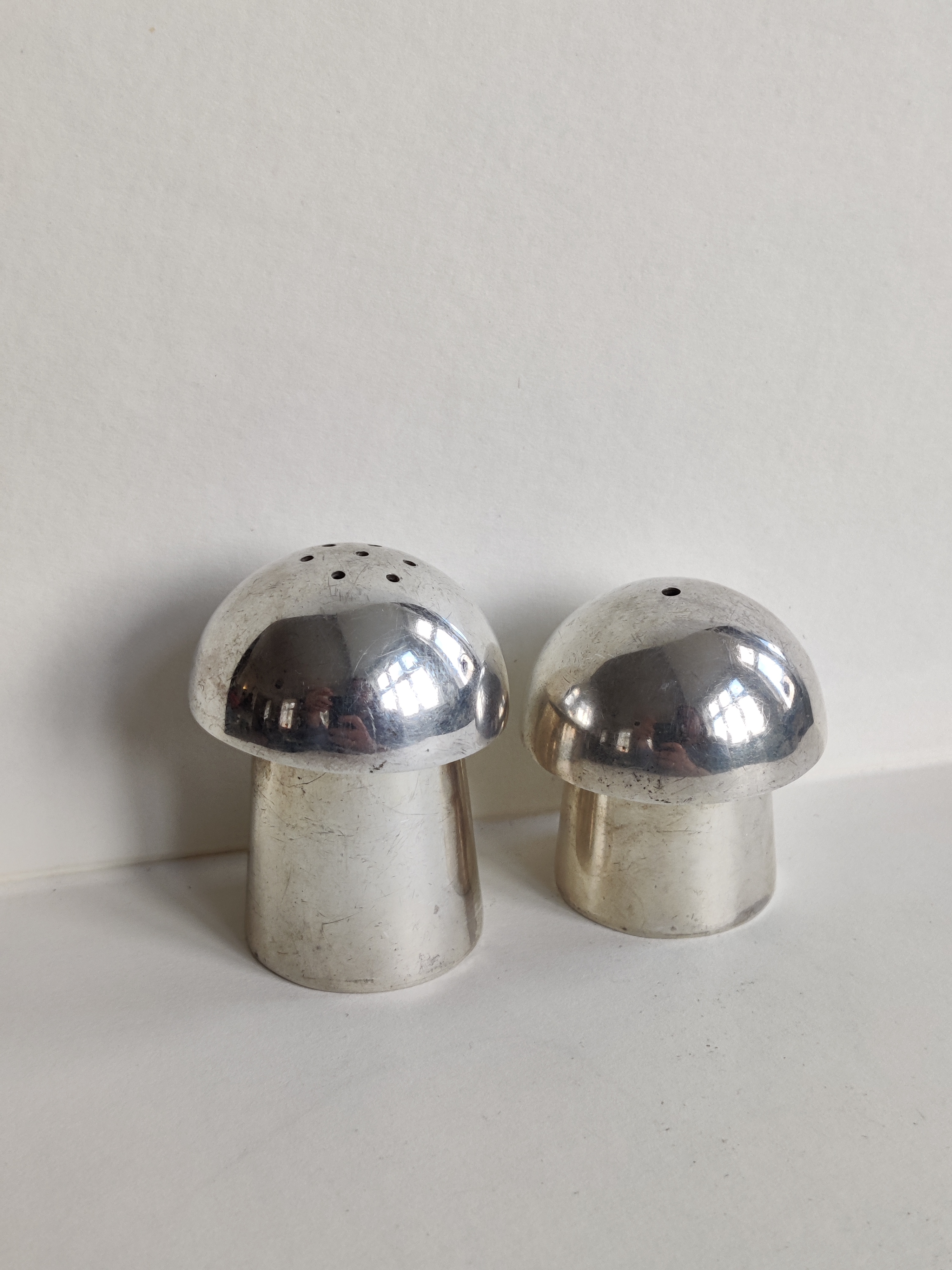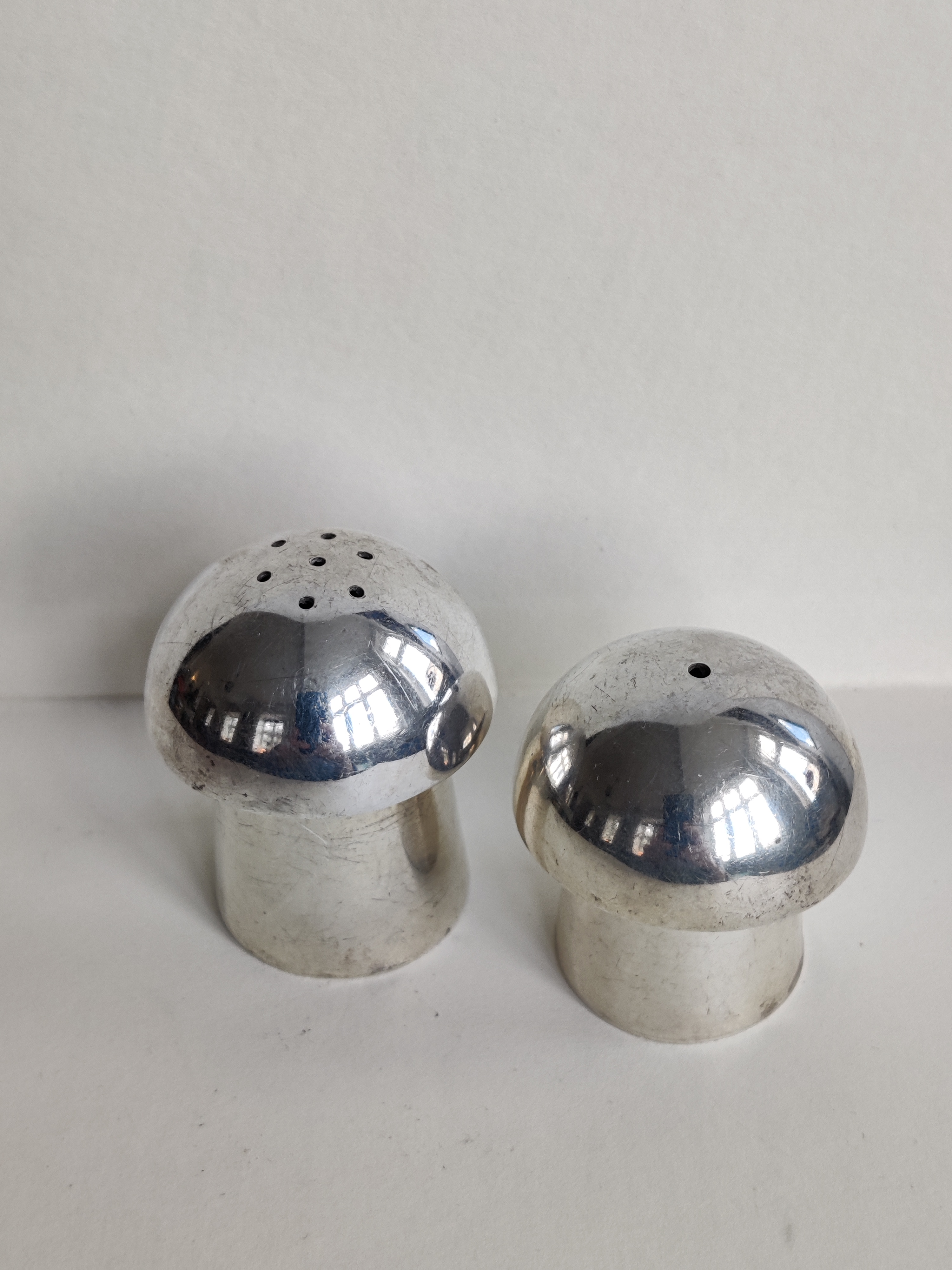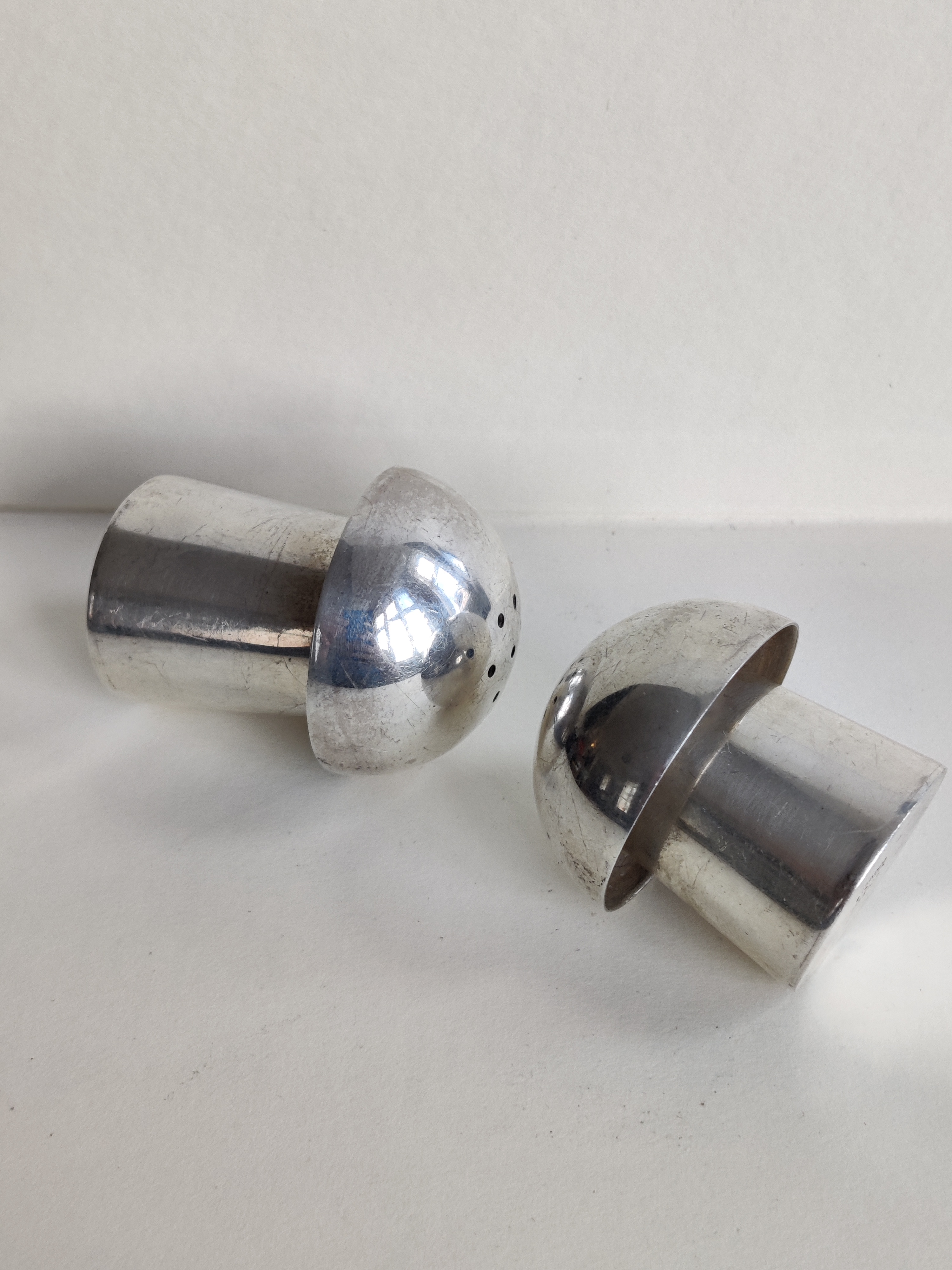 Et par enkle, sjove og fantastisk fine gamle paddehatte i 925 sterlingsølv til salt og peber. Højde hhv. 5 og 4 cm.