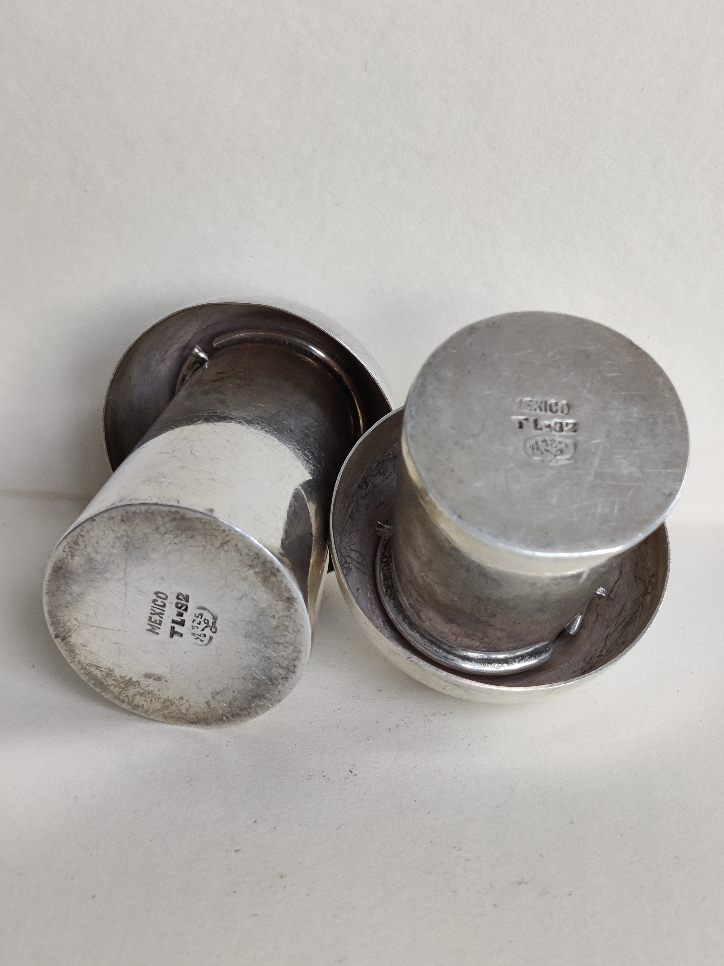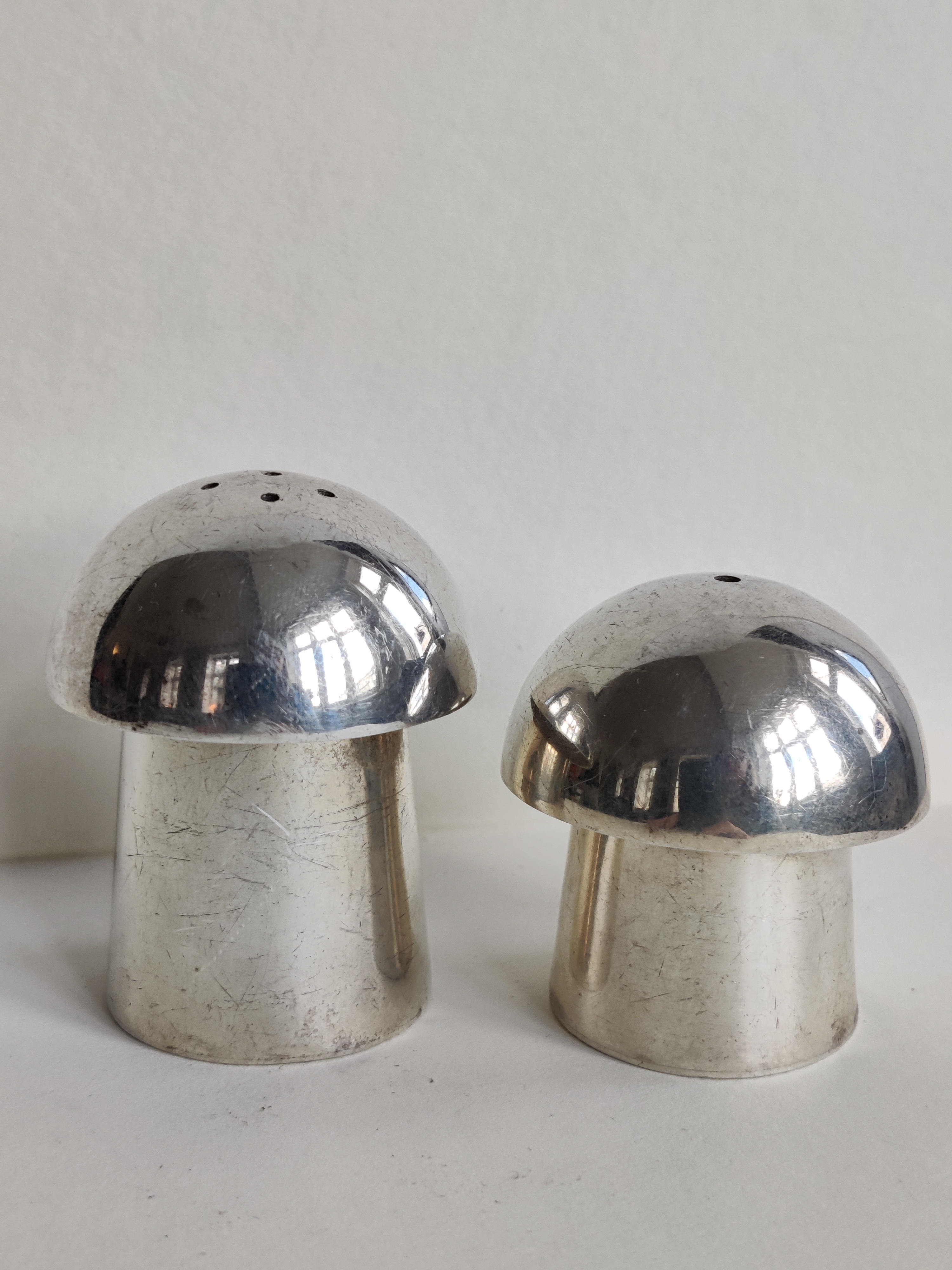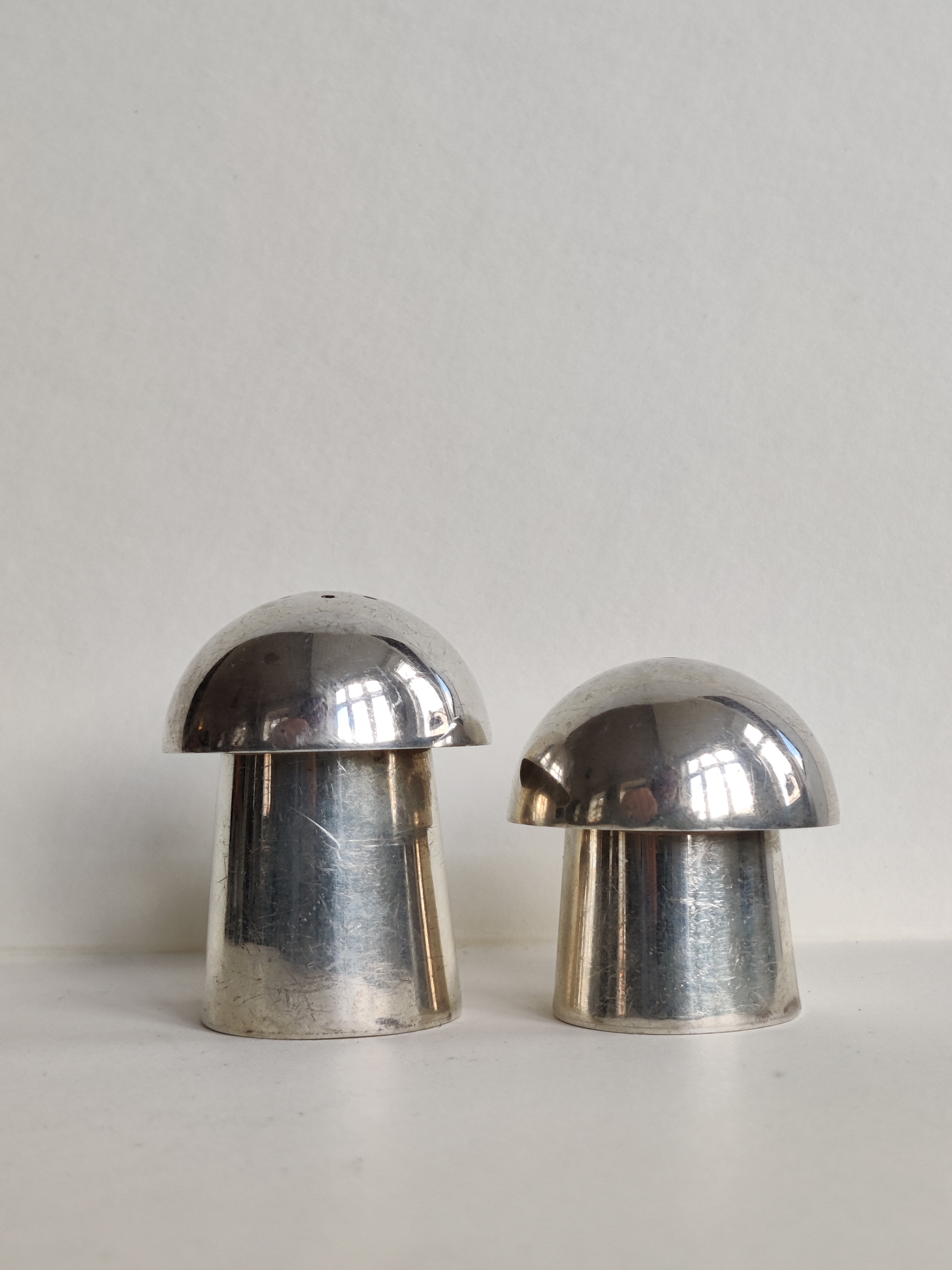 Et par enkle, sjove og fantastisk fine gamle paddehatte i 925 sterlingsølv til salt og peber. Højde hhv. 5 og 4 cm.