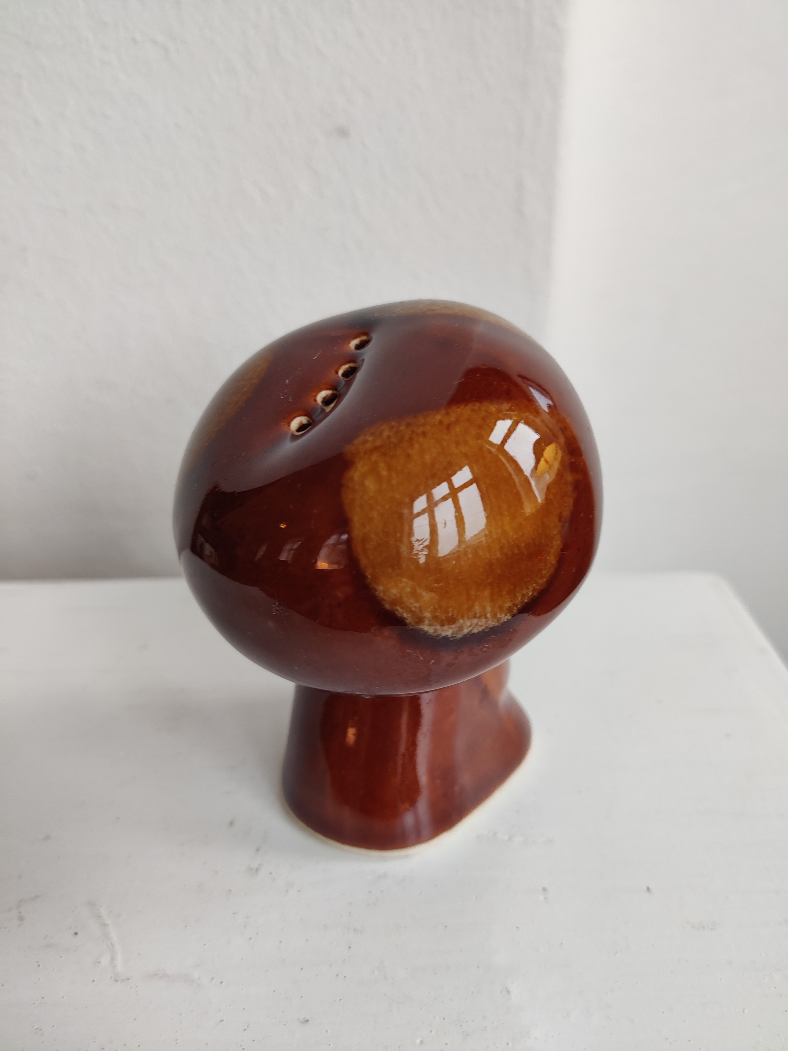 Saltshaker svampe-mand med det bedste lille fjæs. Han er fra østeuropa et sted i 1970'erne og så klar til at komme med på dit spisebord. Renset og i flot stand. Har original plastprop. Mål 9 x 7 cm.
