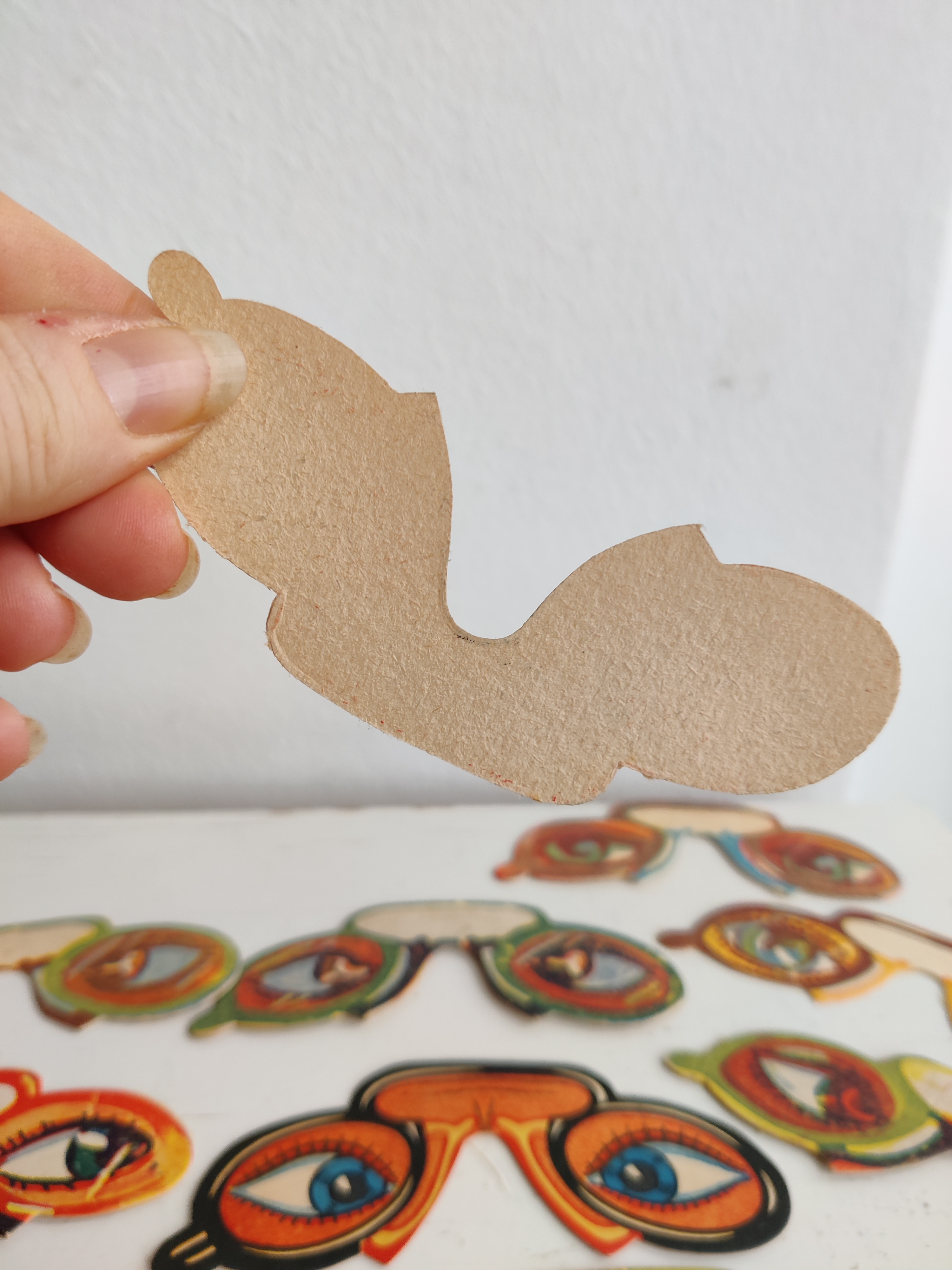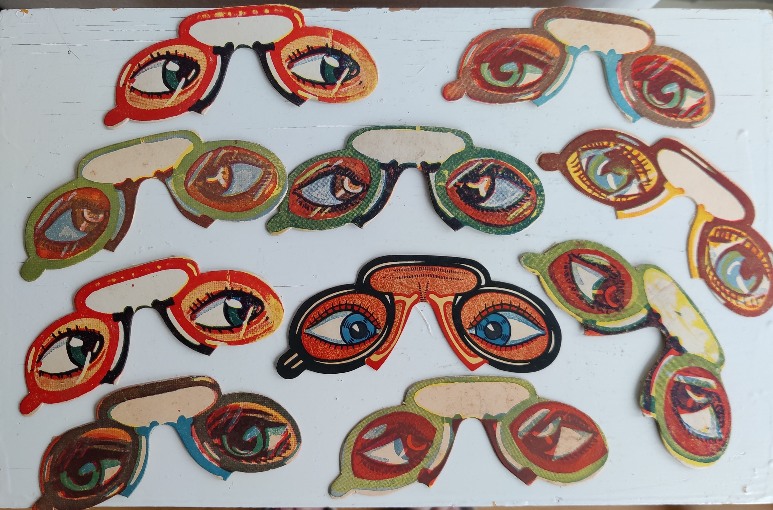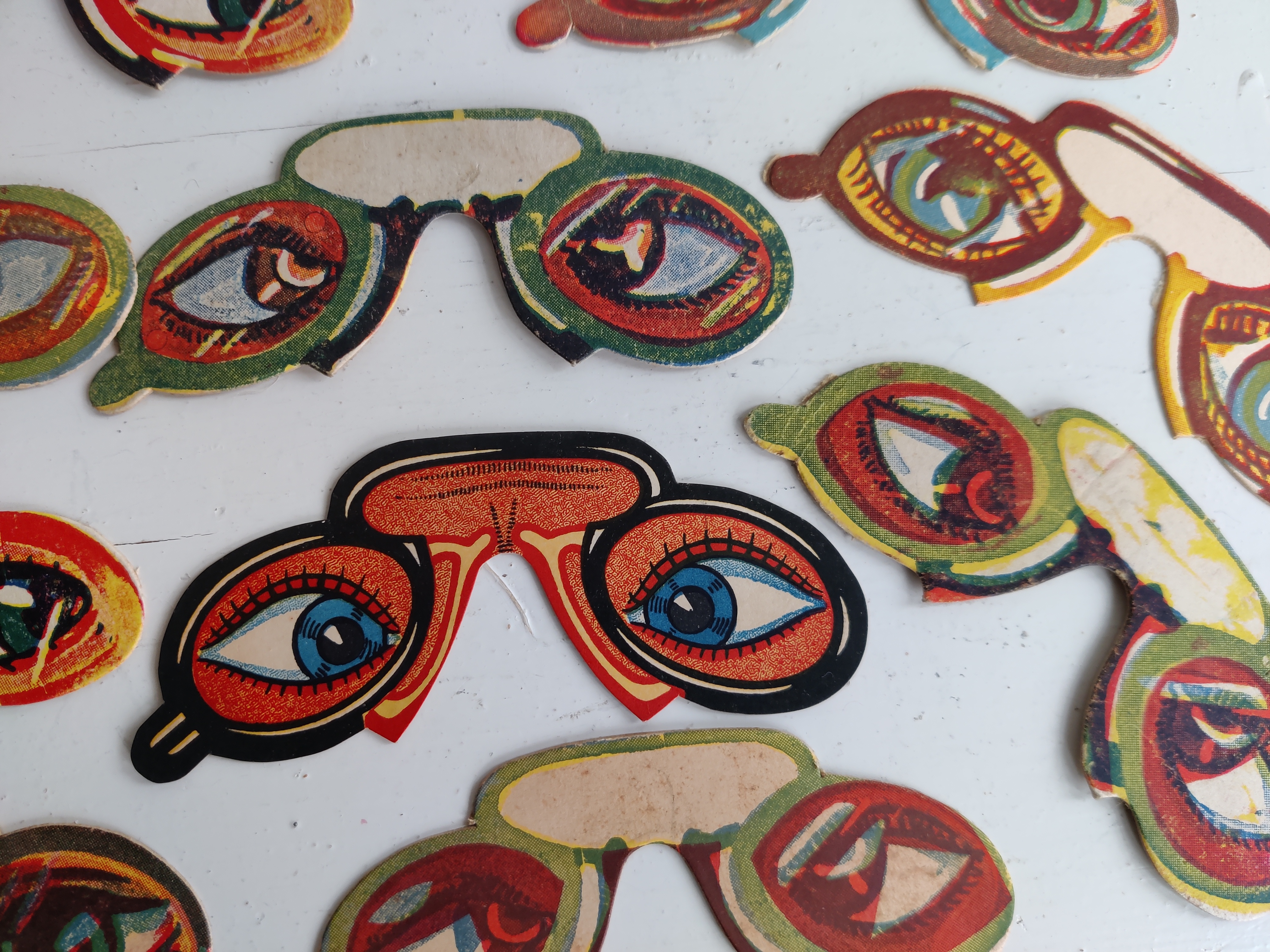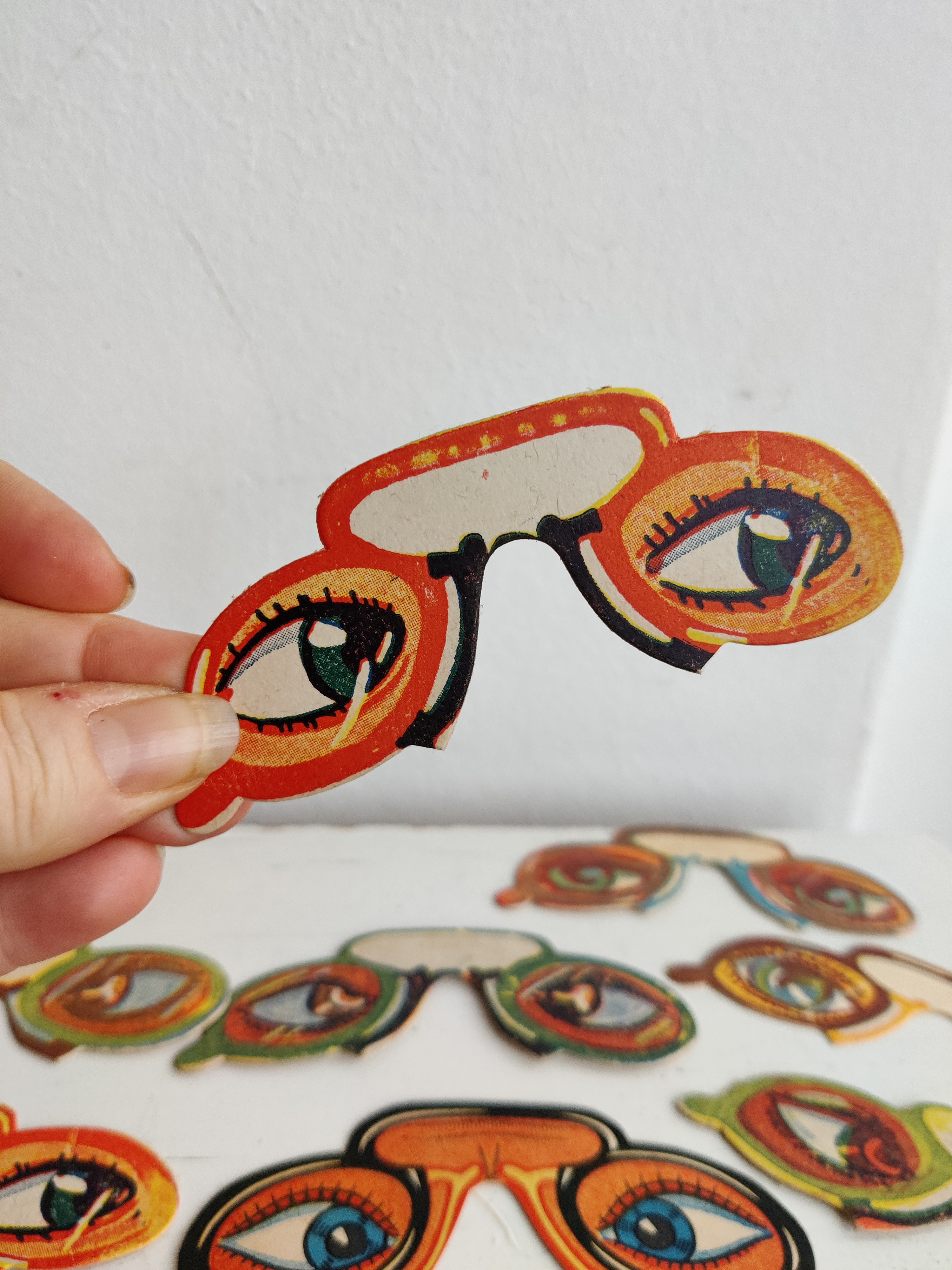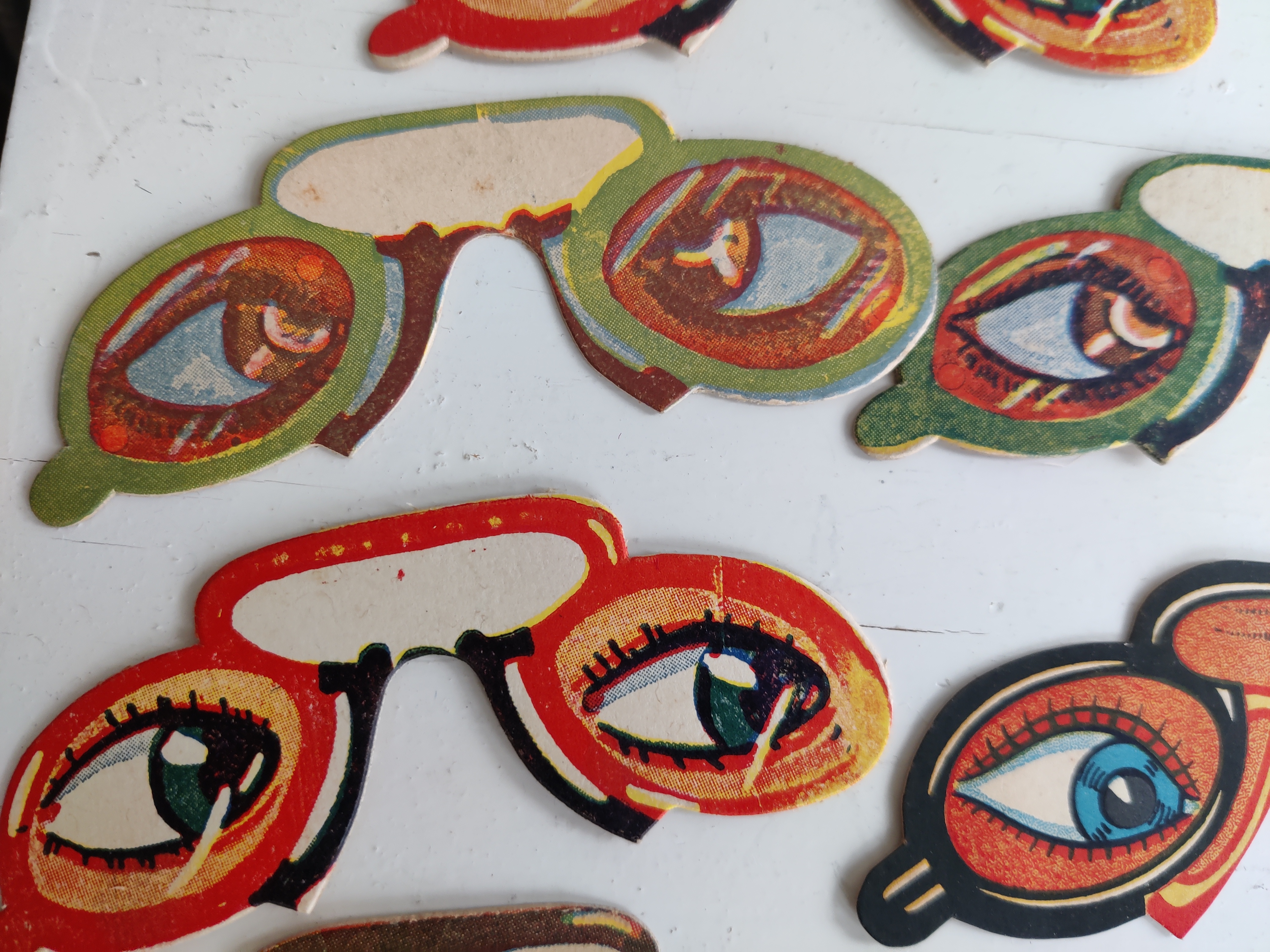 De sjoveste gamle, blandede nytårsbriller til at sidde på næsen. De er fra 1940'erne og måler 10 cm.
