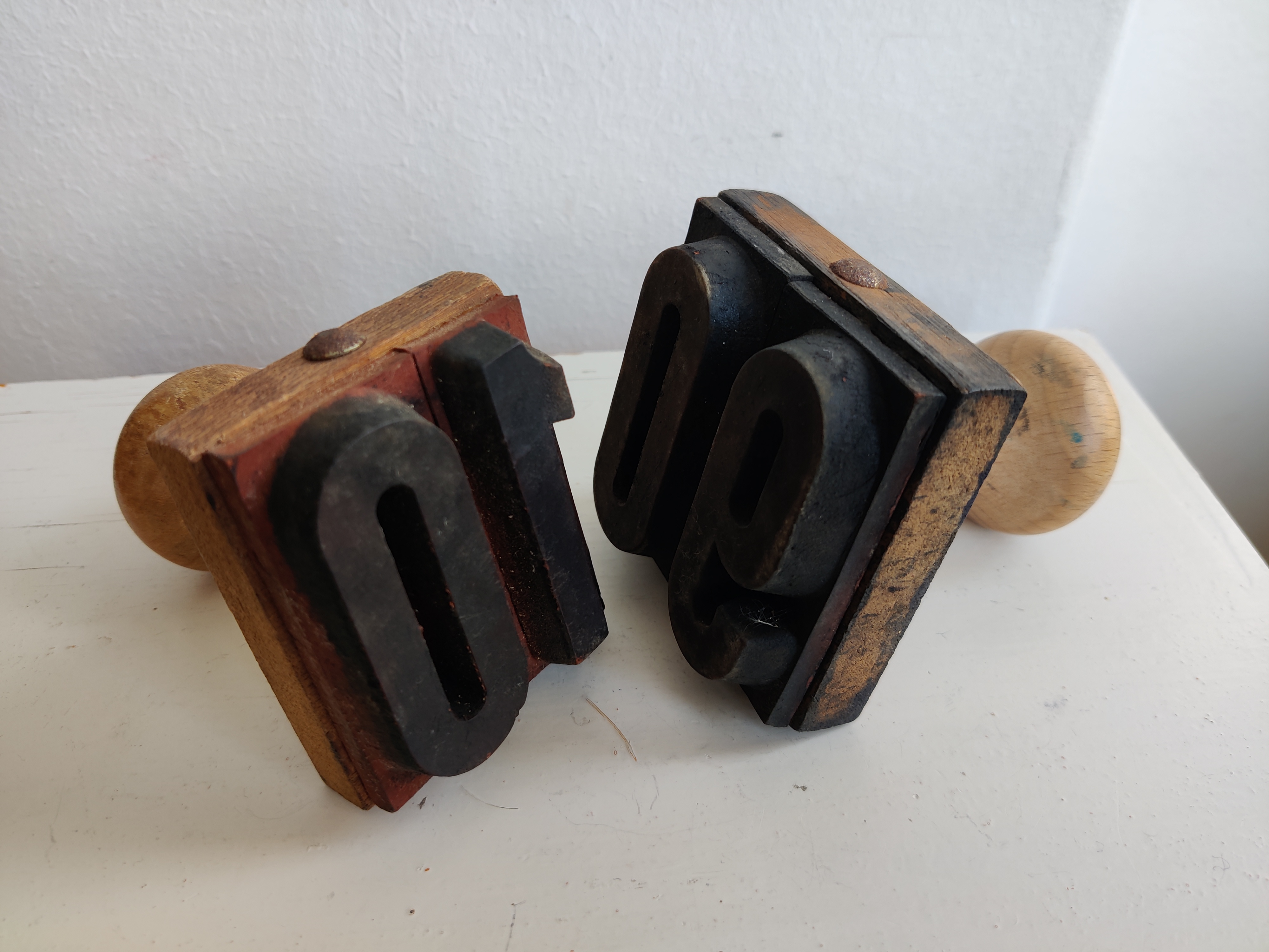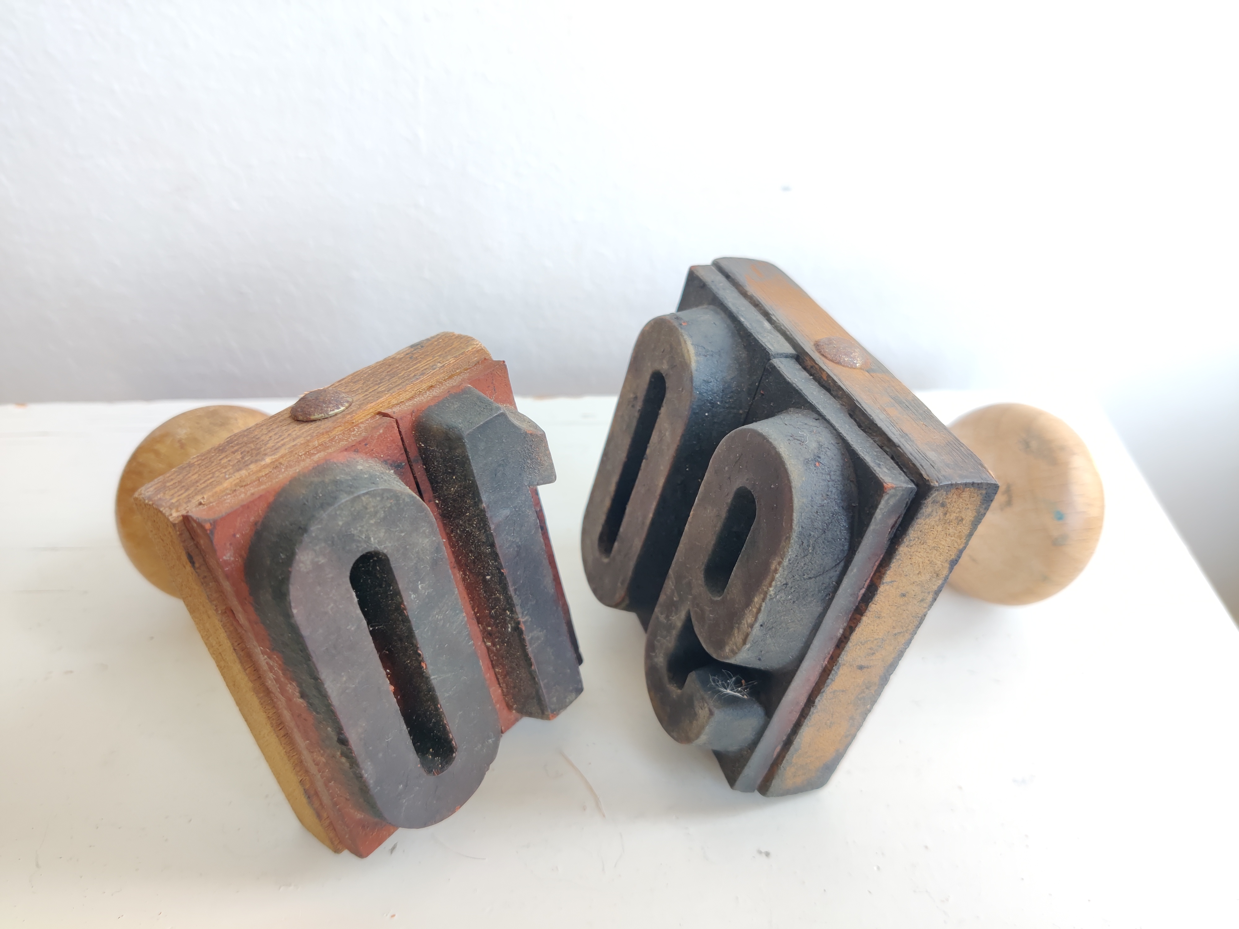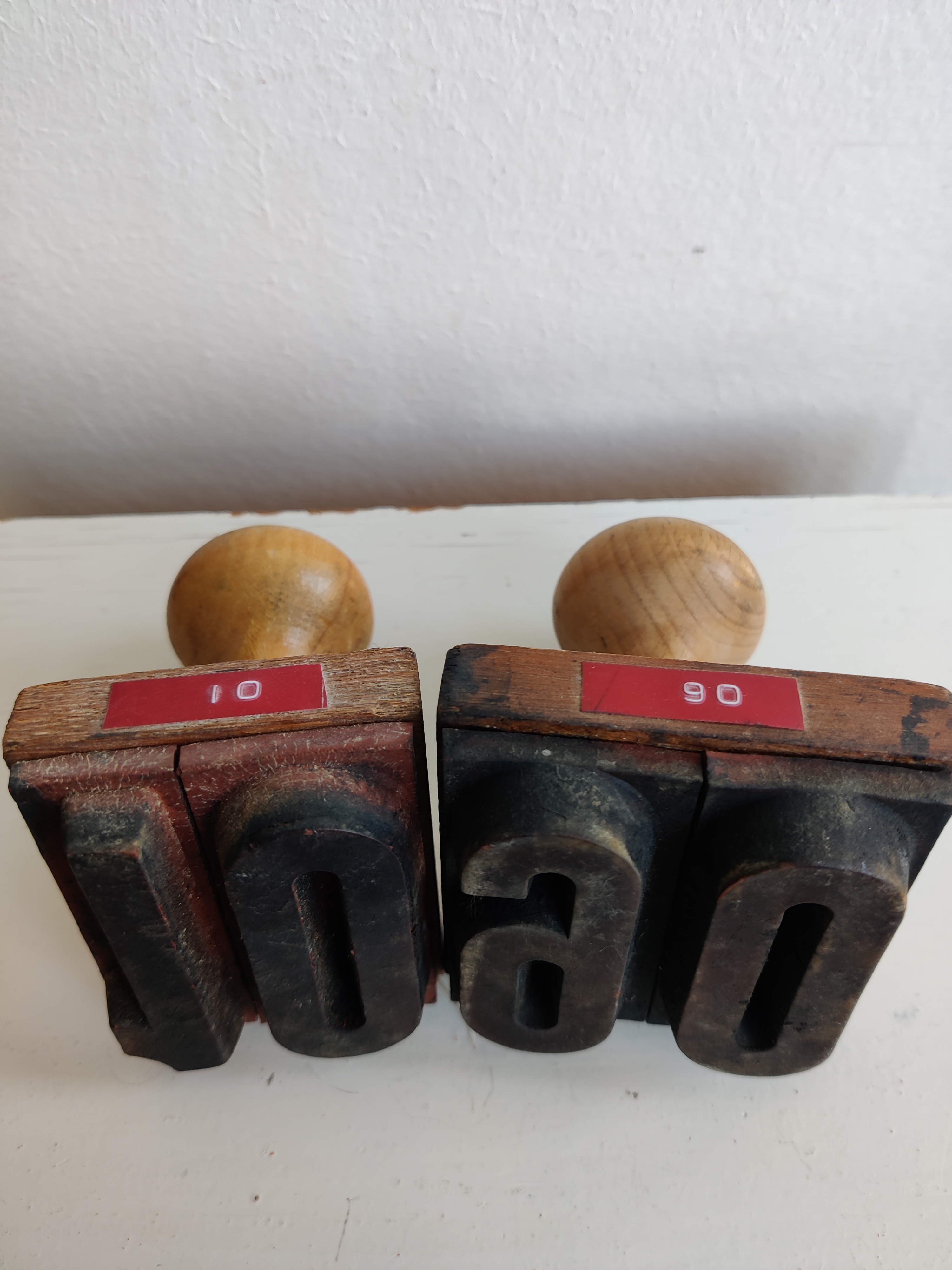 Gamle gummistempler med tal 10 og 90