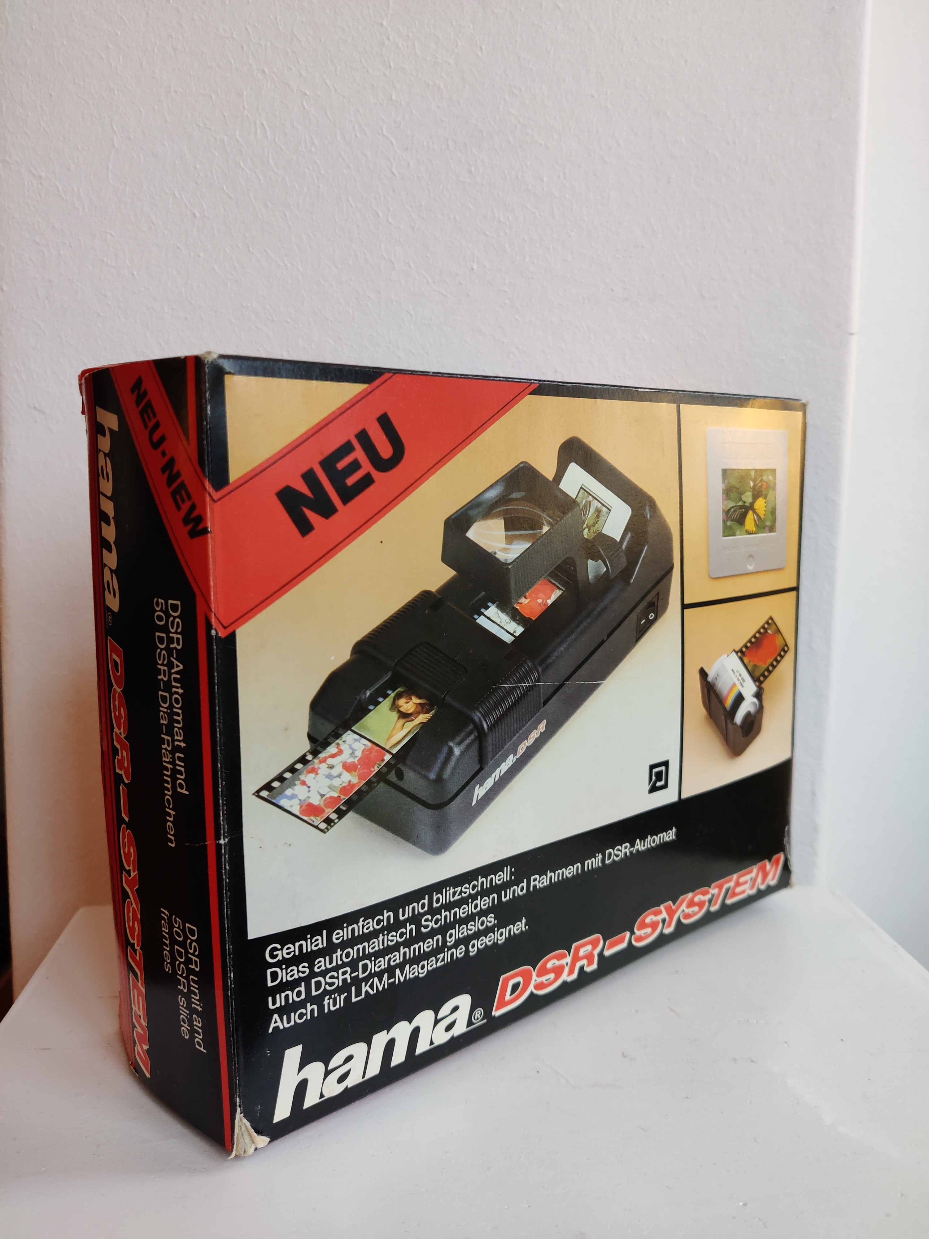 Lav dine negativer om til lysbilleder i lynfart med denne dias-skærer og montagedims fra 1970-1980. God til nostalgikere med gamle negativer på lager - eller fotografer, der gerne vil tage den analoge bølge til næste level med lidt originalt udstyr. Der er 24 stk rammer tilbage i æsken. Alt andet er fuldtalligt.