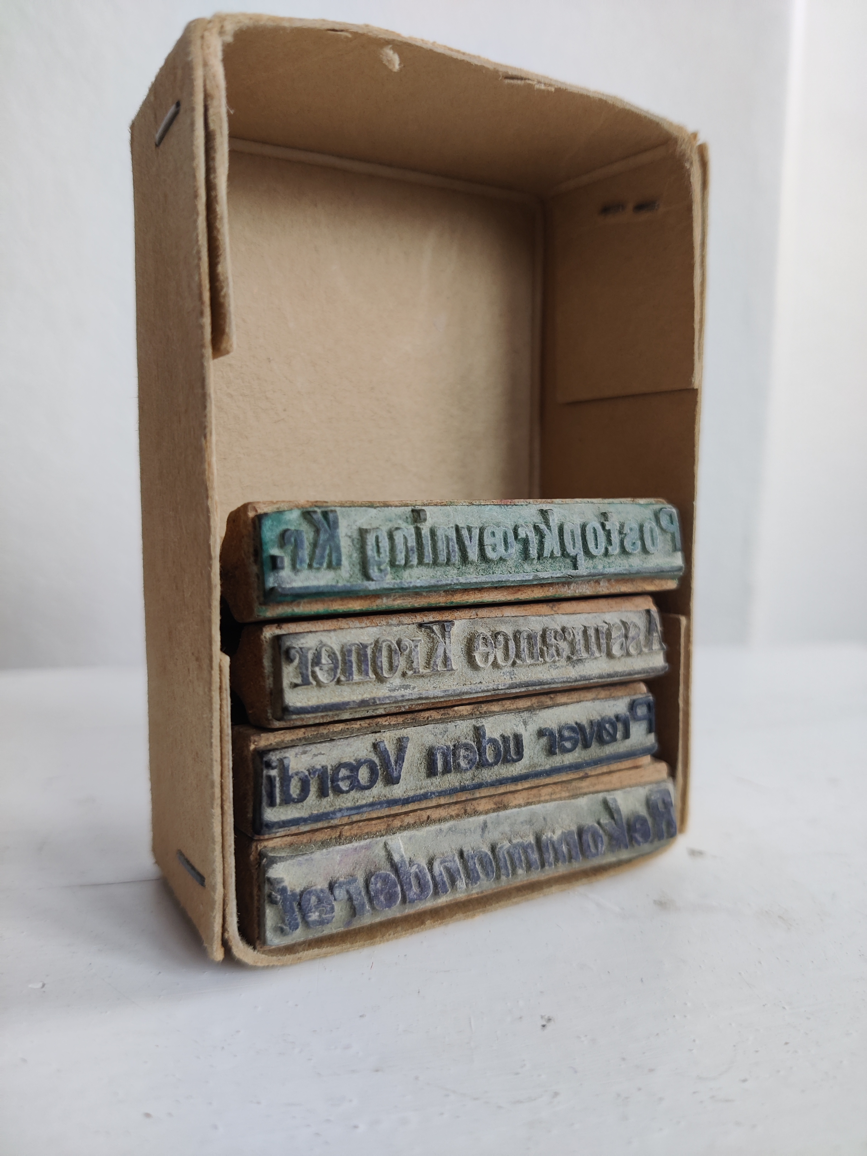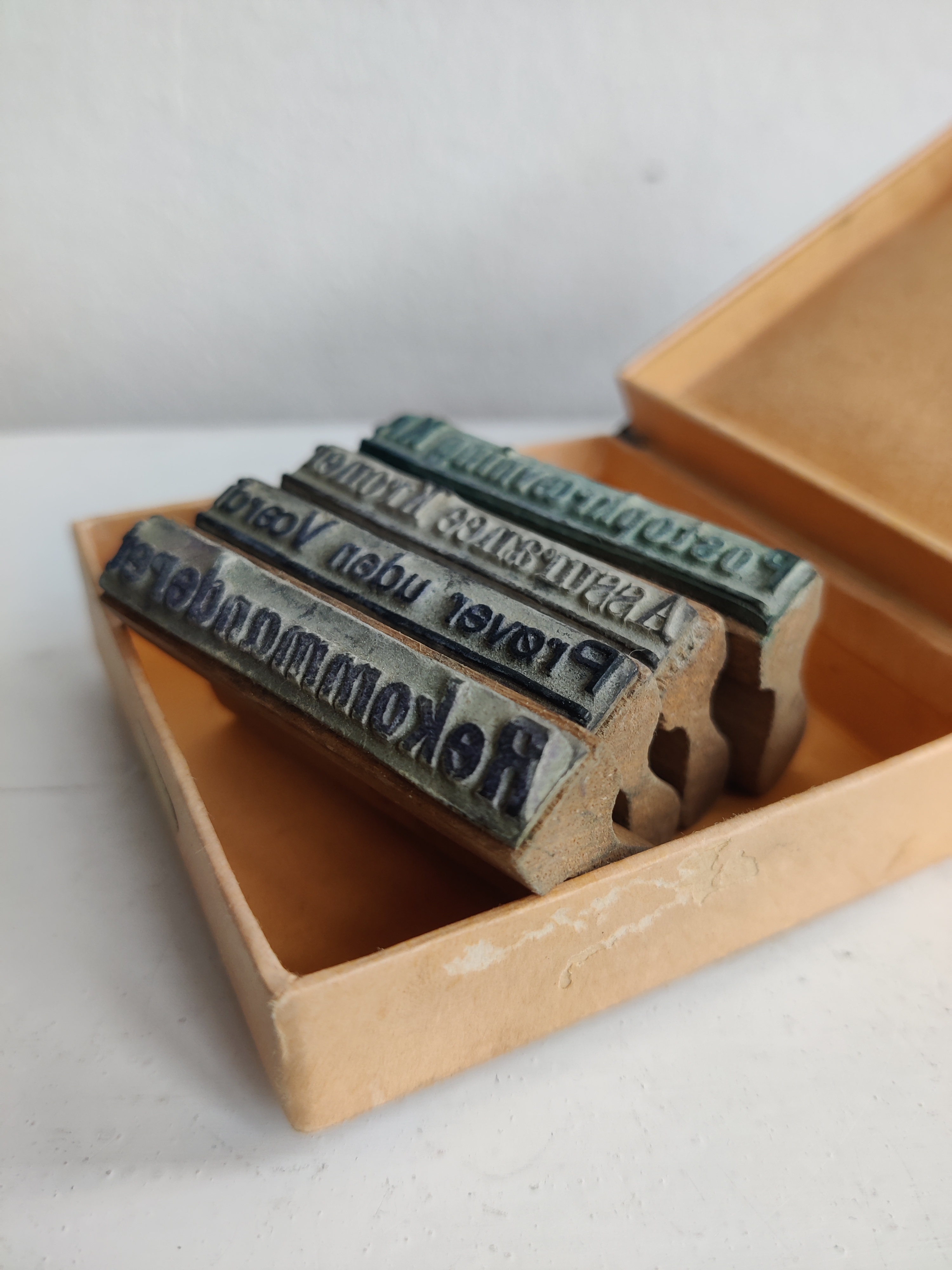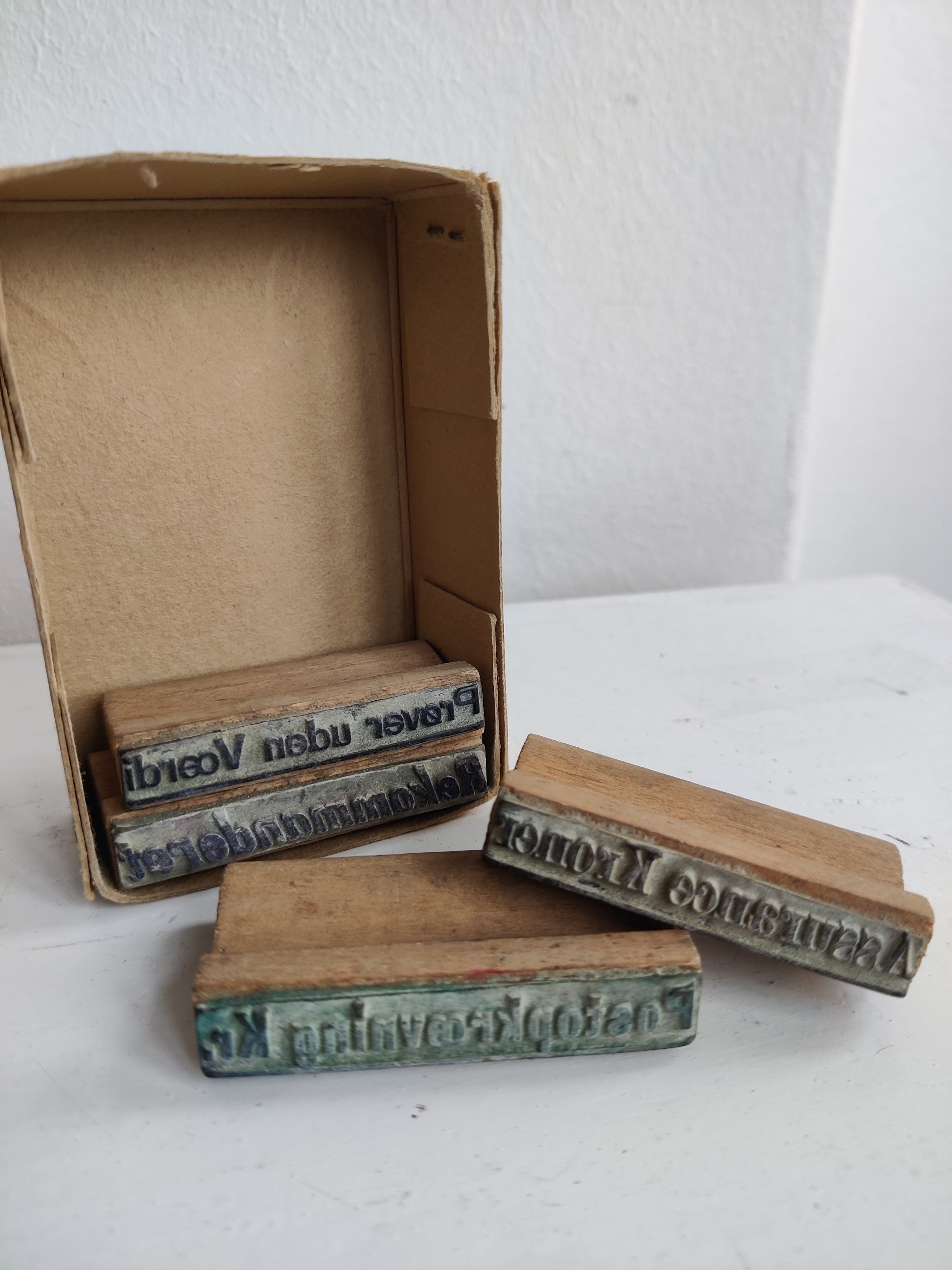 Vintage små stempler, fx Varer uden Værdi og Rekommanderet